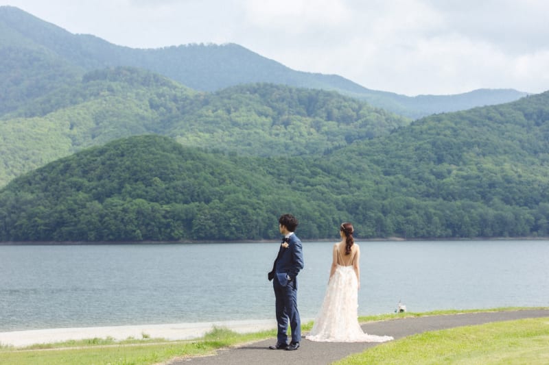 誰もいない湖を独り占め。少しまだ肌寒い6月、湖面を揺らす風邪をかんじて二人きりの特別な時間。