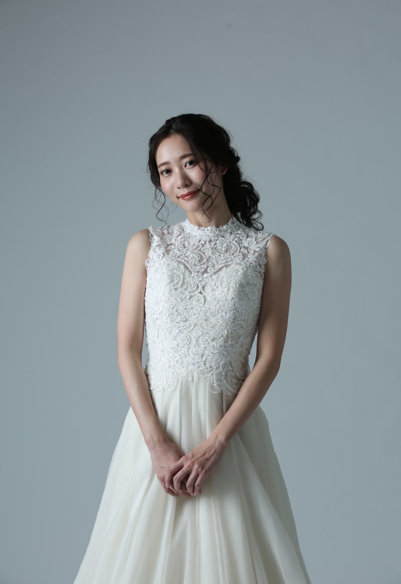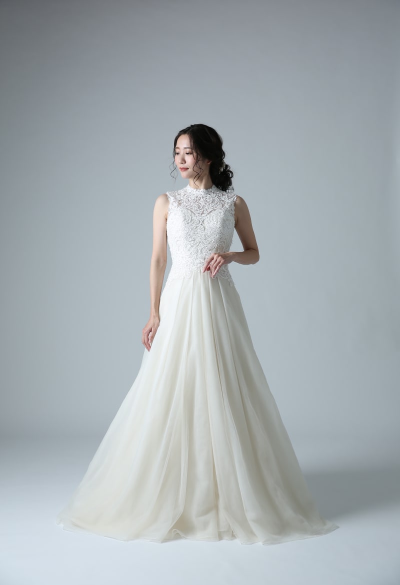 上半身に施されたエレガントなレースはどのようなシーンにも映える至極のデザインです。