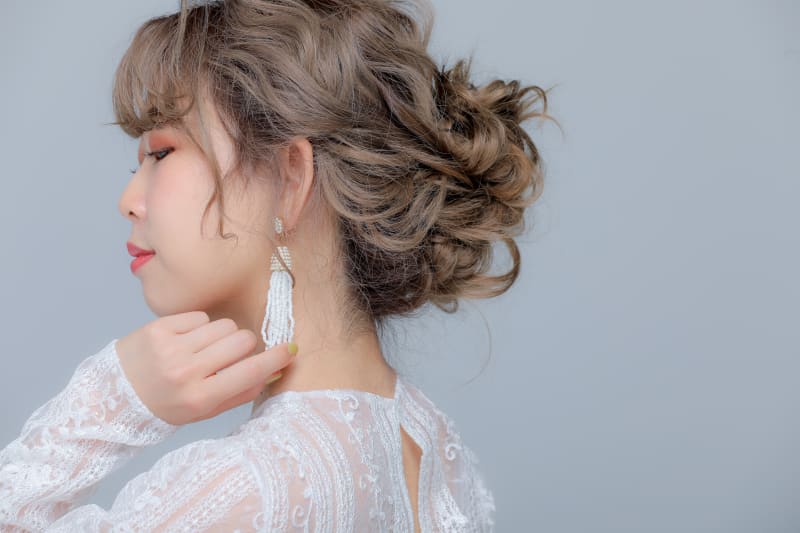 今回は大ぶりのイヤリングを使用したのでヘッドアクセサリーは付けずにシンプルにしてます。
