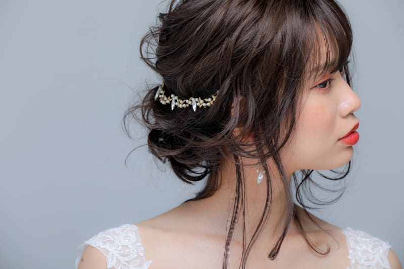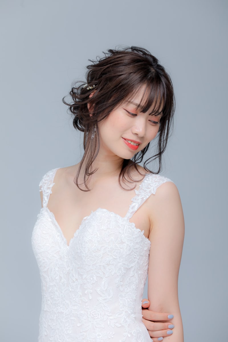 オフショルダーのドレスはデコルテが綺麗に見えるのでアップスタイルなどでスッキリ見せるのもオススメです!