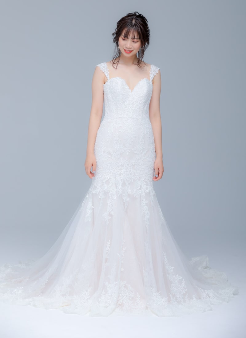 ニュアンスカラーの大人可愛いマーメイドドレス