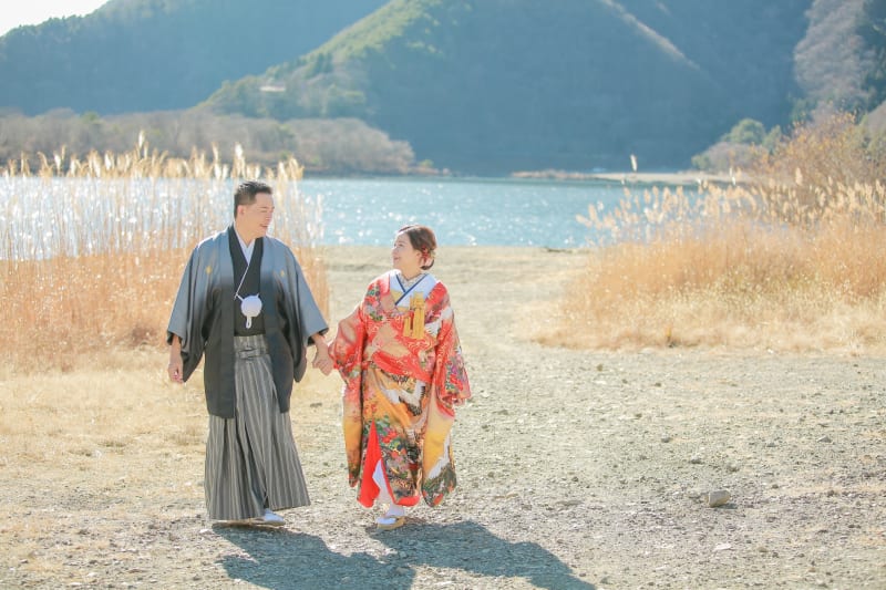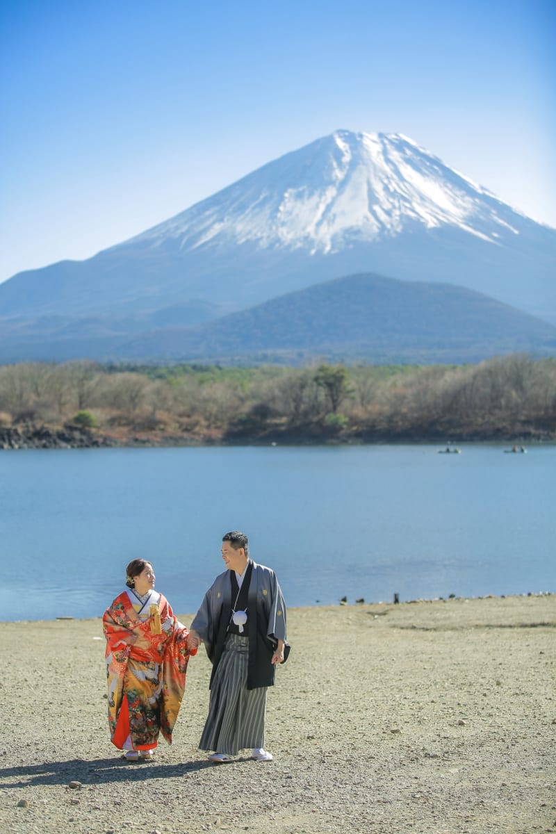 冬の富士山ウェディングフォト、