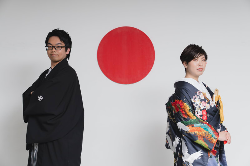 日の丸と和室のほか、のれんや木の壁の背景もございます!背景はお二人の好みやイメージに合わせてお選びいただけますよ☺︎