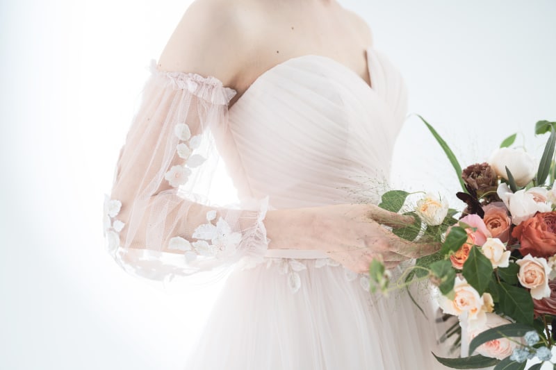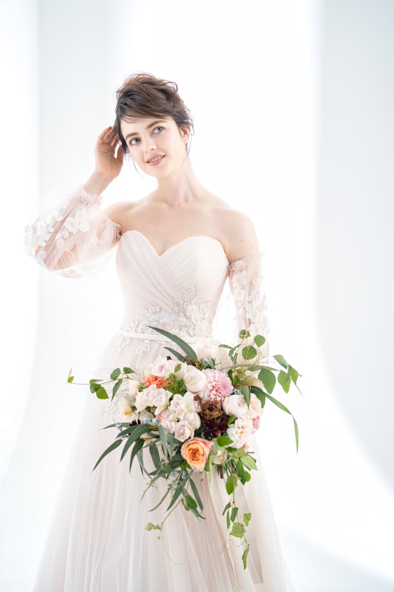 そして、2WAYのパフスリーブでガラリと印象が変えられるのもこちらのウエディングドレスの特徴です。