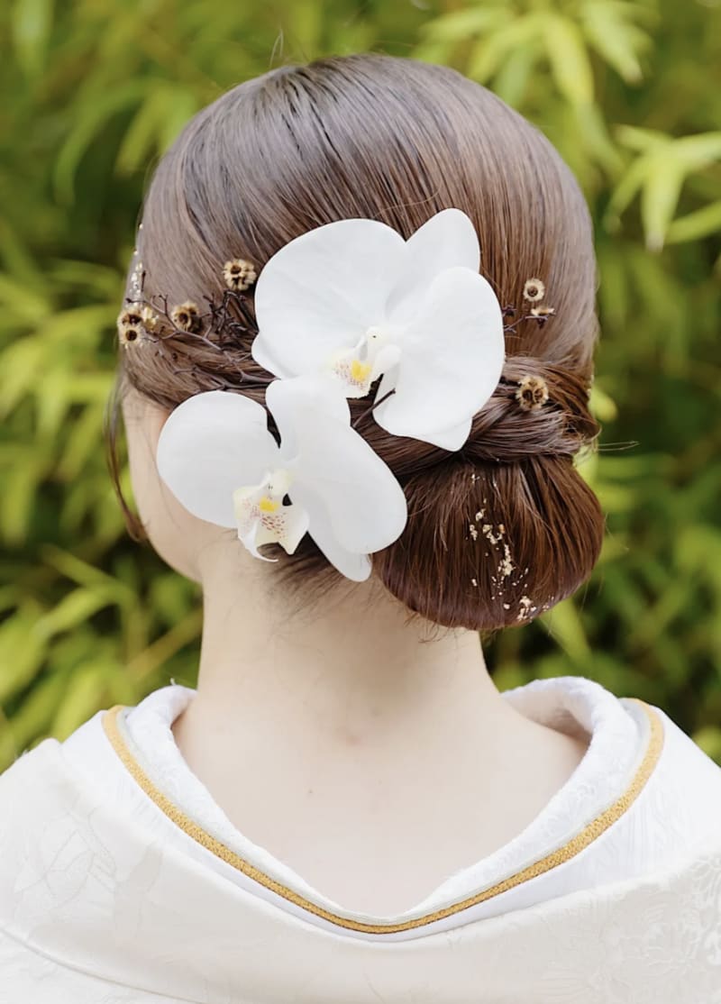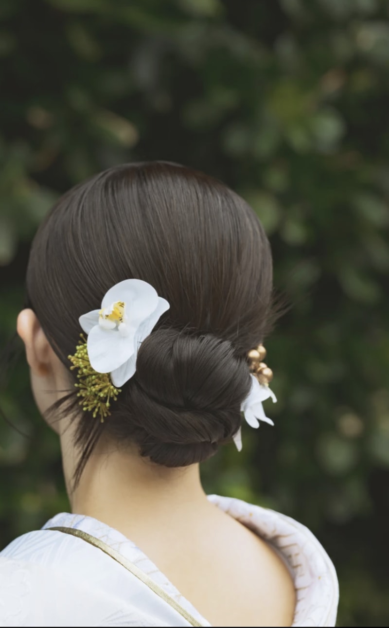 和装の雰囲気に合わせてピッタリと仕上げたスタイルです。