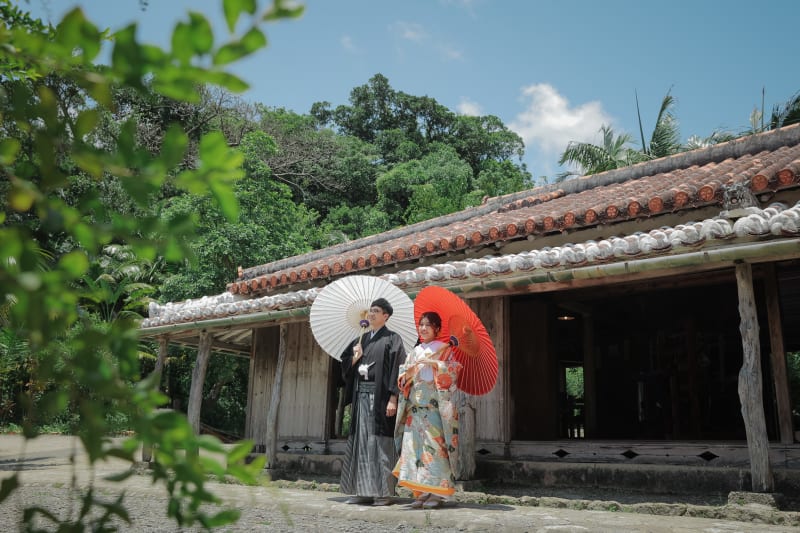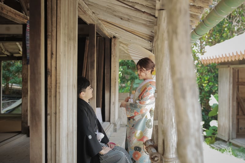 沖縄の昔ながらの民家での撮影は、雰囲気が和装にとても合っていました。