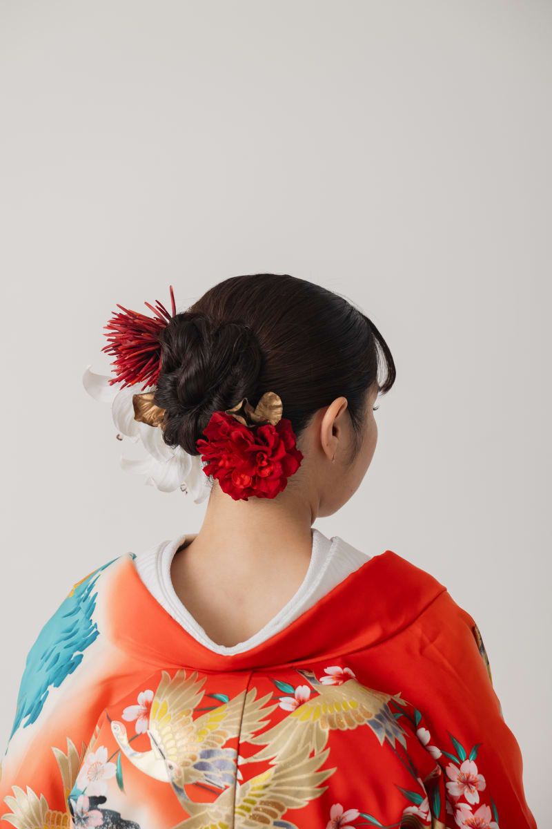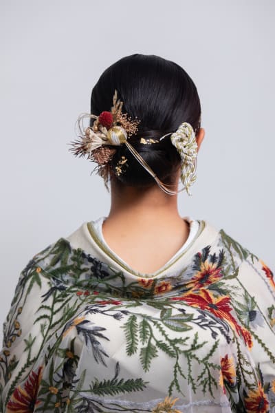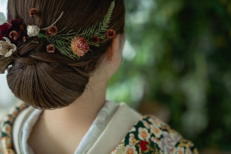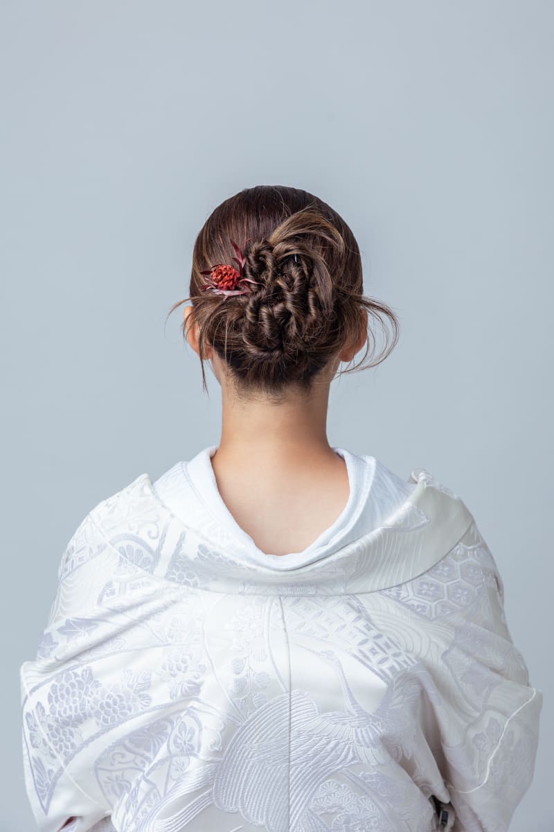 トップはつるっと、お団子はルーズに引き出したスタイル