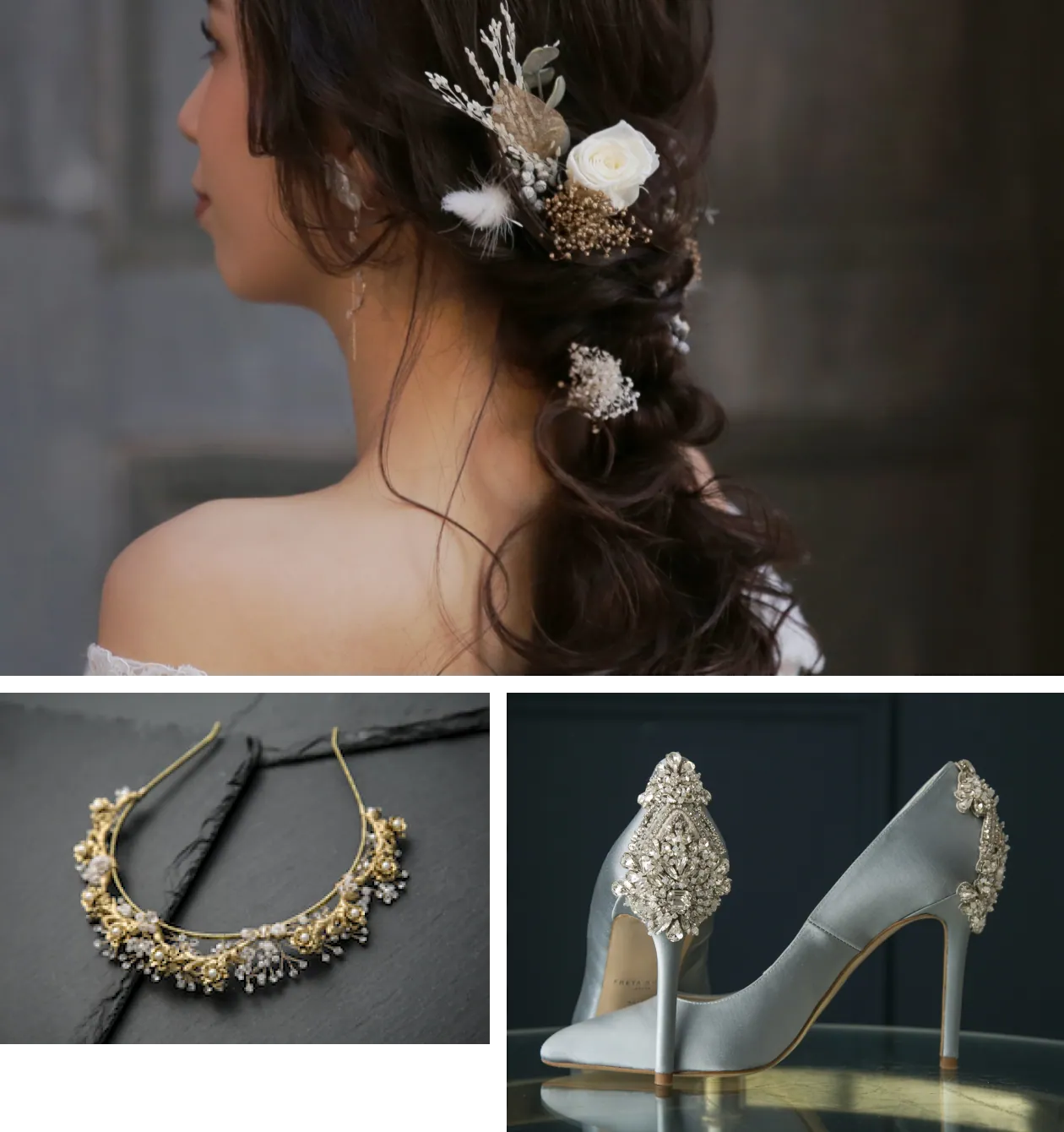 専属スタイリストが厳選したアクセサリーを多数ご用意。人気のドライフラワーを使用したアイテムなどで、細部まで自分らしいコーディネートを楽しめます。