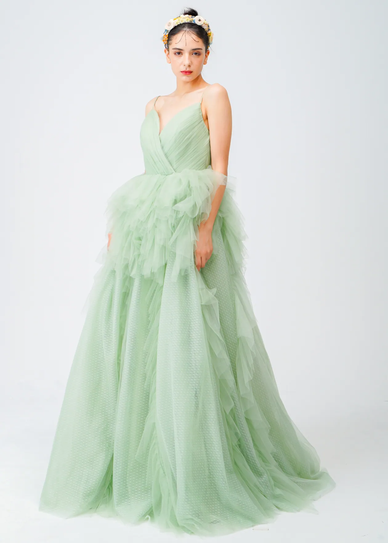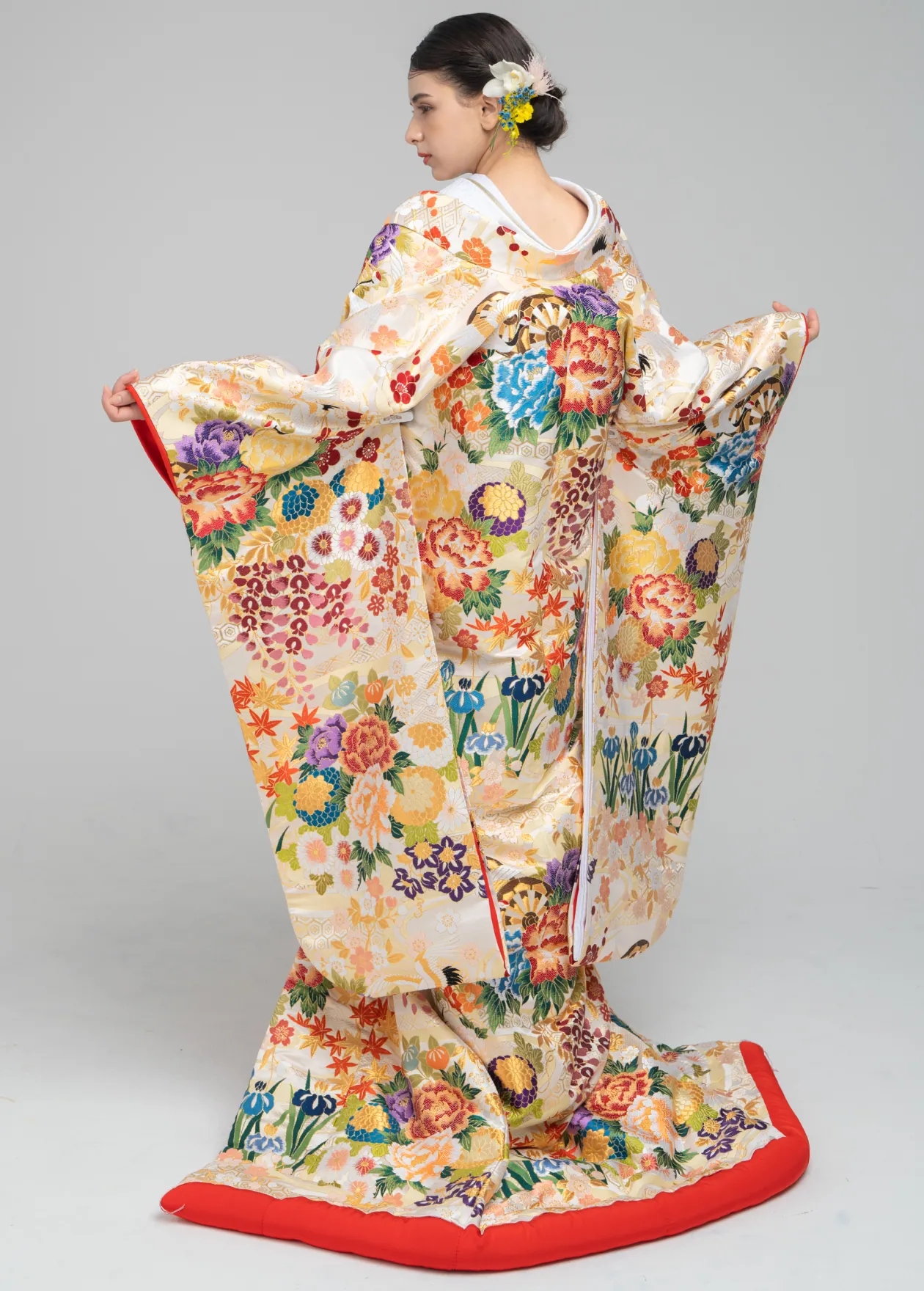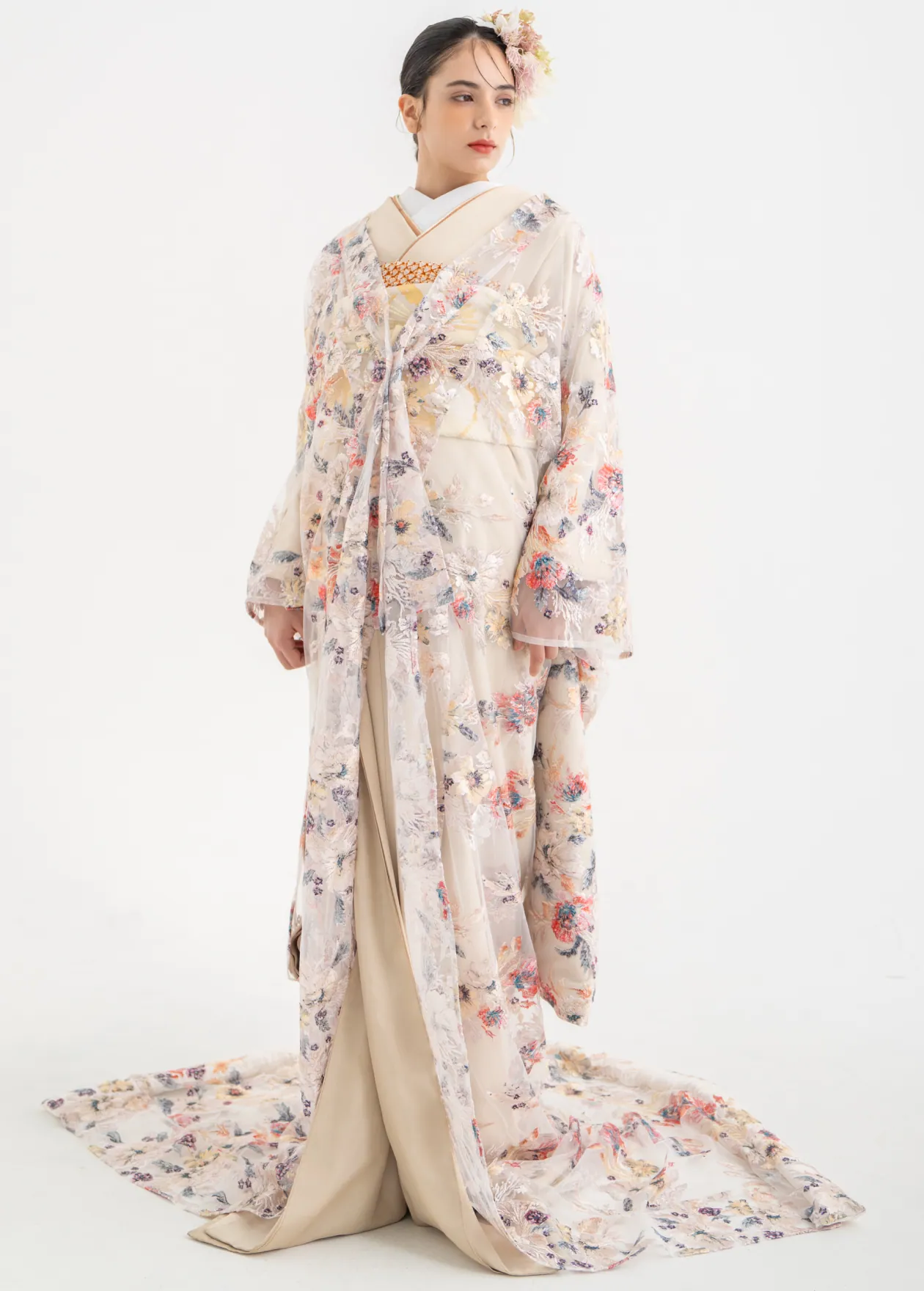 ドレスは事前にサイズを調整するため、「背中をクリップで留める」ような簡易的な着付けはしません。どんなポーズも、どの角度からでも美しく撮影することができます。