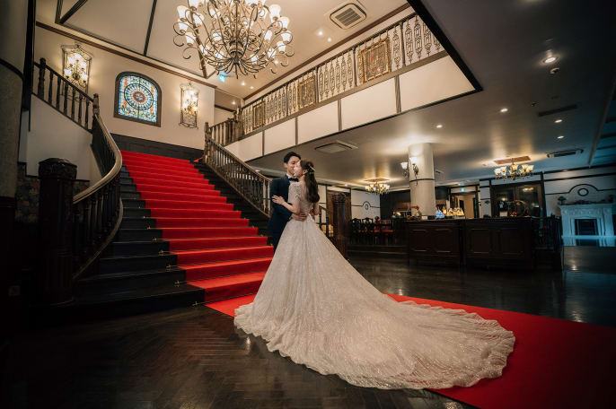 重厚感ある建築やクラシカルな階段、洗練された空間はまるで映画のワンシーンのような一枚に。