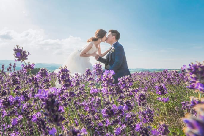 北海道ではラベンダー畑や牧場など壮大な自然の中でのウェディングフォトはいかがでしょうか?