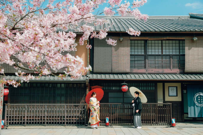 京都店のスタジオでお二人をおしゃれに撮影します!もちろんデータはプレゼント♪式のアイテムの一枚に加えてみてはいかがでしょう???