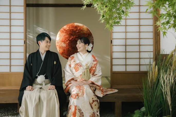 和装+洋装の2着や、白無垢+色打掛、ウェディングドレス+カラードレスなど衣装の組み合わせは自由自在。