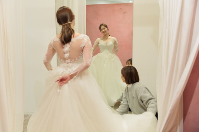 華やかなウェディングドレスや真っ白な白無垢や豪華な色打掛を、手に取って肌で感じでみてください。