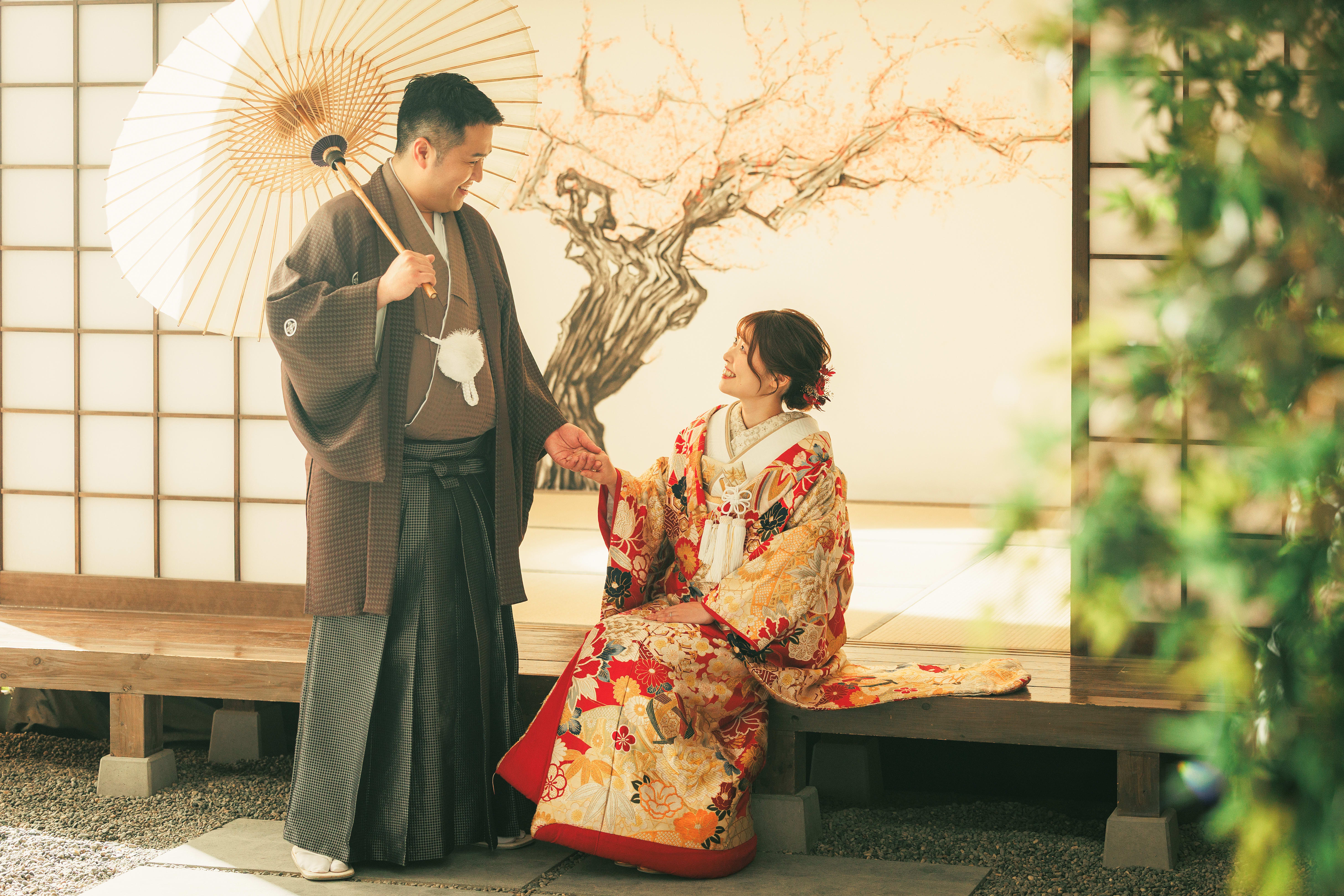 本格日本庭園を再現したスタジオで撮る 和装の結婚写真