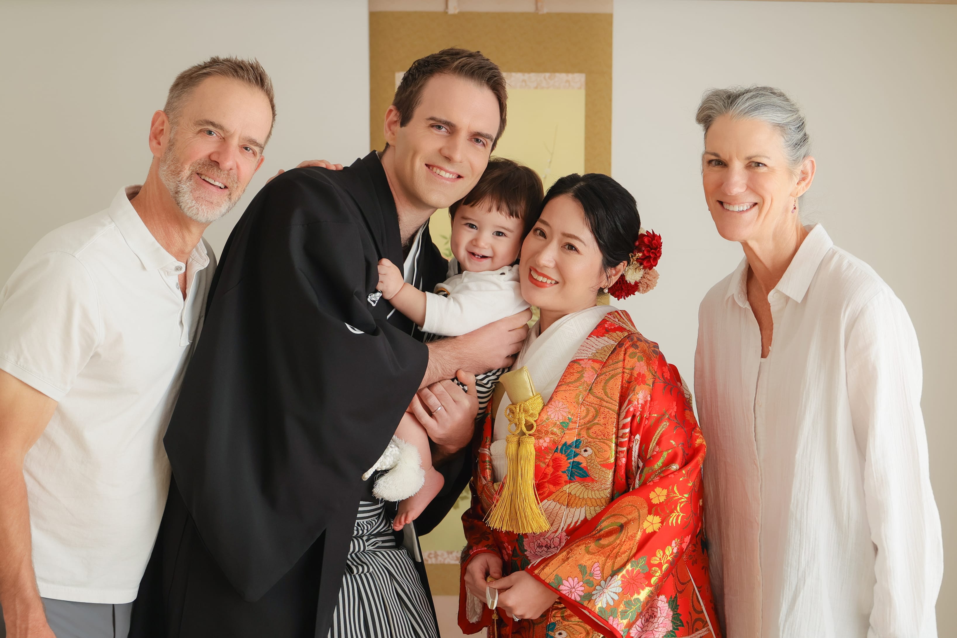 大好きな家族との写真は緊張してじいちゃんよりも渋い顔をしています。