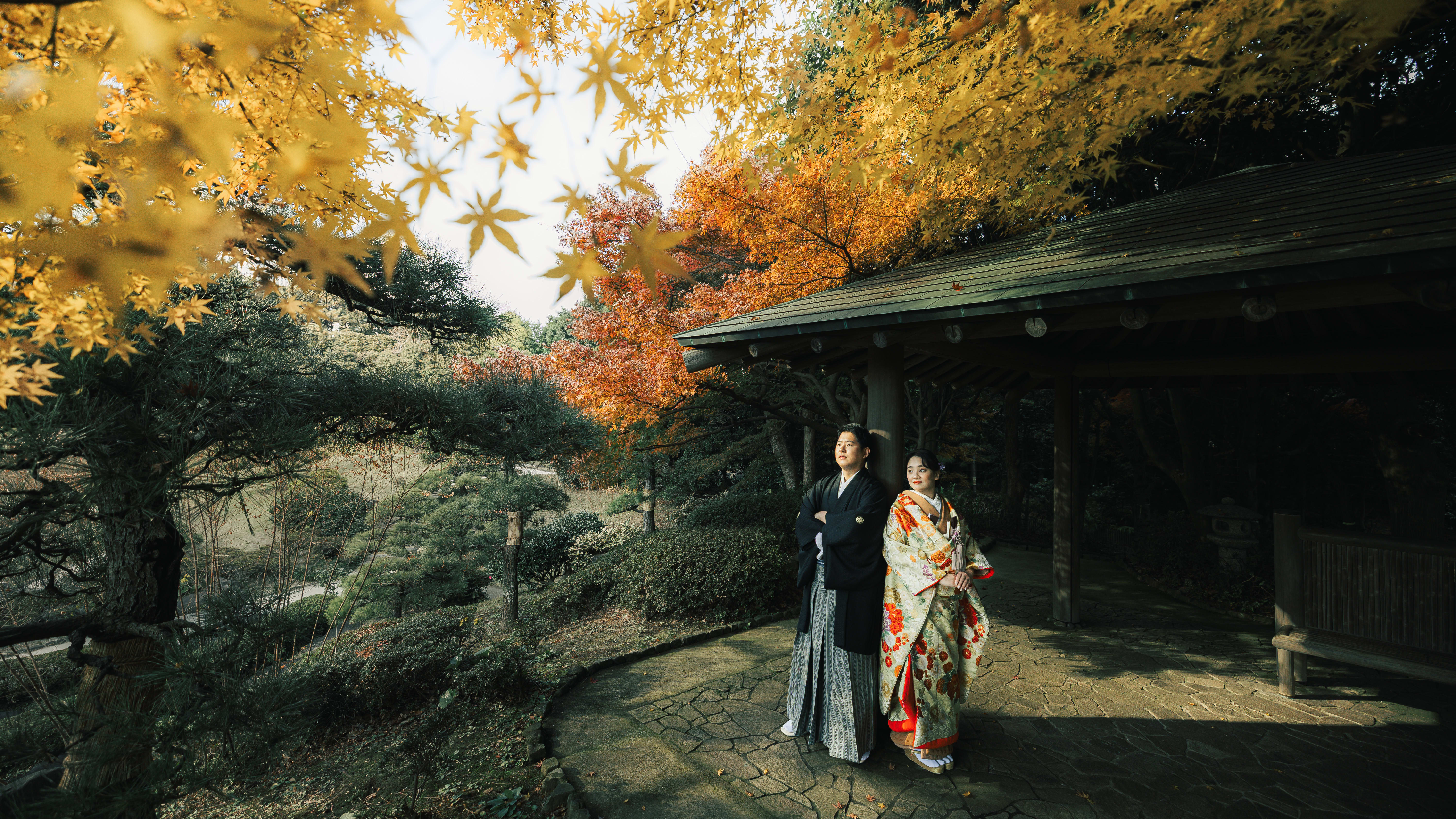 本格日本庭園を再現したスタジオで撮る 和装の結婚写真