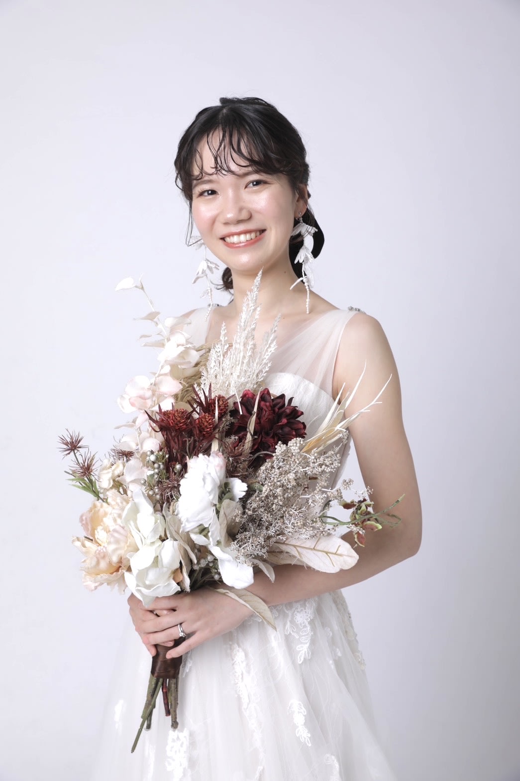 人生で一番輝ける瞬間。 花嫁さまは初めてのことだらけ。 不安がいっぱいですよね。 お衣装選びからお支度まで、心を込めてサポートいたします。 どんなお悩みだって、ご相談ください!! 個性に合わせたヘアメイクをご提案いたします。 流行を取り入れた和装古典的スタイル、大人きれい系スタイルが得意です。 ヘアメイク事務所にてブライダルヘアメイクの仕事に就き、その後、スタジオTVB梅田店、TVB京都店、スタジオAQUA浅草店の勤務を経て、現在は新宿店に勤務。
