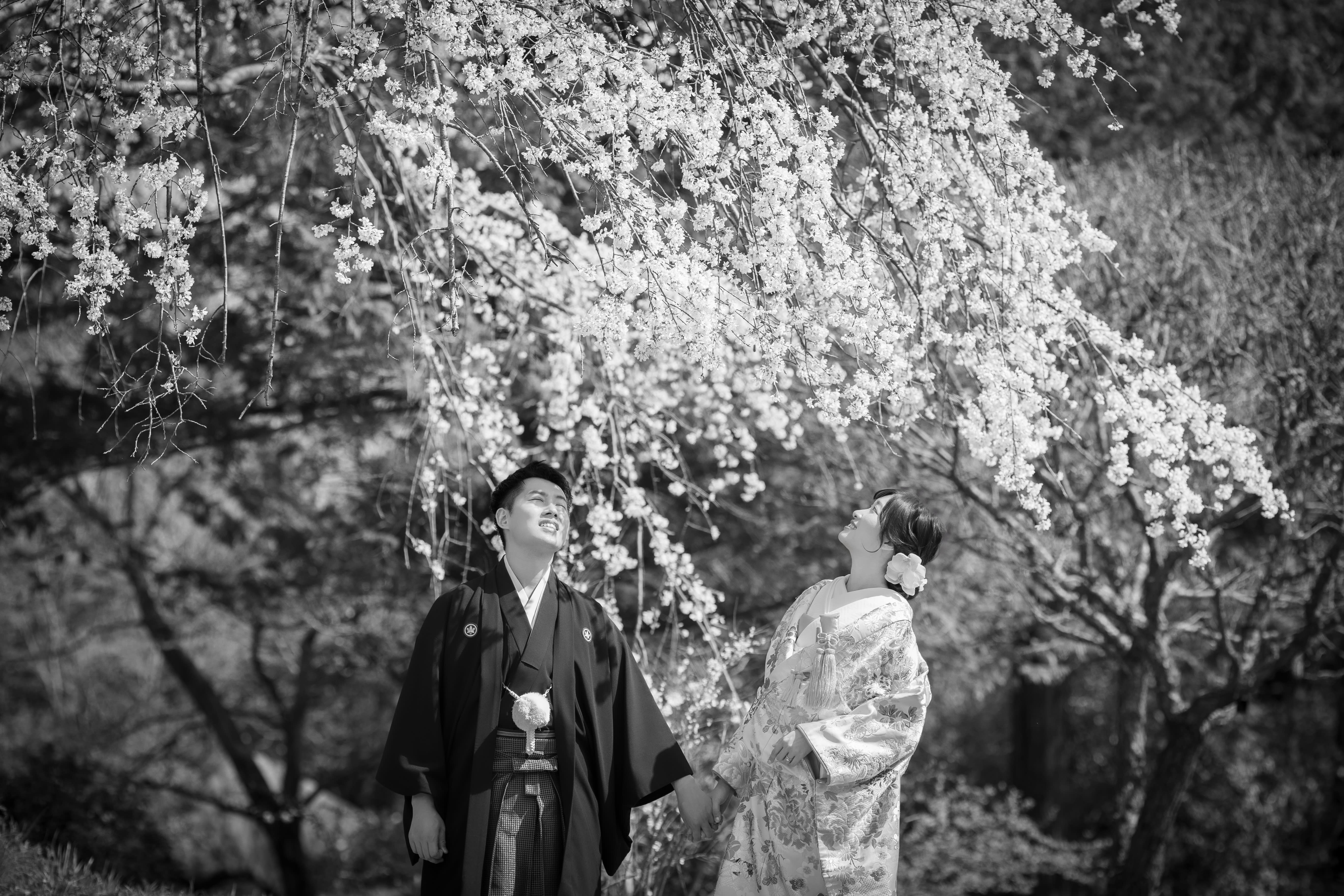 本格日本庭園を再現したスタジオで撮る 和装の結婚写真
