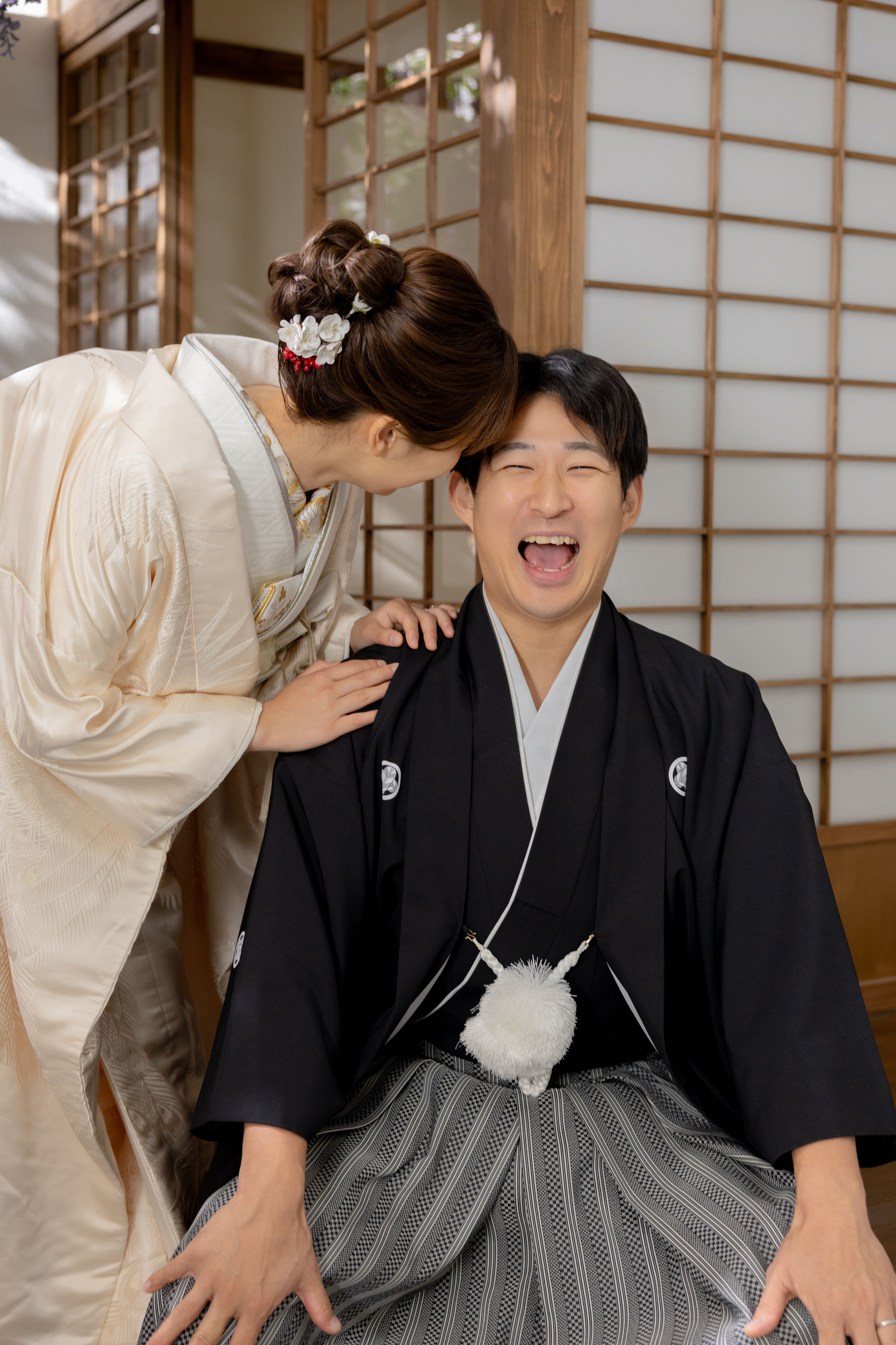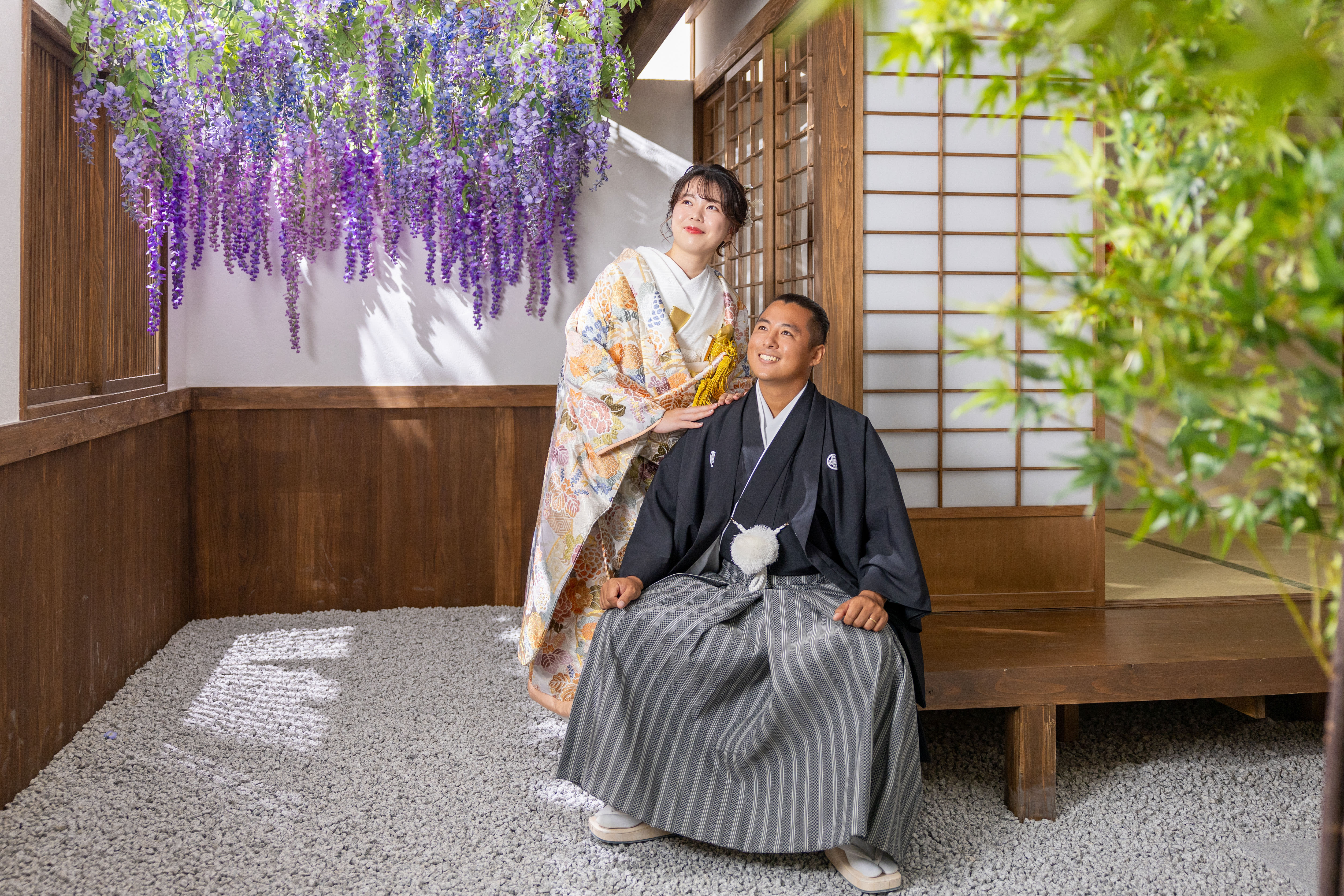 本格日本庭園を再現したスタジオで撮る 和装の結婚写真