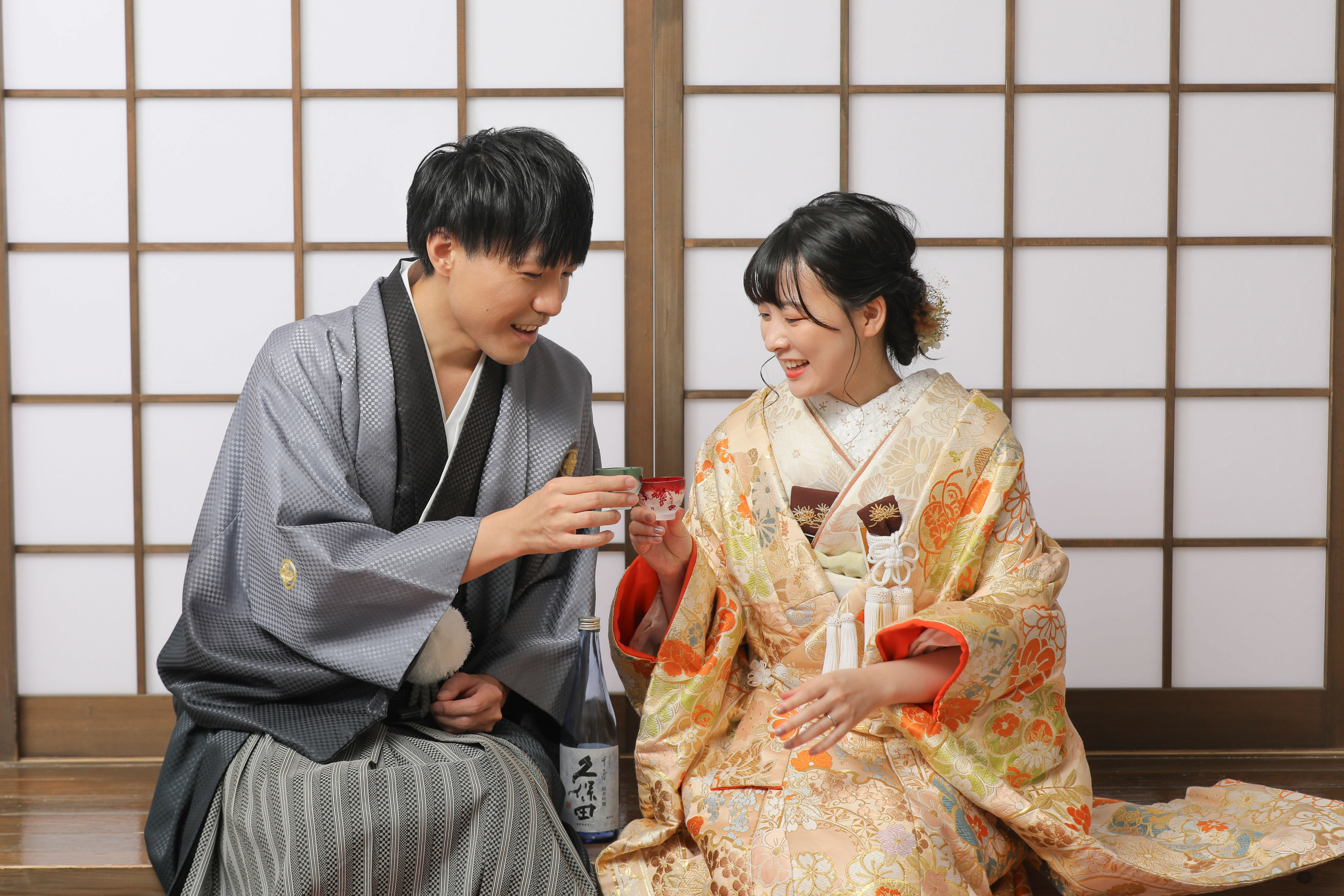 本格日本庭園を再現したスタジオで撮る 和装の結婚写真
