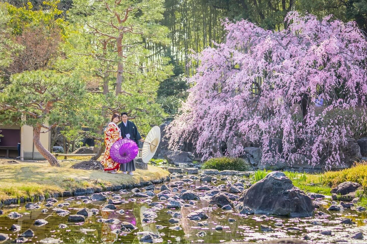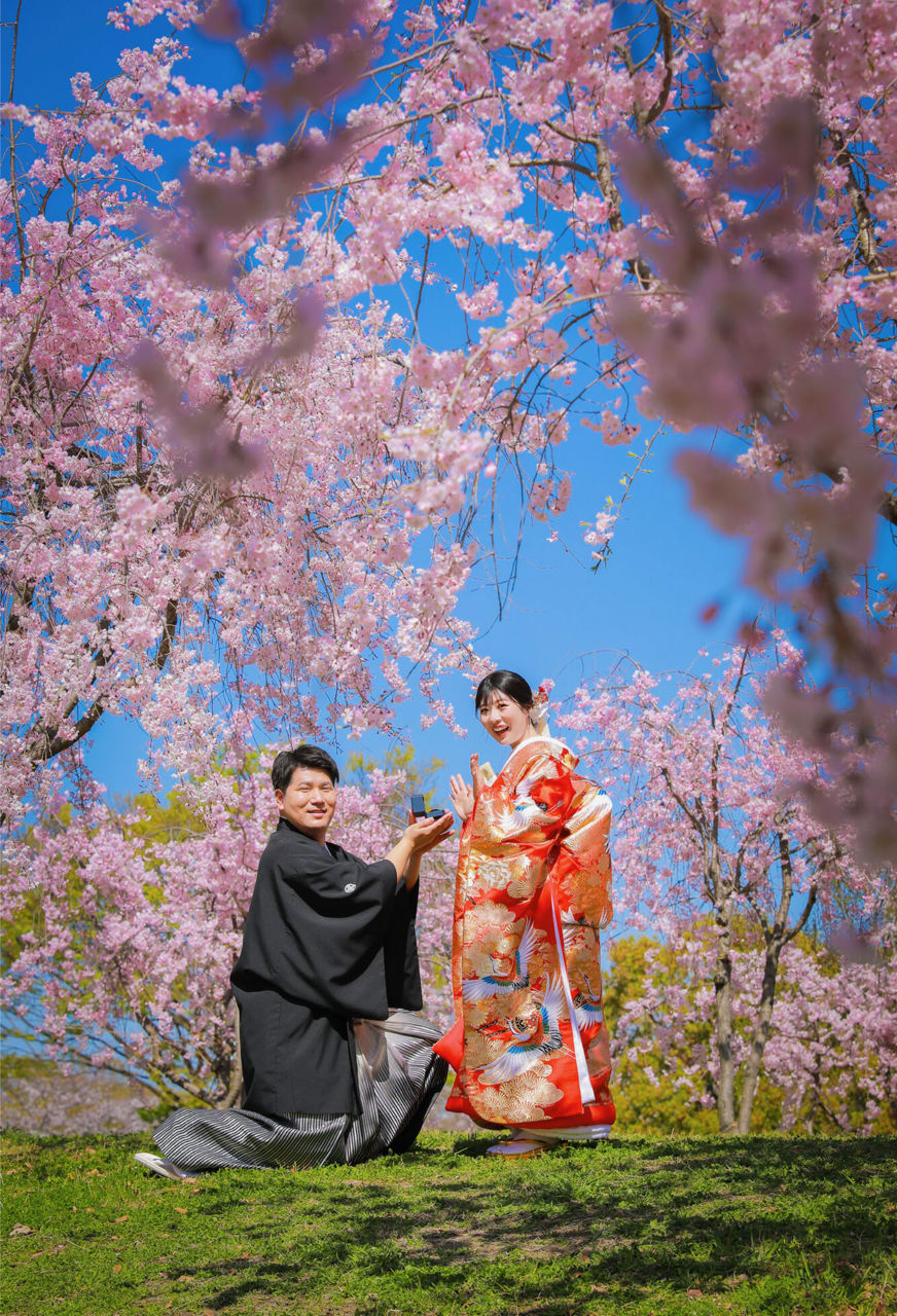 本格的な茶室スタジオで撮影する、和装の結婚写真