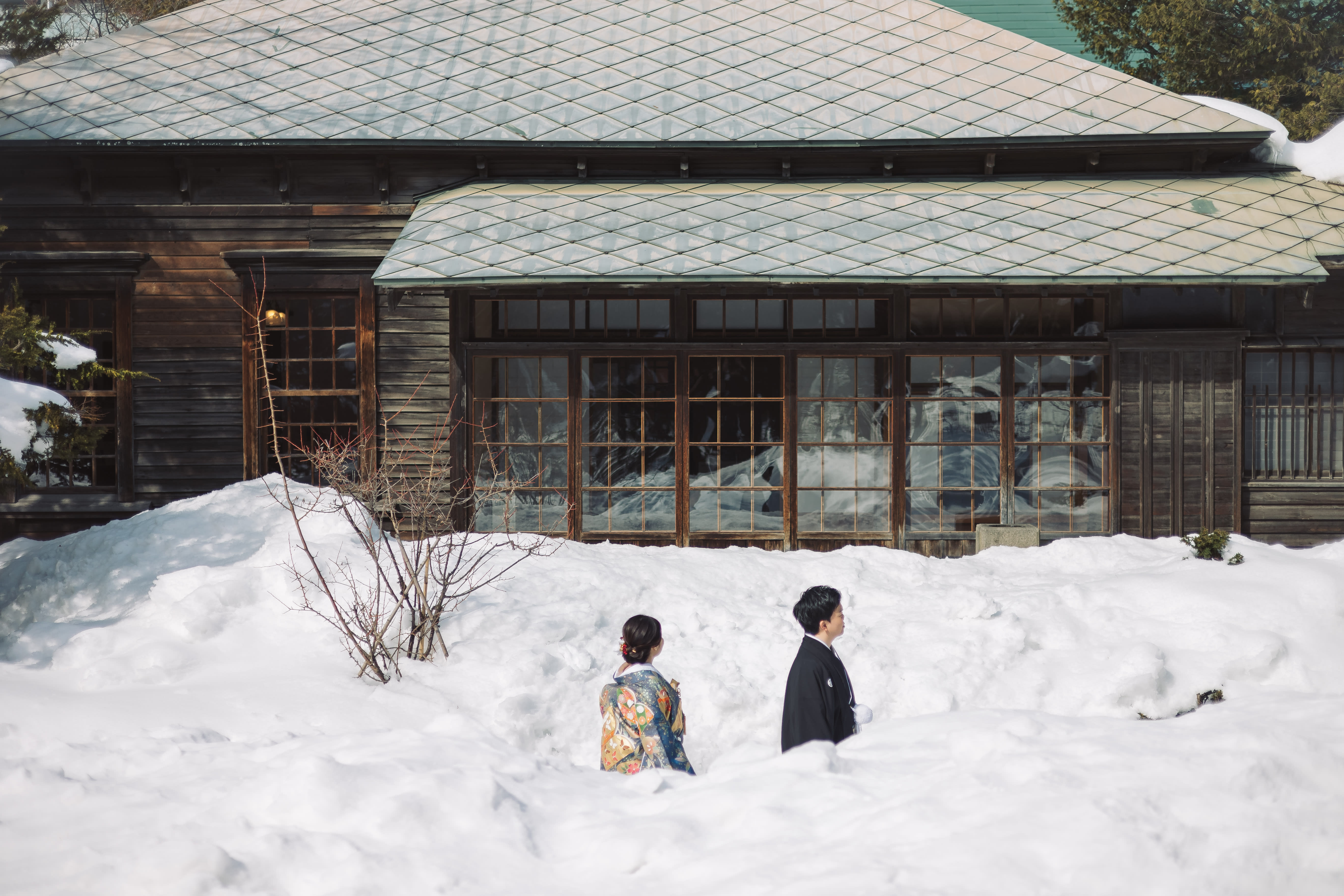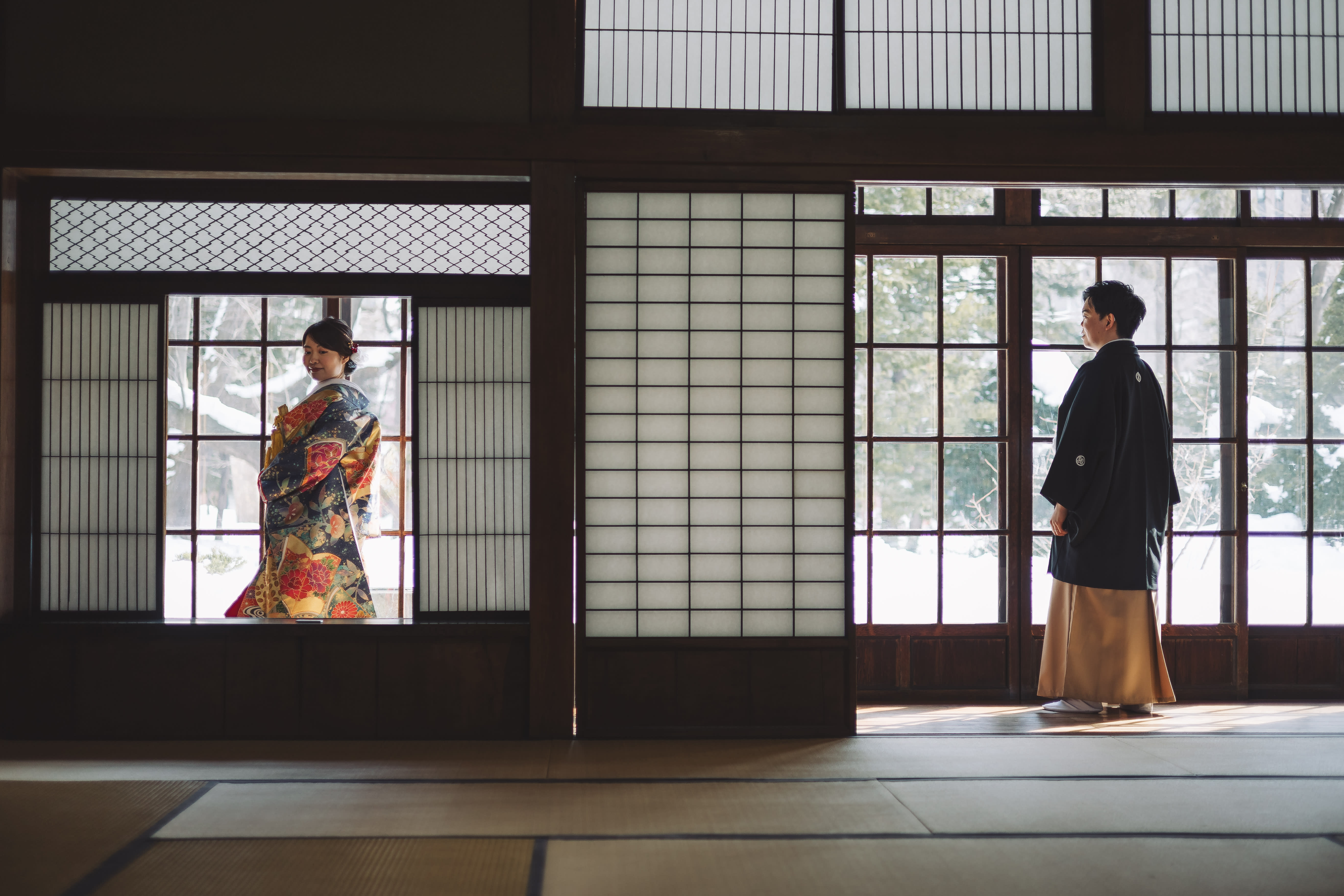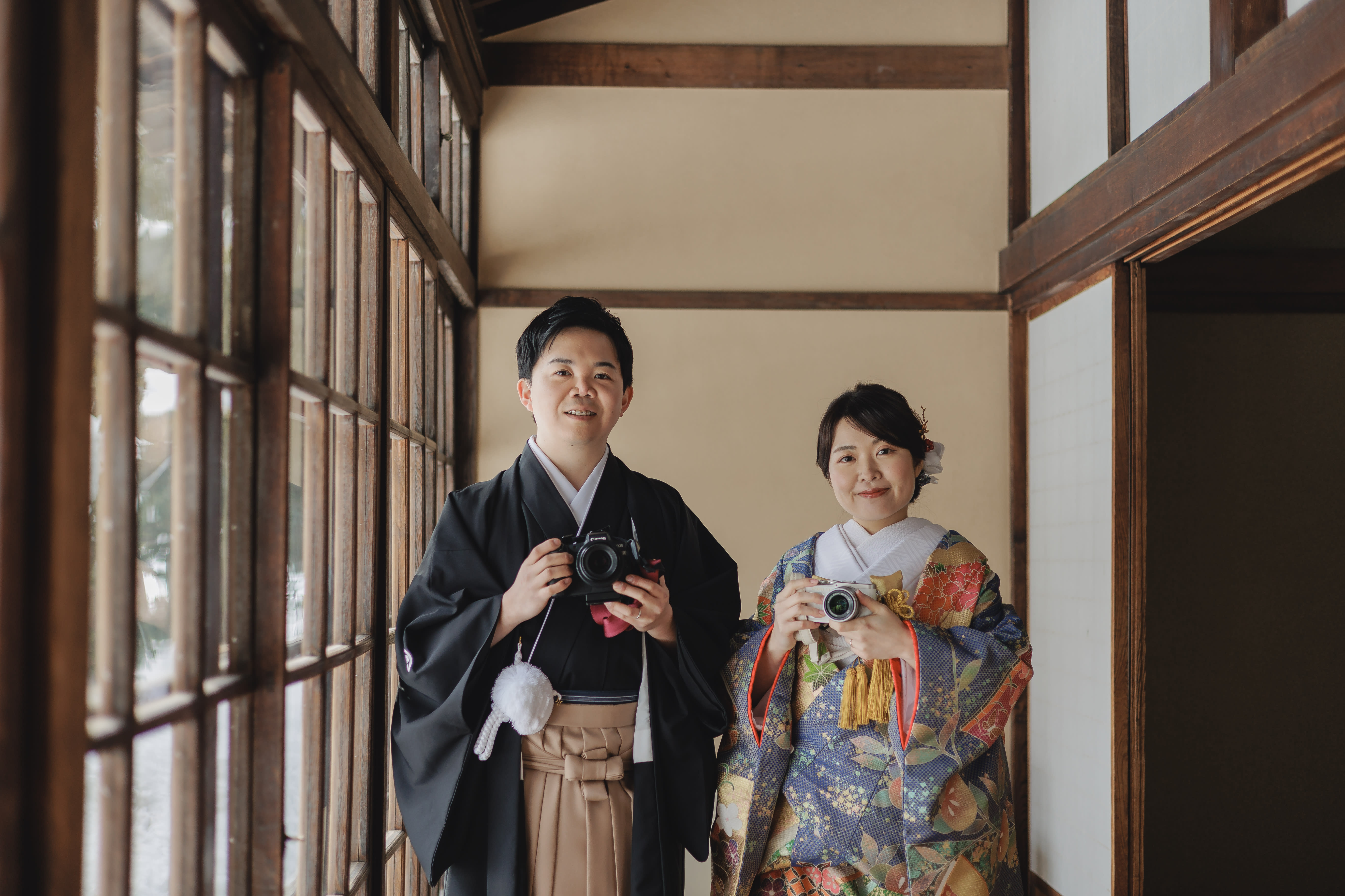 本格的な茶室スタジオで撮影する、和装の結婚写真