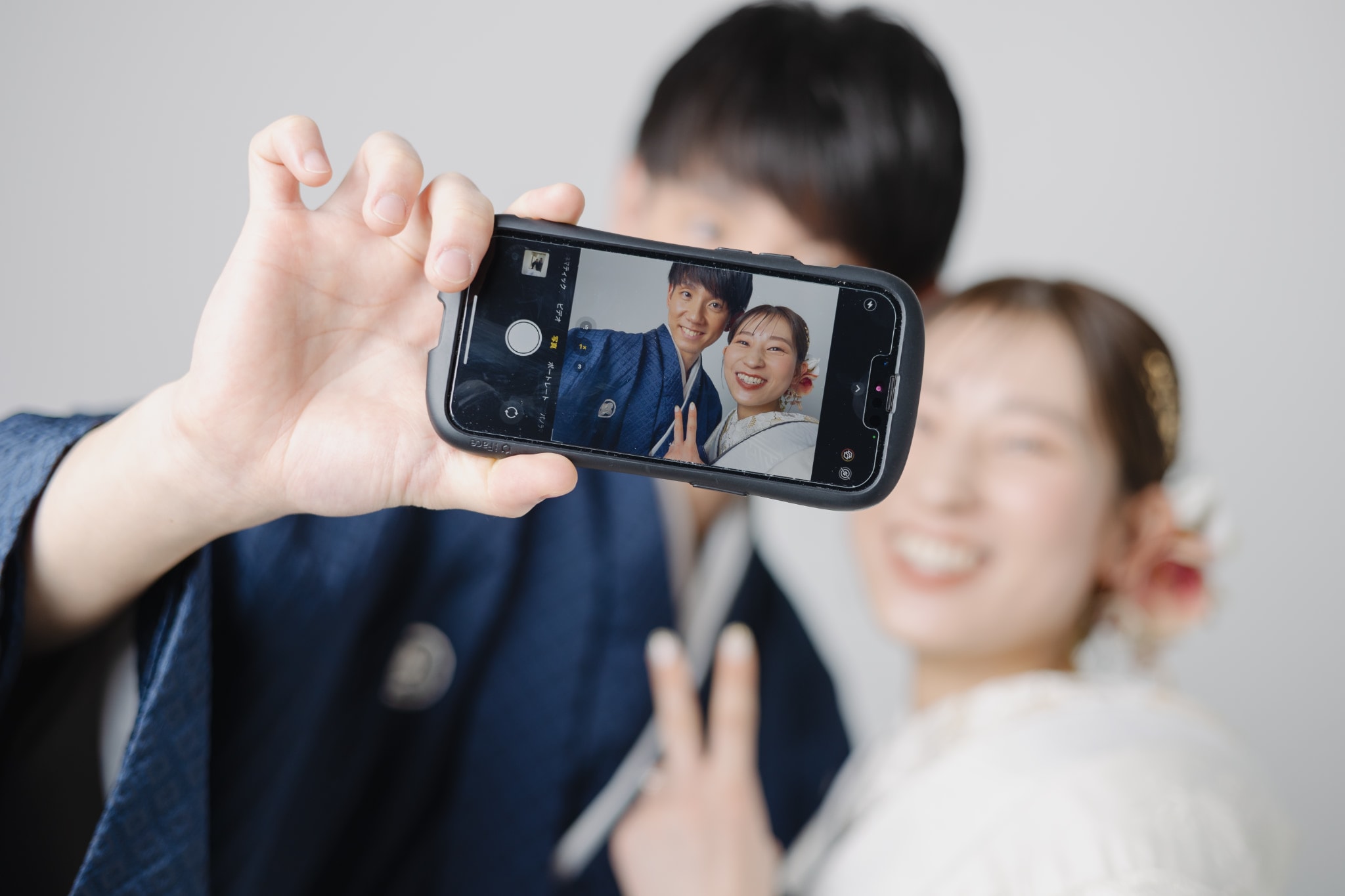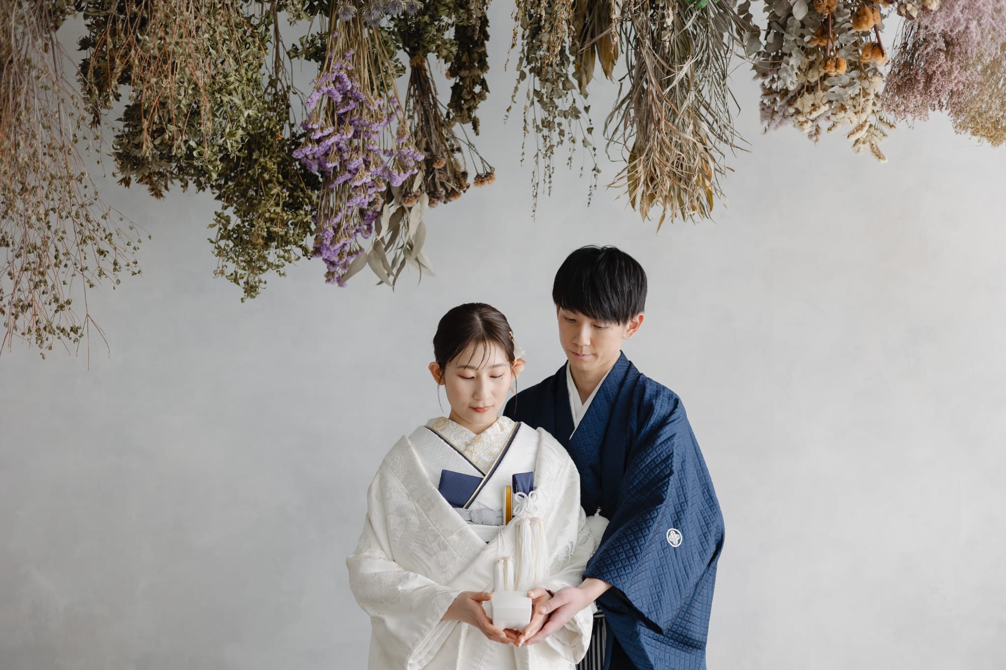 本格的な茶室スタジオで撮影する、和装の結婚写真