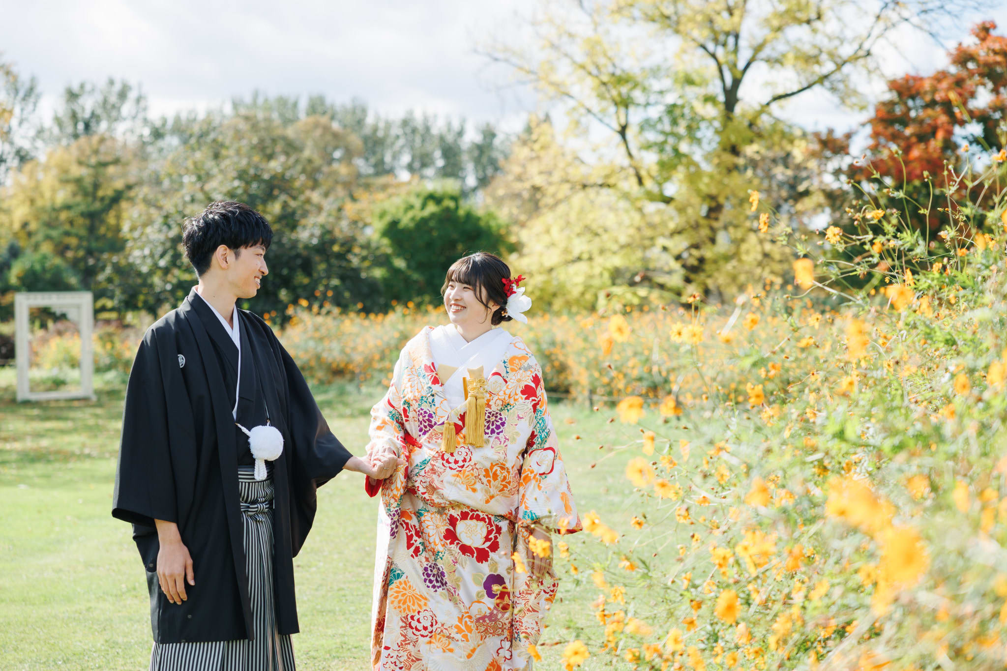 本格的な茶室スタジオで撮影する、和装の結婚写真