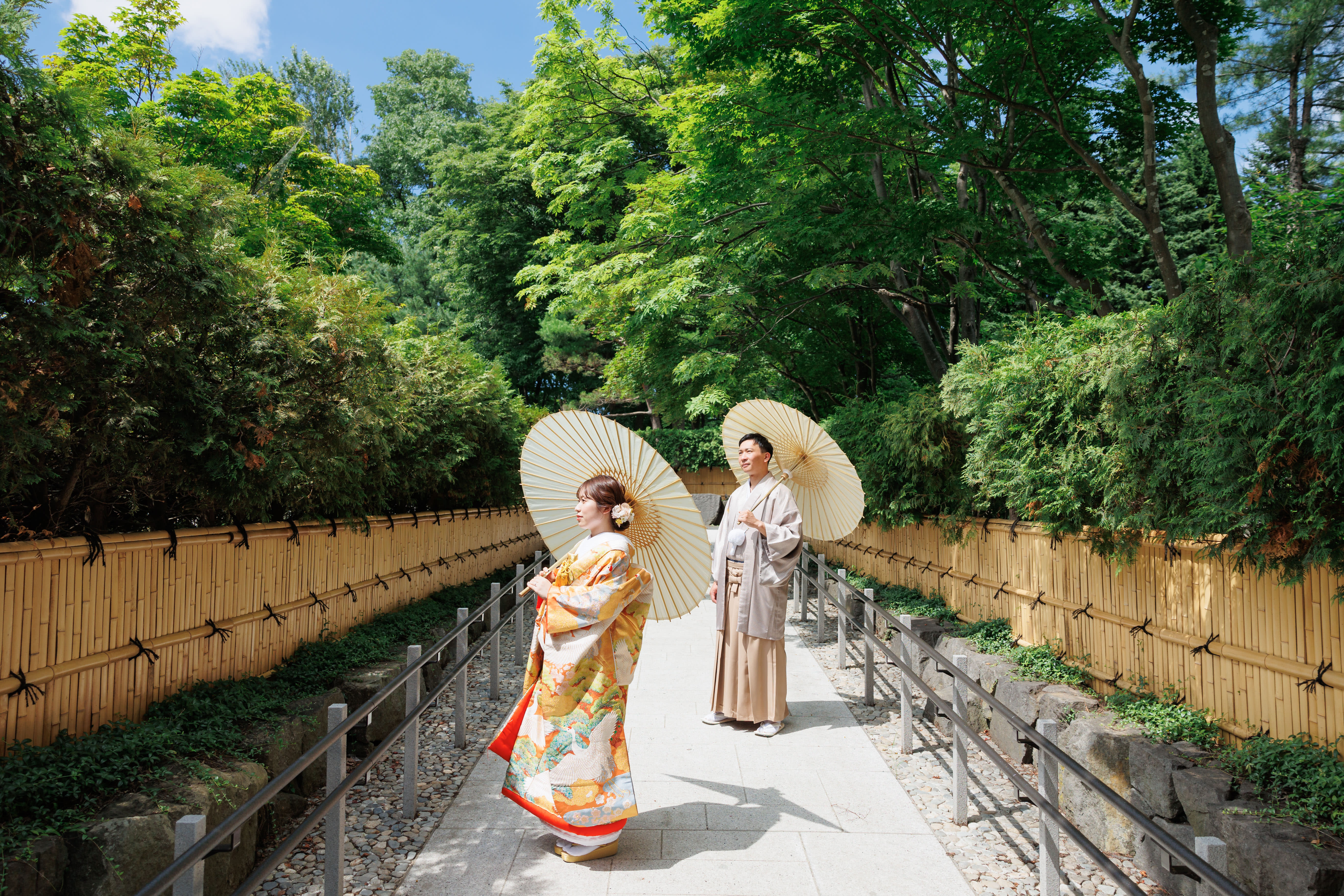 本格的な茶室スタジオで撮影する、和装の結婚写真