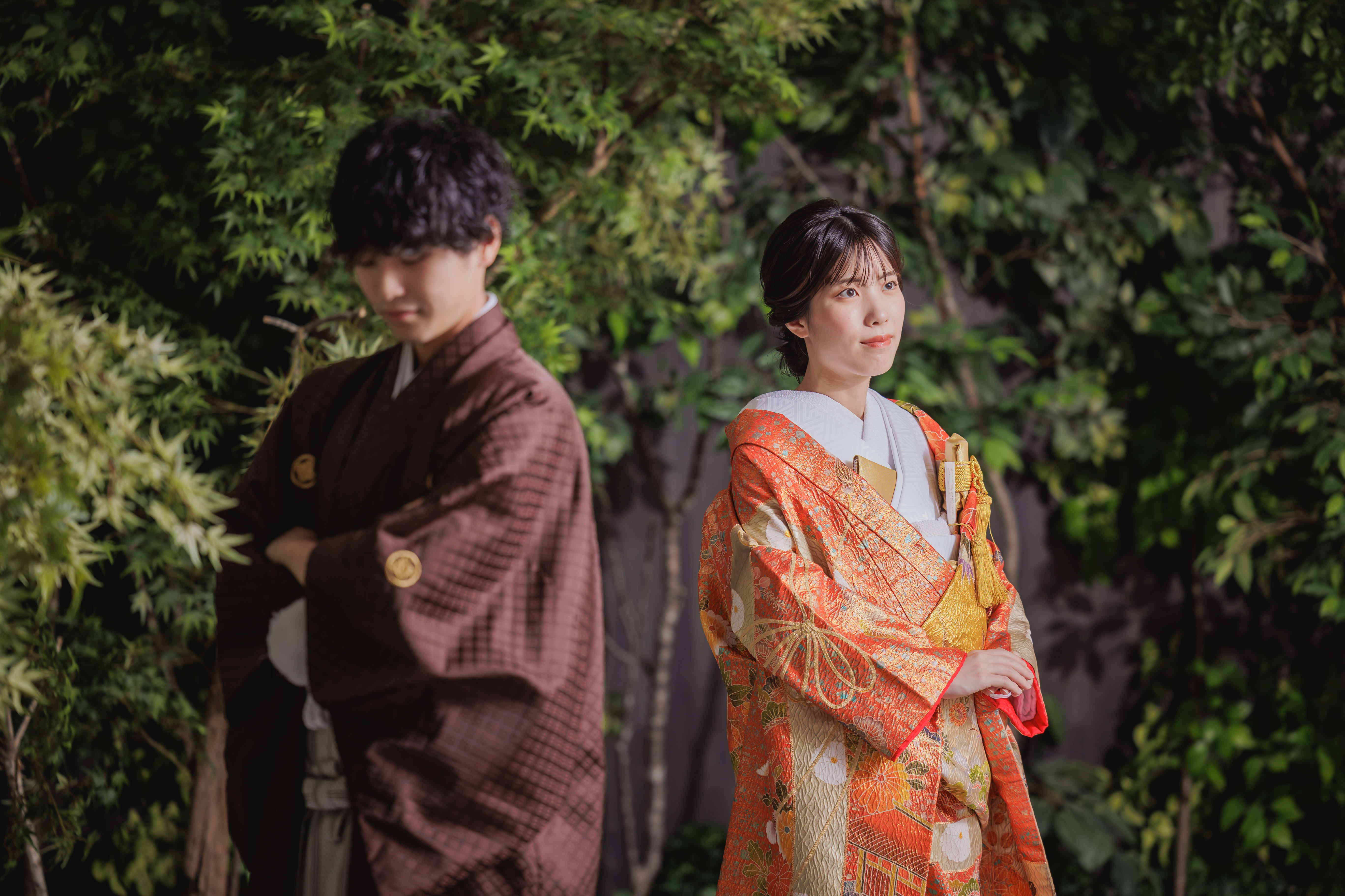 本格的な茶室スタジオで撮影する、和装の結婚写真