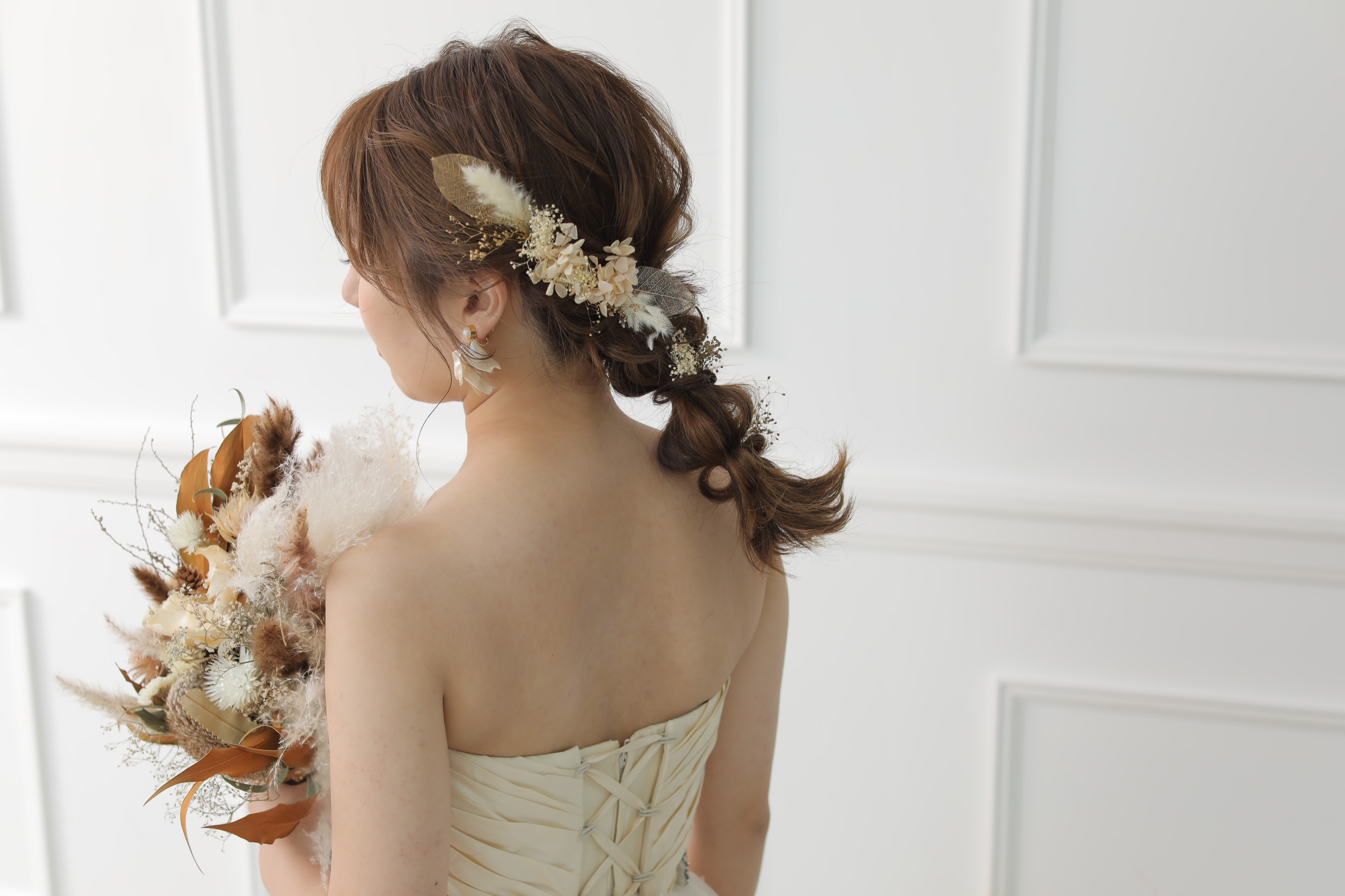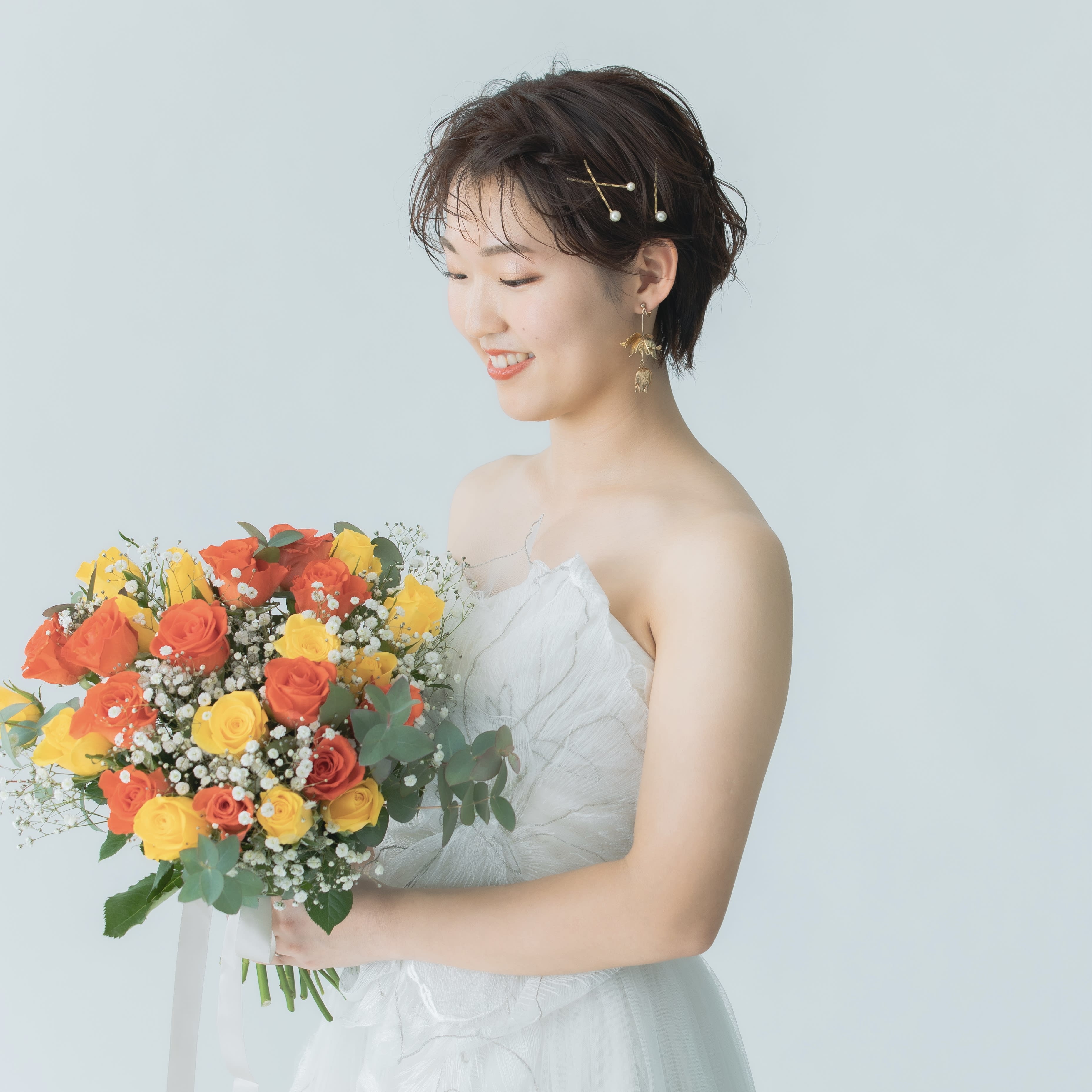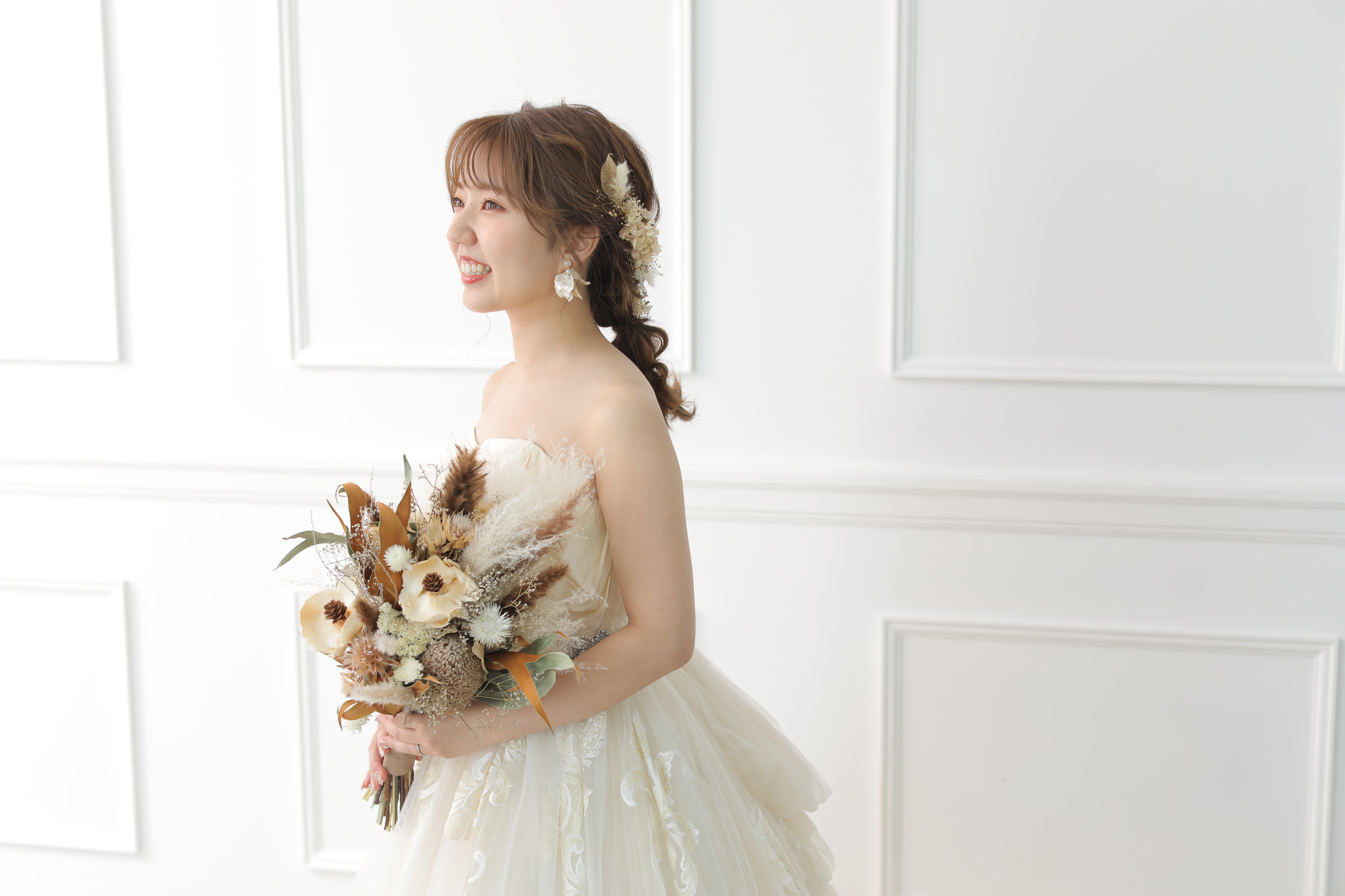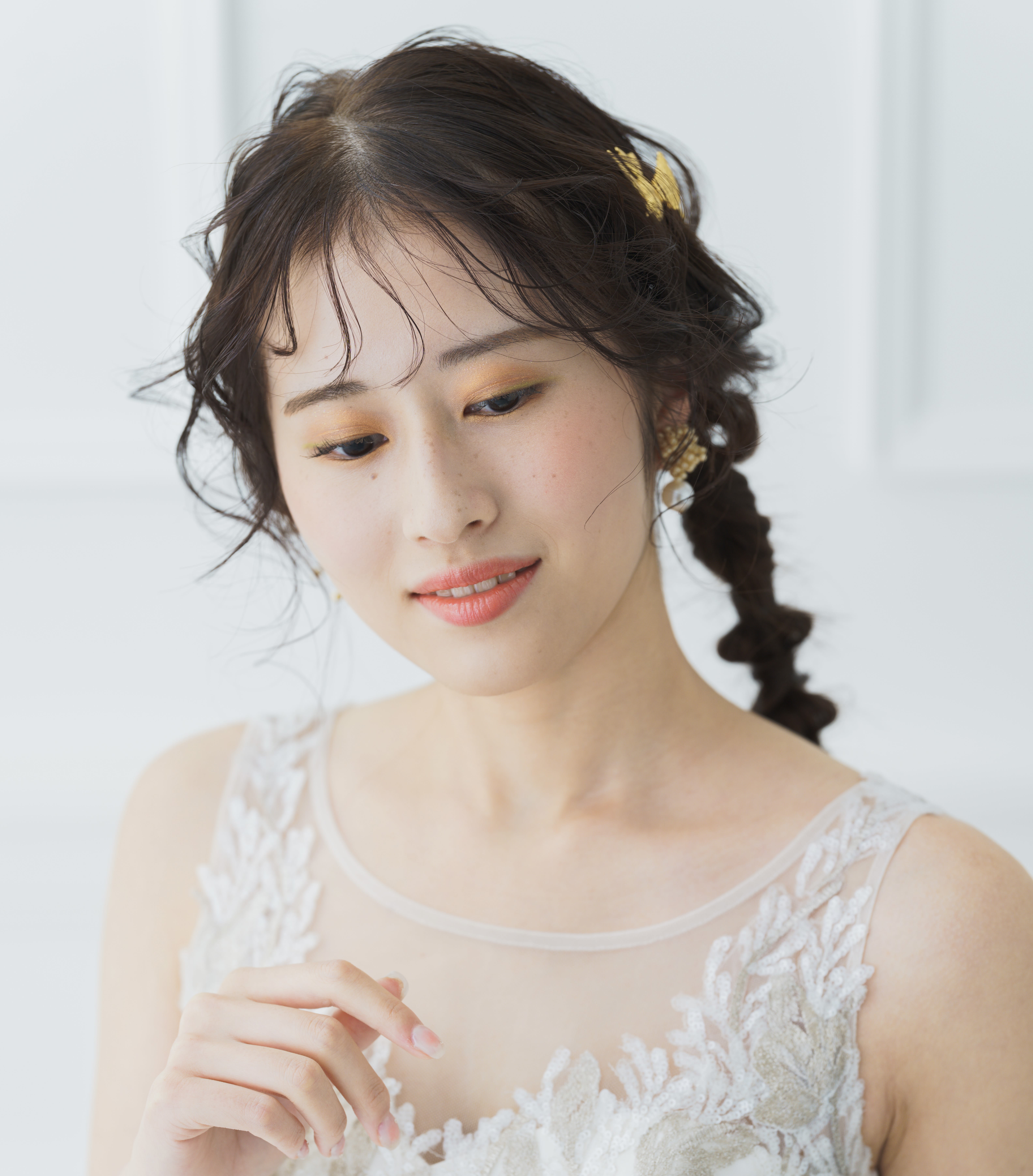 【得意・好きなテイスト】 ナチュラル・大人かわいい・きれいめ 女性らしく優しい雰囲気のヘアメイクがすきです。 お支度中は何でも話しやすい空気感づくりを心がけています。 新婦様が今までで1番かわいくなる瞬間をヘアメイクで楽しんでいただけたら嬉しいです♪ トータルバランスを大切にコーディネート、お花の色味もひとつひとつこだわってつけています♪ 素敵なお写真がたくさん残せるように、ヘアメイクでお手伝いさせて頂けたら嬉しいです!