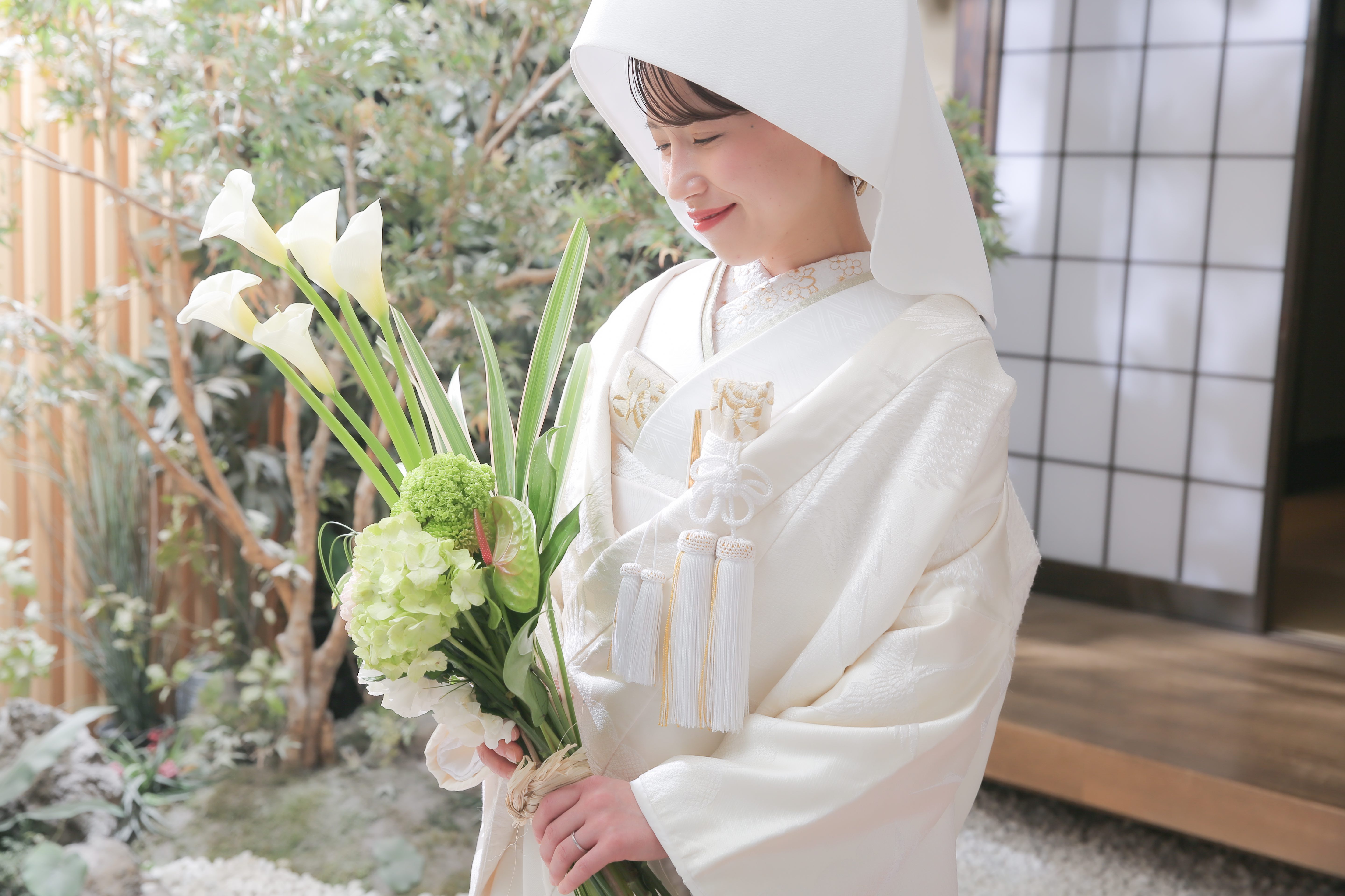本格日本庭園を再現したスタジオで撮る 和装の結婚写真