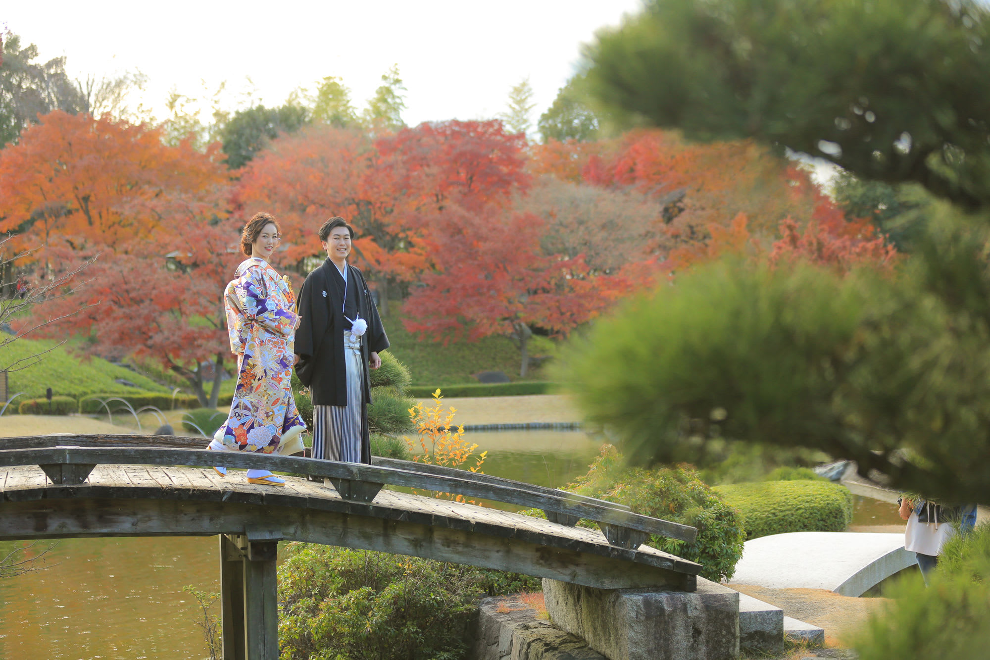 本格日本庭園を再現したスタジオで撮る 和装の結婚写真