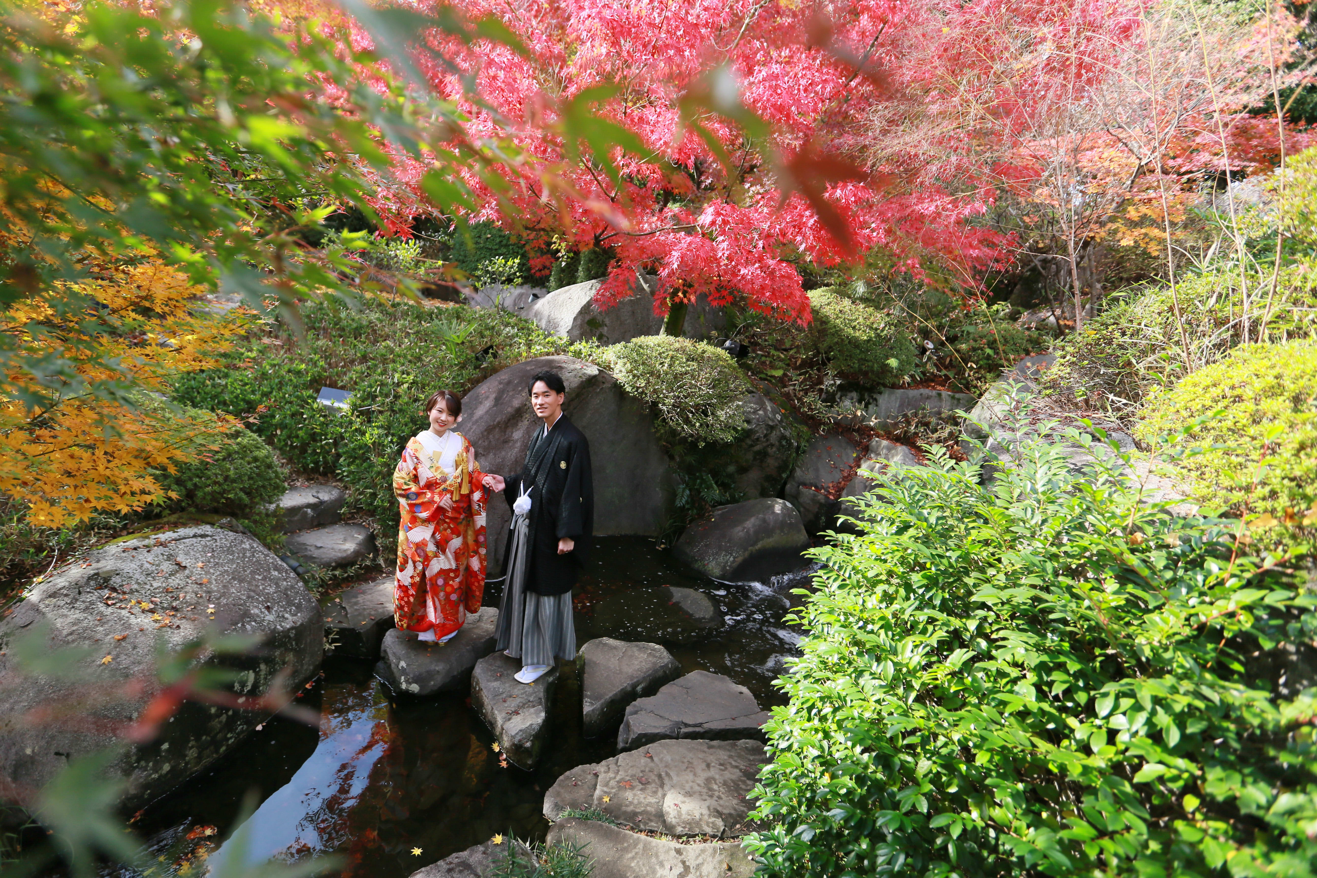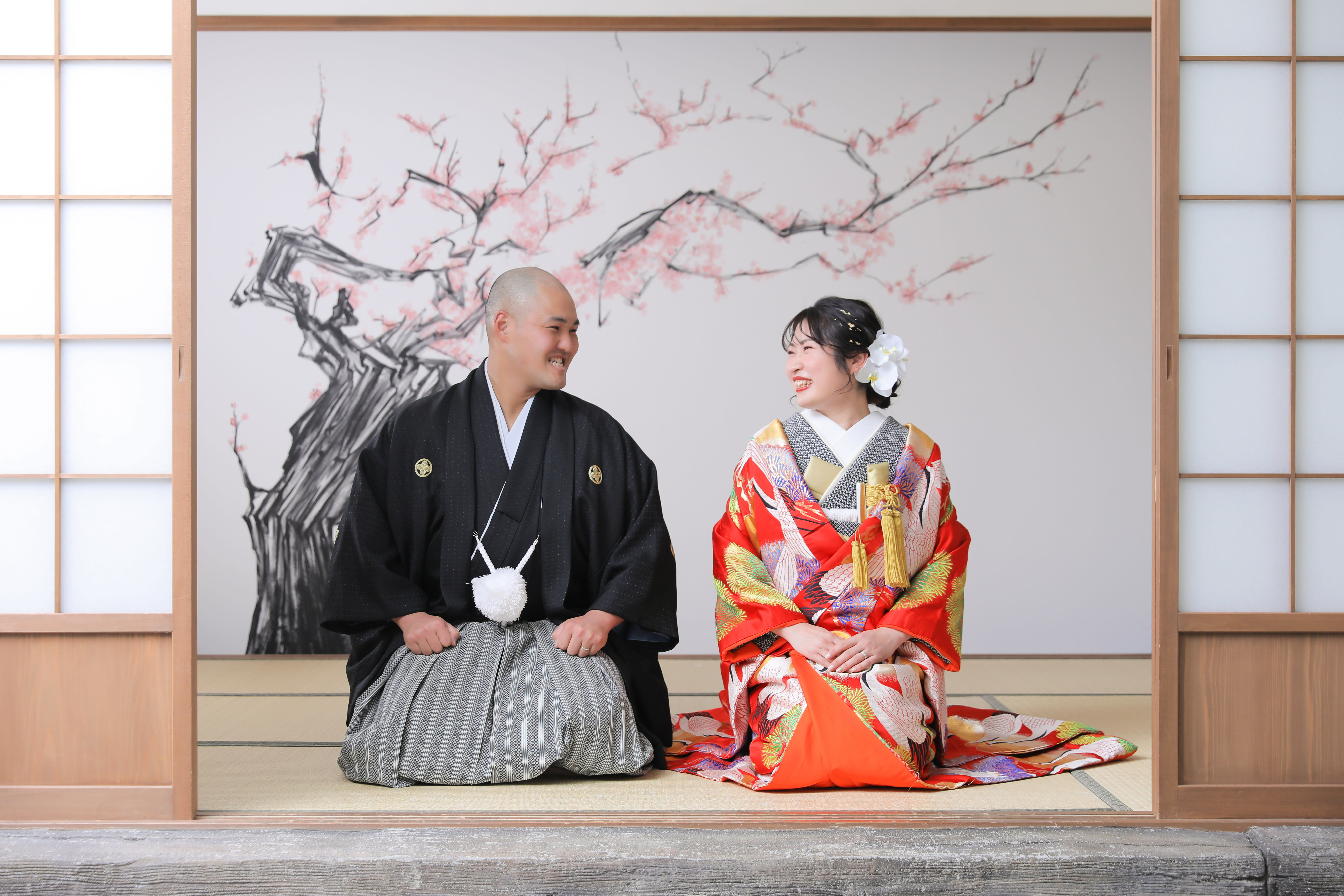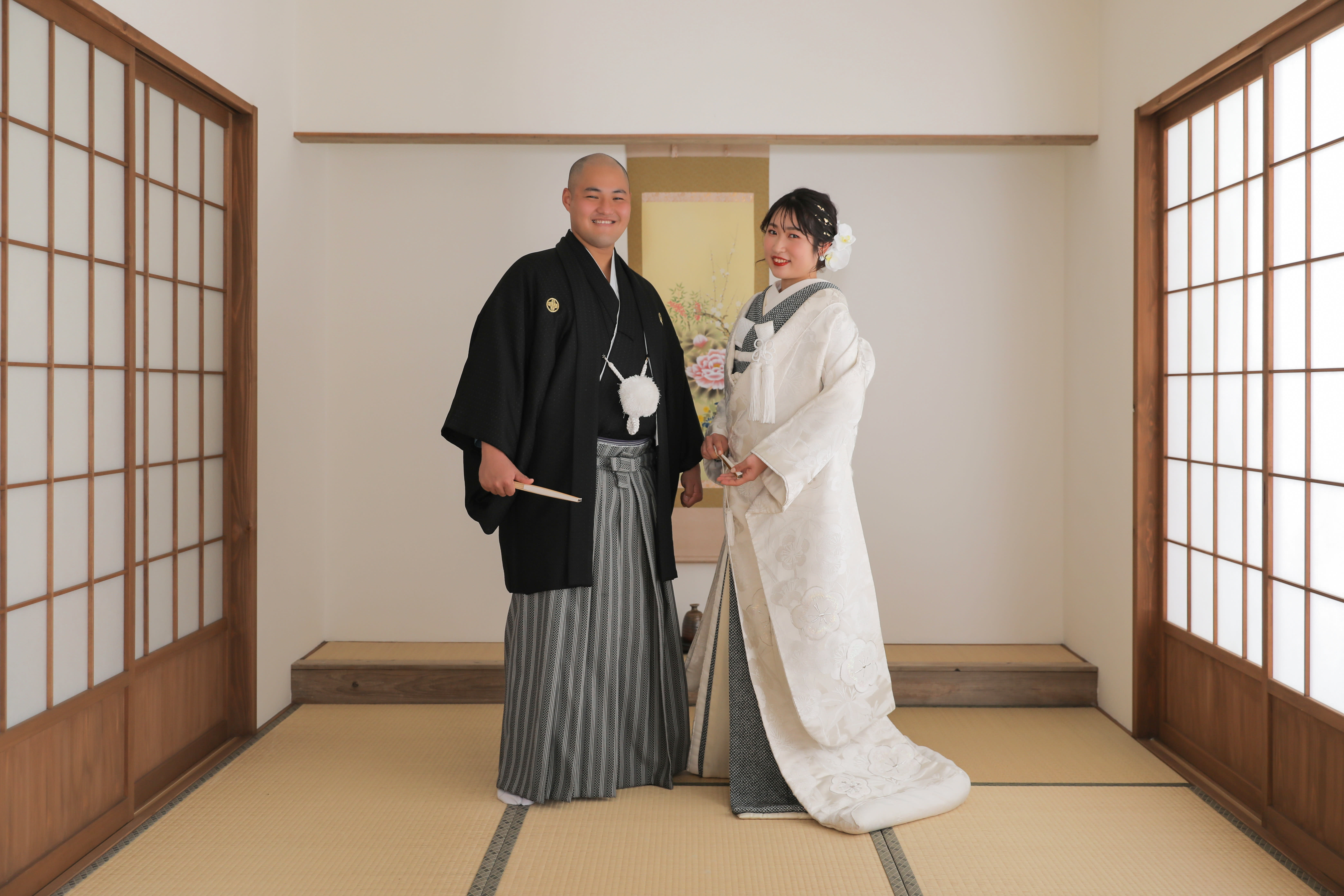 新宿店の本格的な茶室スタジオで撮影する、和装の結婚写真