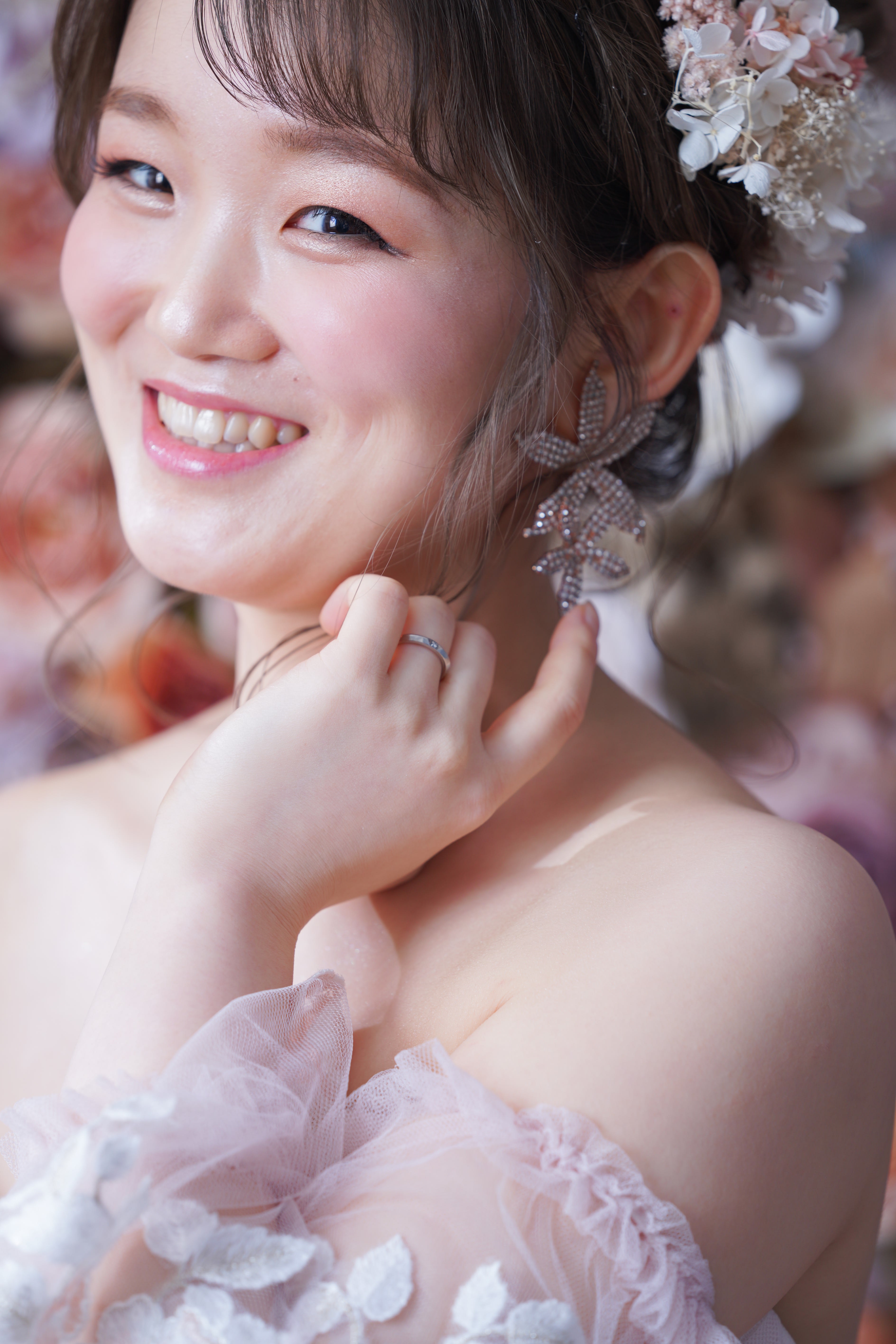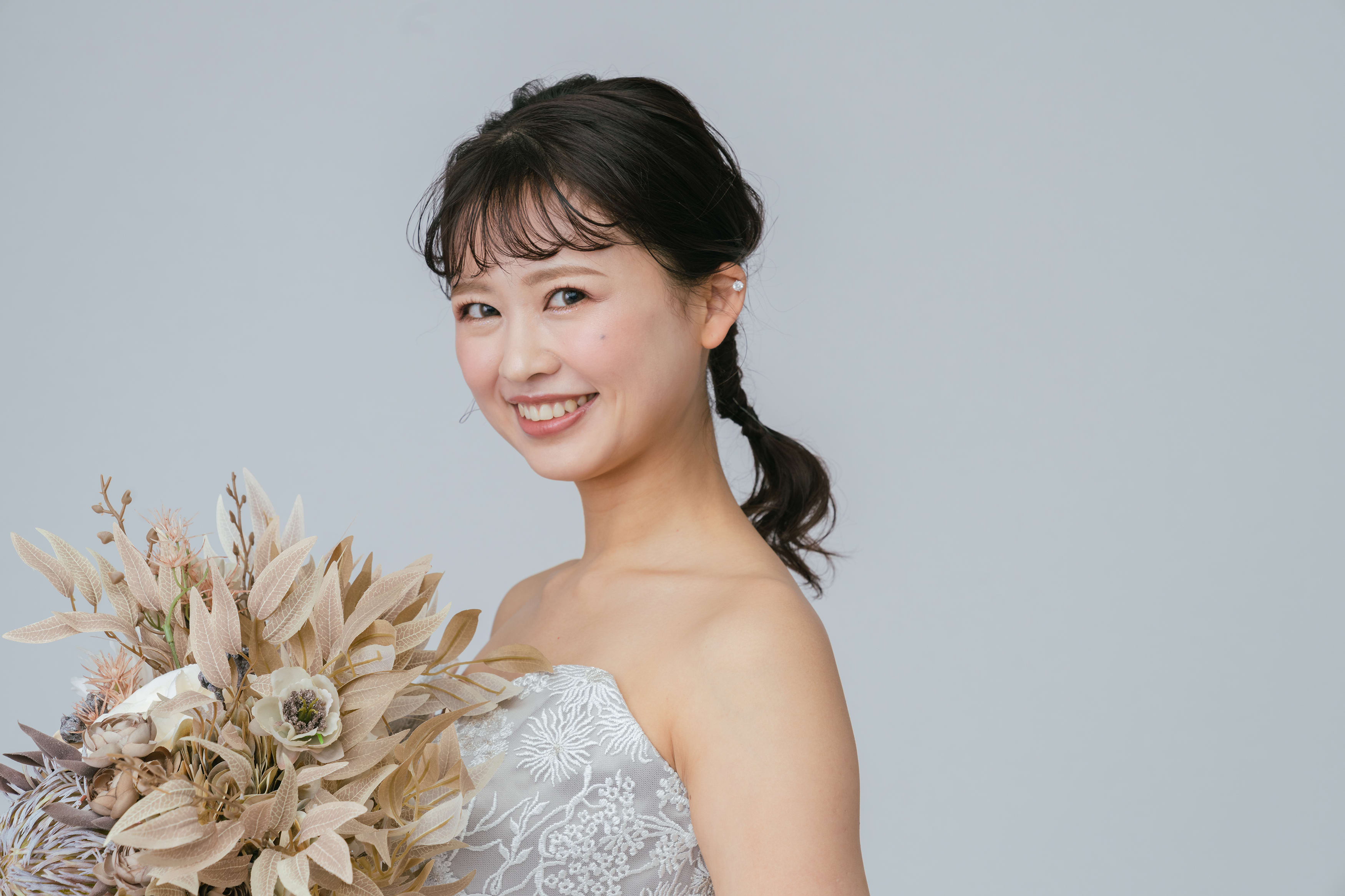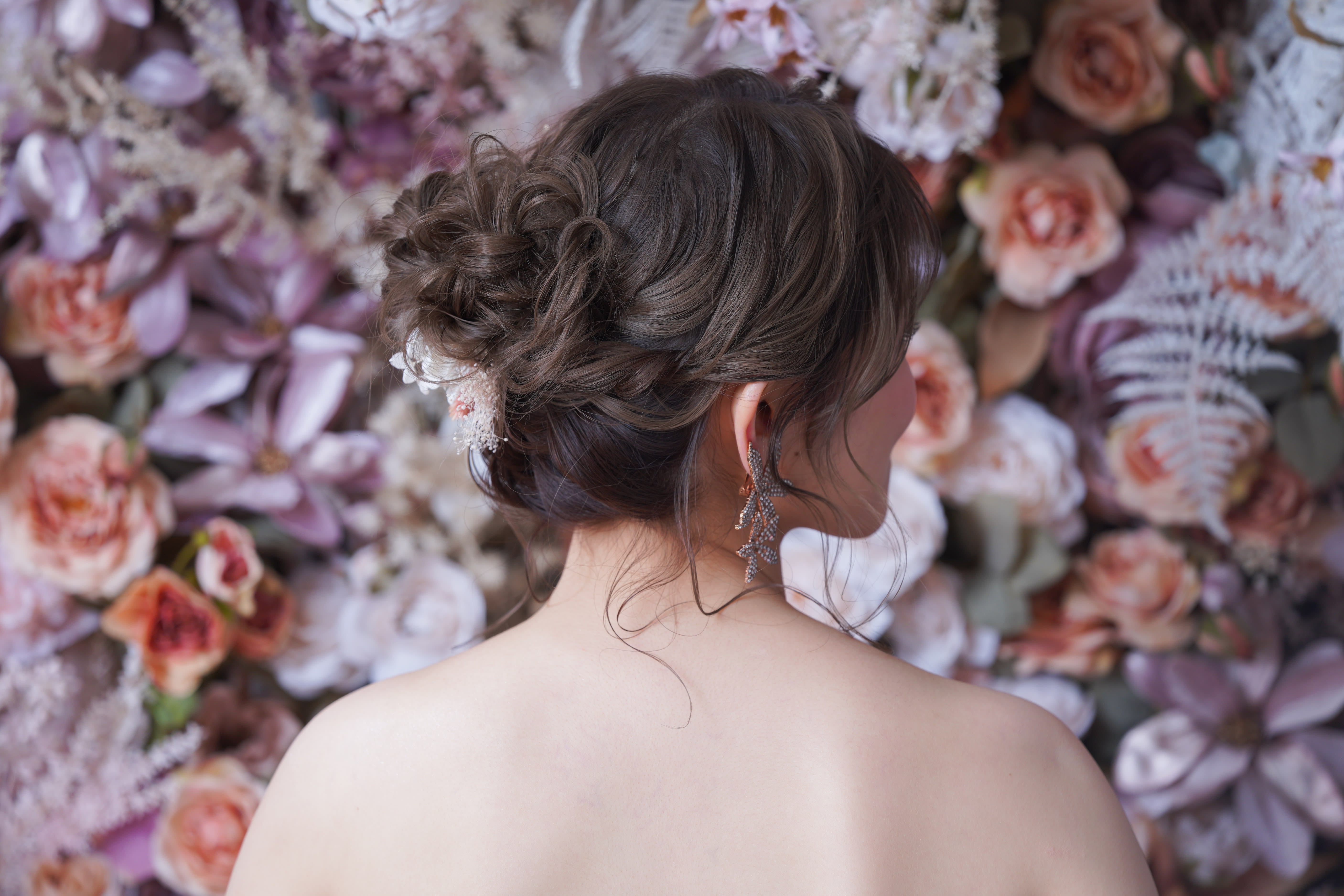 一面お花の壁が登場! 洋館風の立川店スタジオで撮影する洋装ウェディングフォトプラン