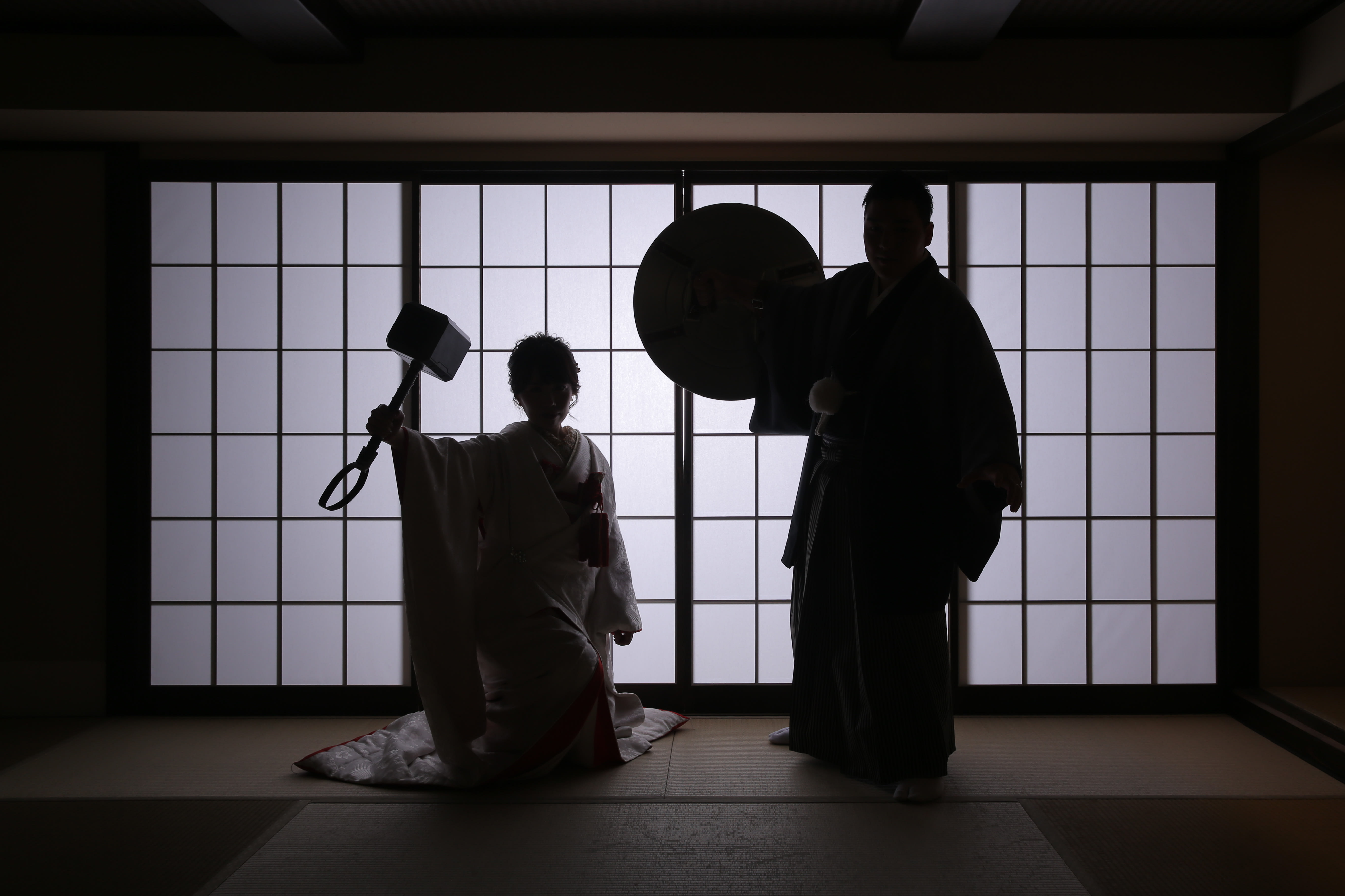 本格日本庭園を再現したスタジオで撮る 和装の結婚写真