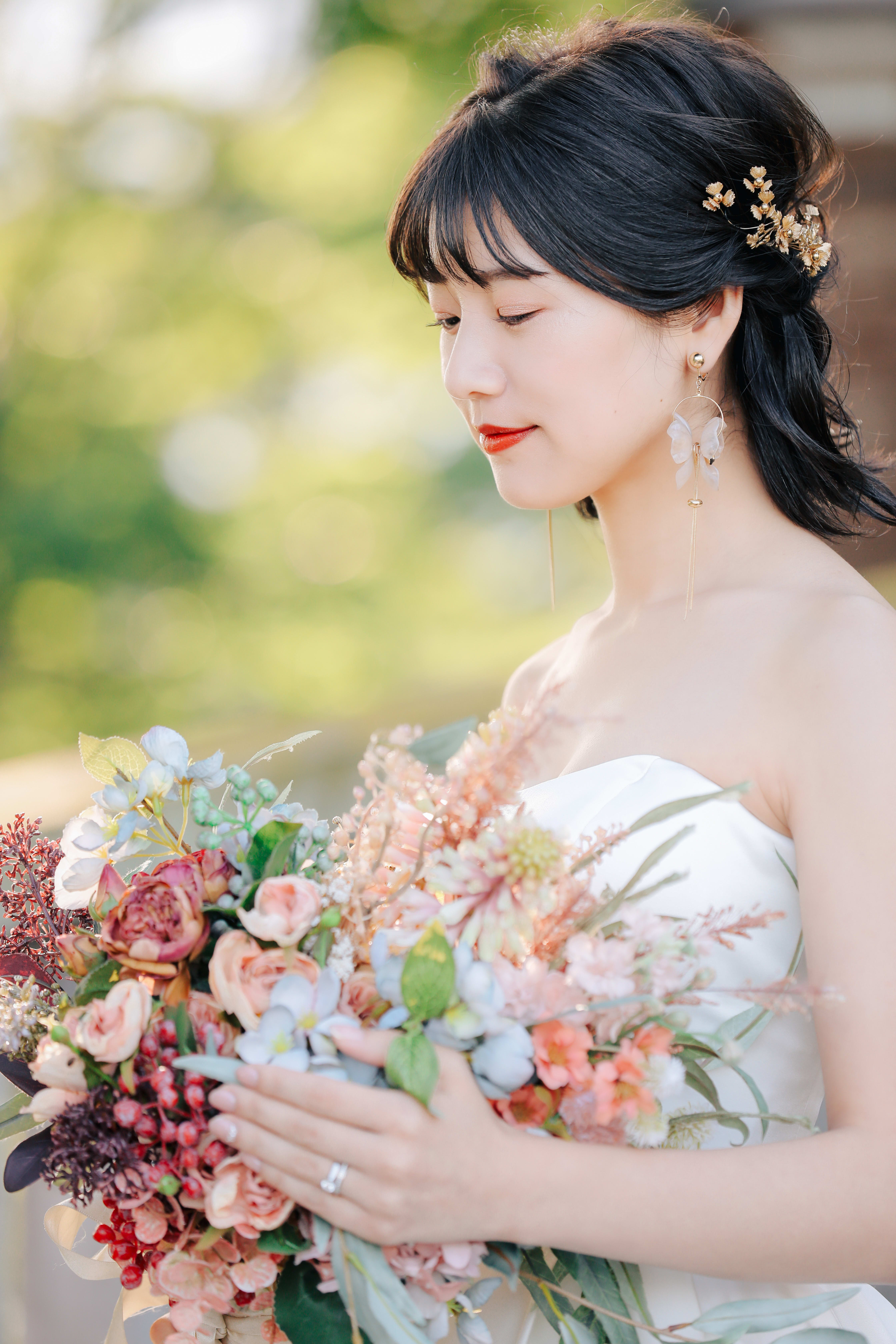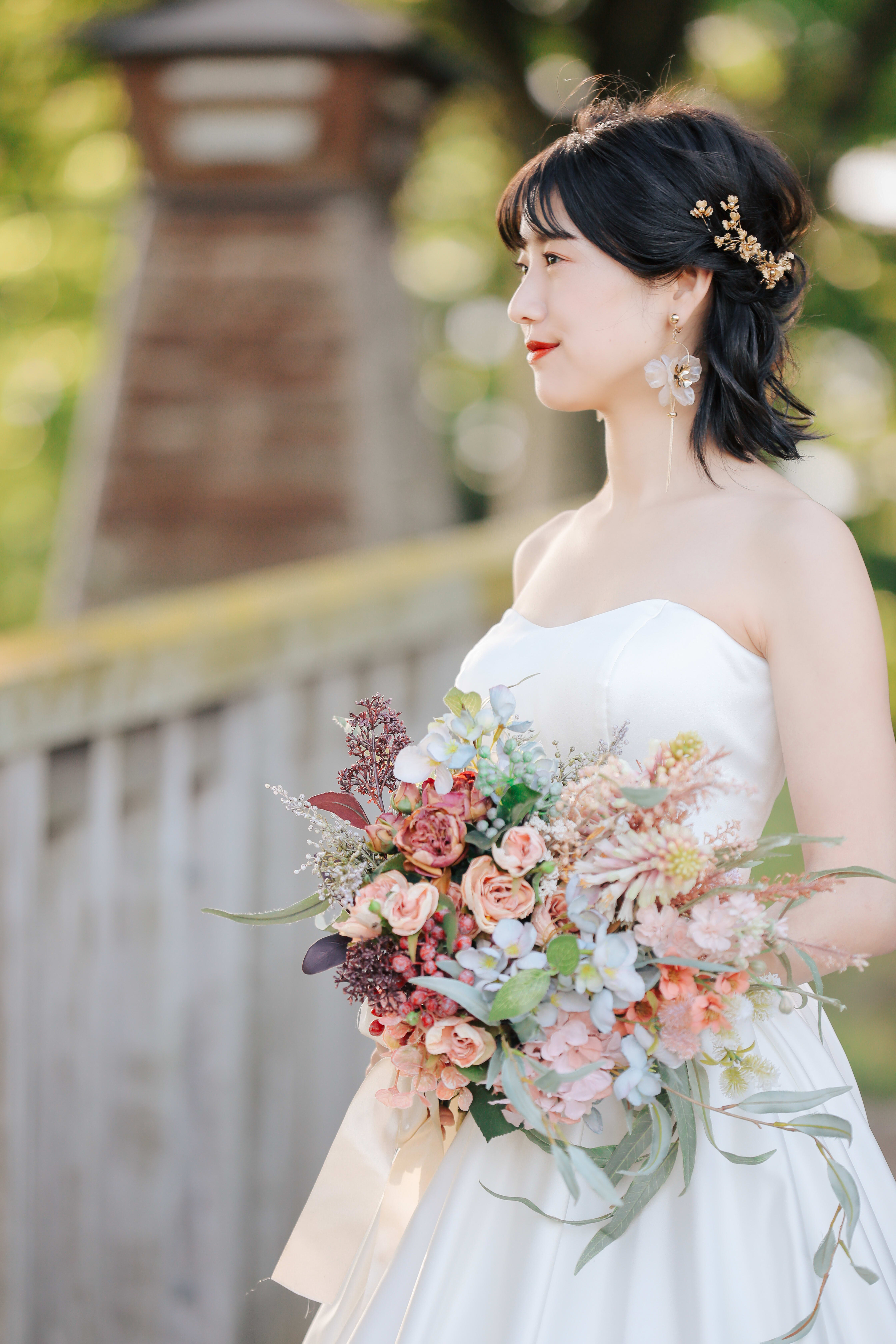 花嫁様の表情がより綺麗に輝くように、 リラックスして過ごして頂けるように。 お2人の幸せが画面いっぱいに伝わるよう 丁寧にお支度させて頂きます! 特にフェミニンな雰囲気の ヘアメイク、コーディネイトが得意です。 大切な瞬間を、とびきり素敵に残しましょう!!