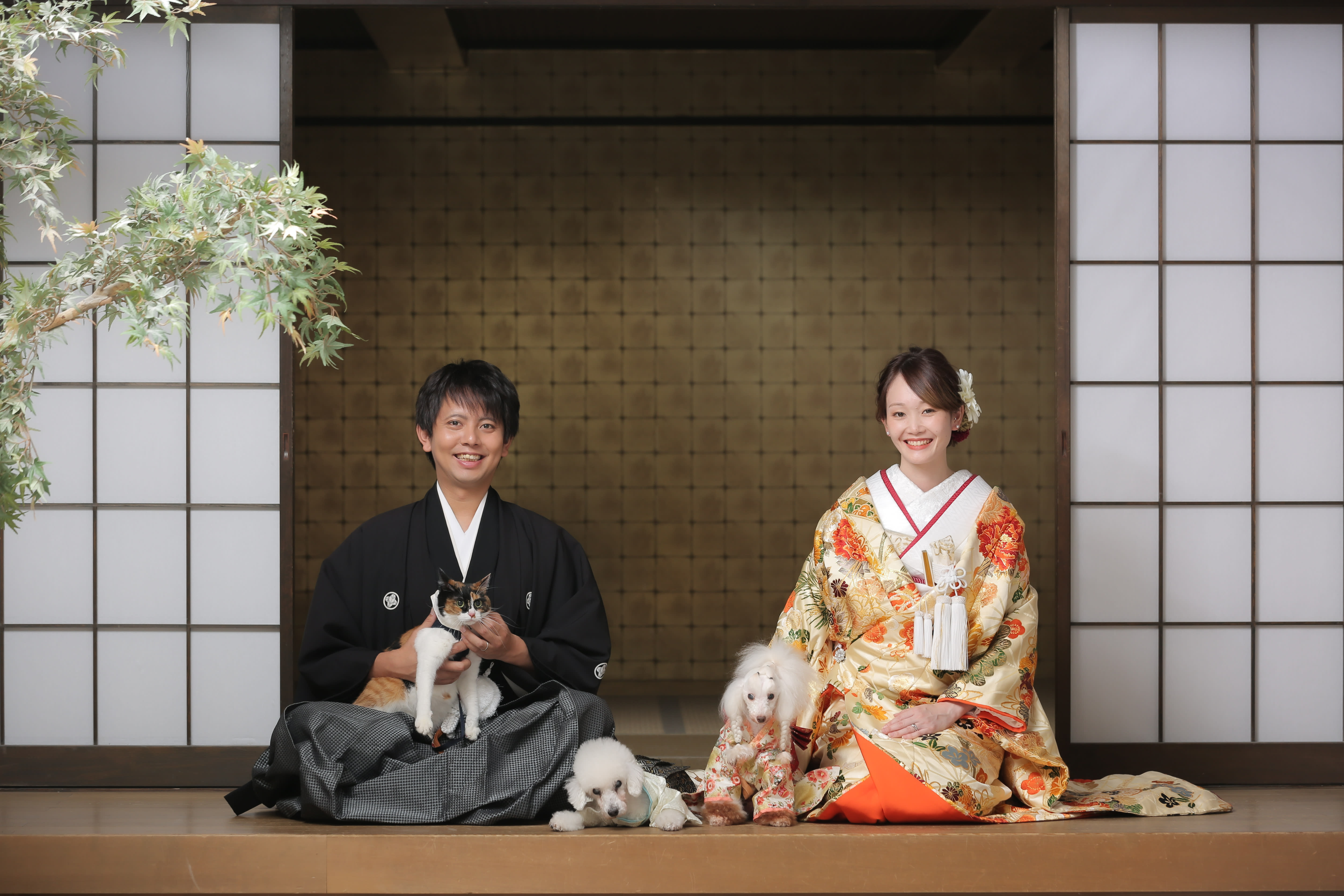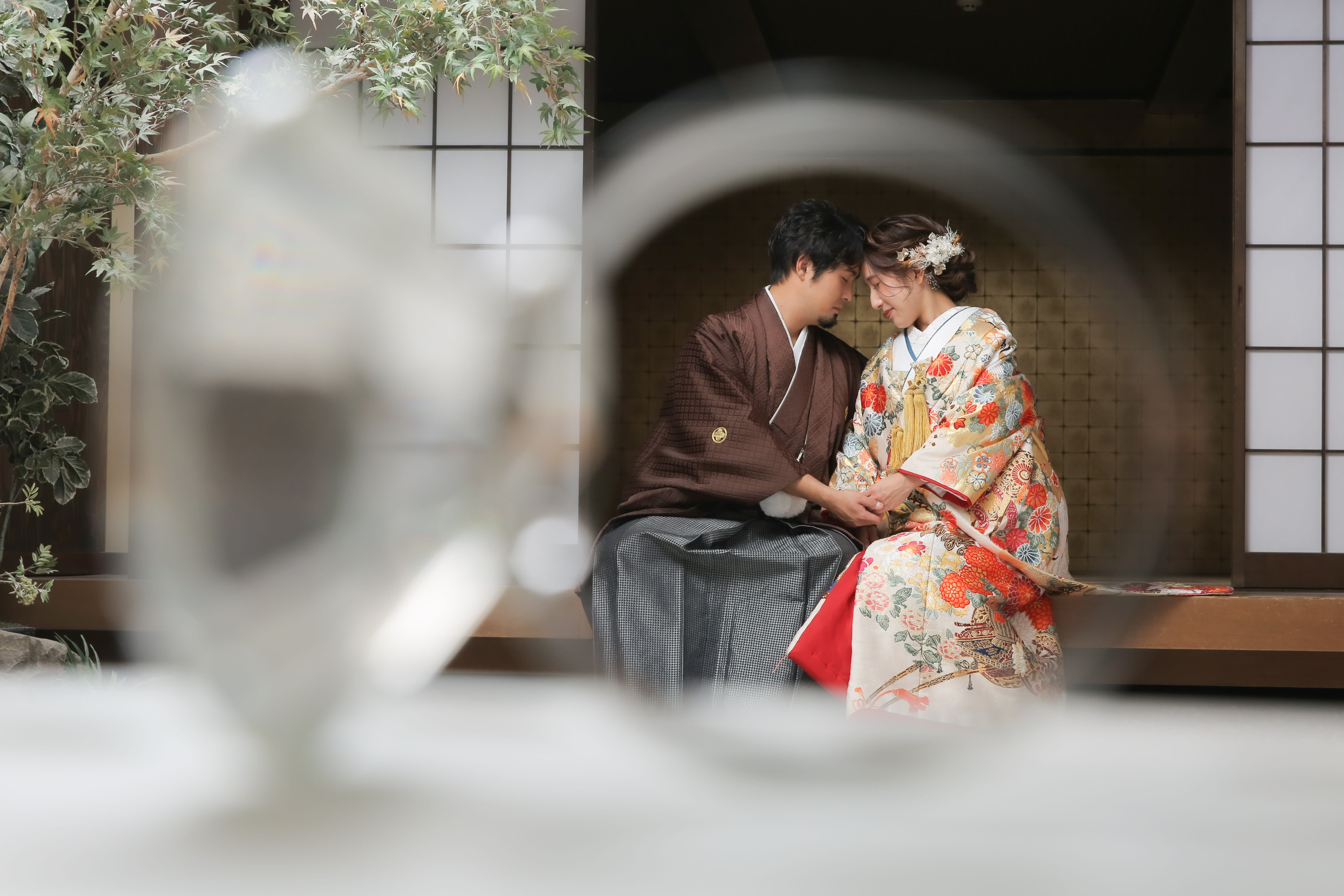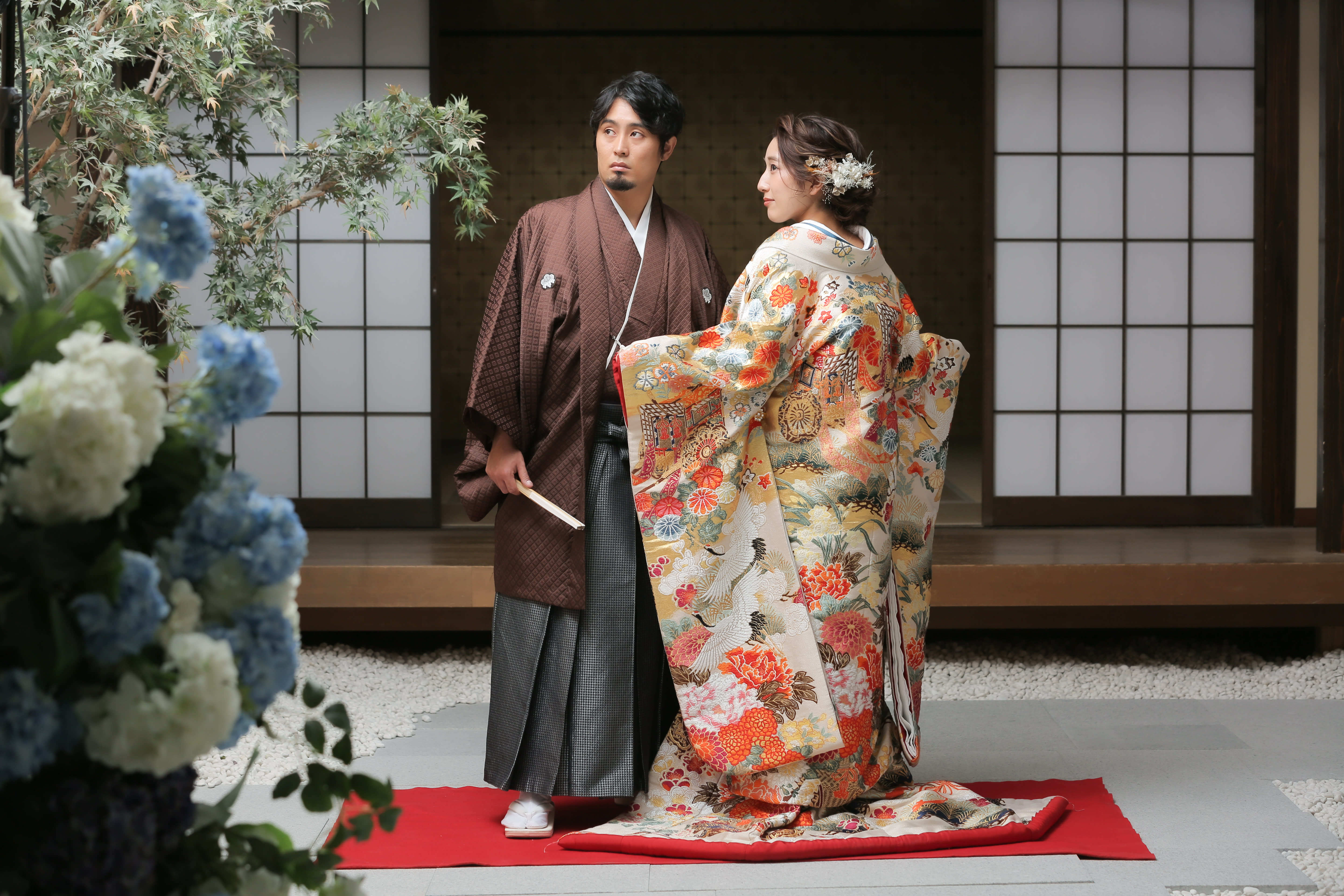 本格日本庭園を再現したスタジオで撮る 和装の結婚写真