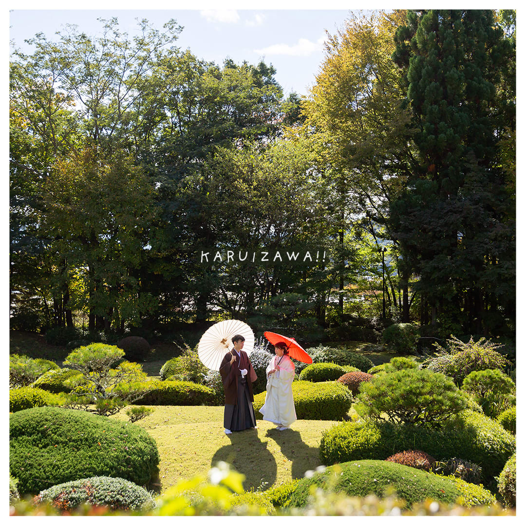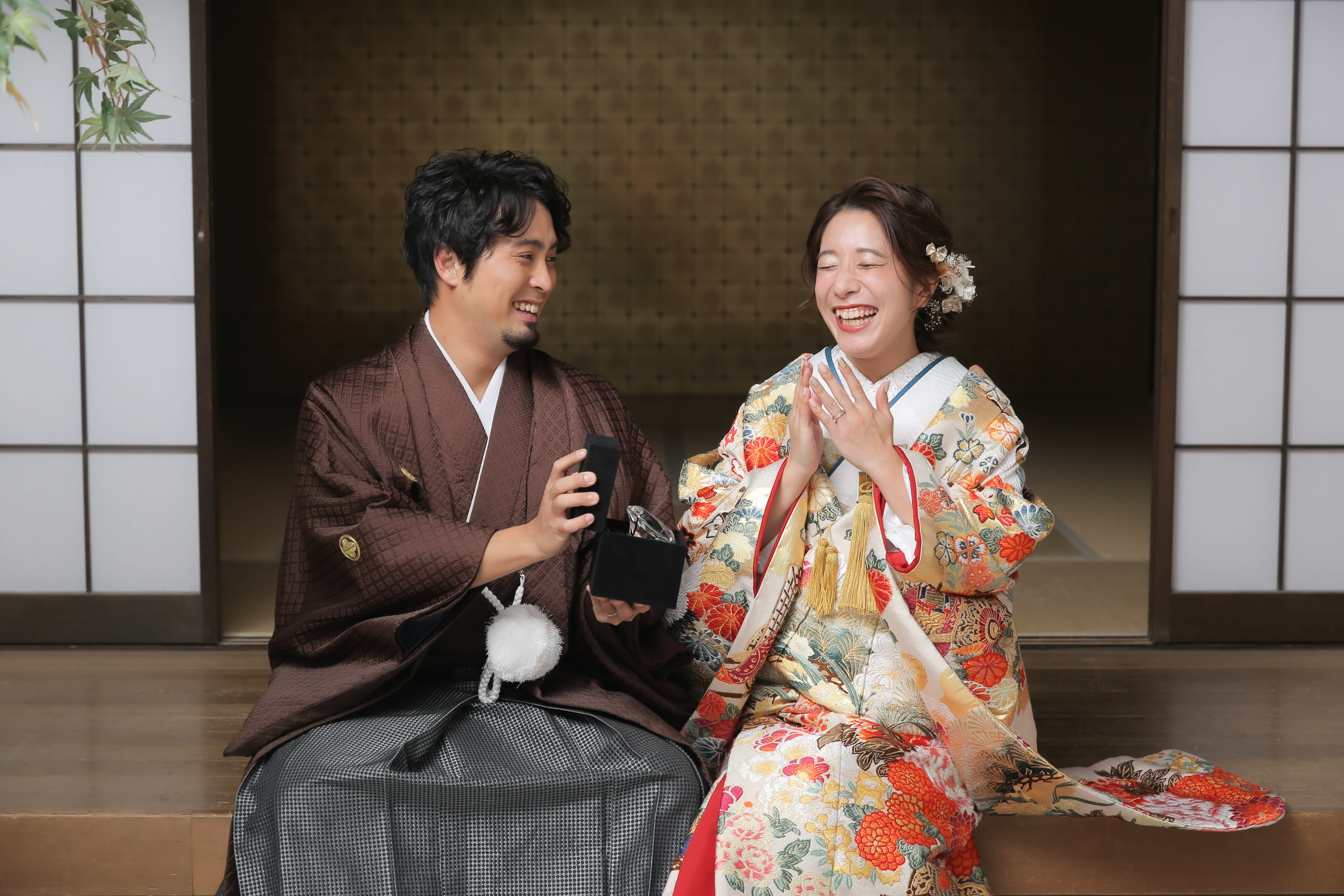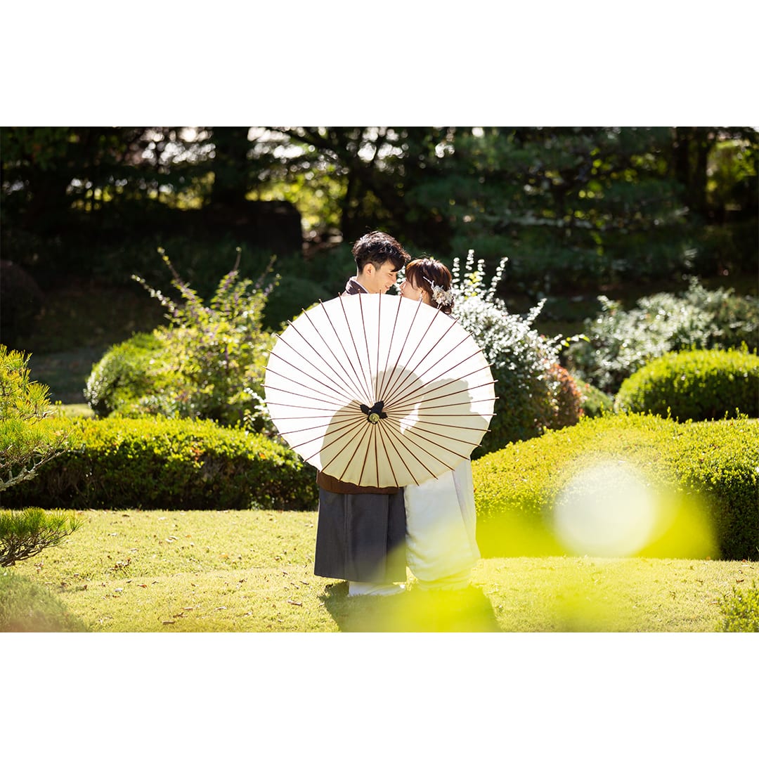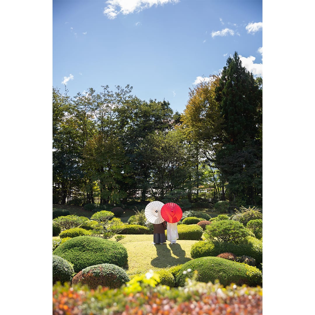 本格日本庭園を再現したスタジオで撮る 和装の結婚写真