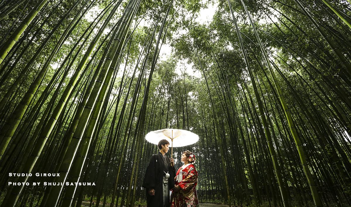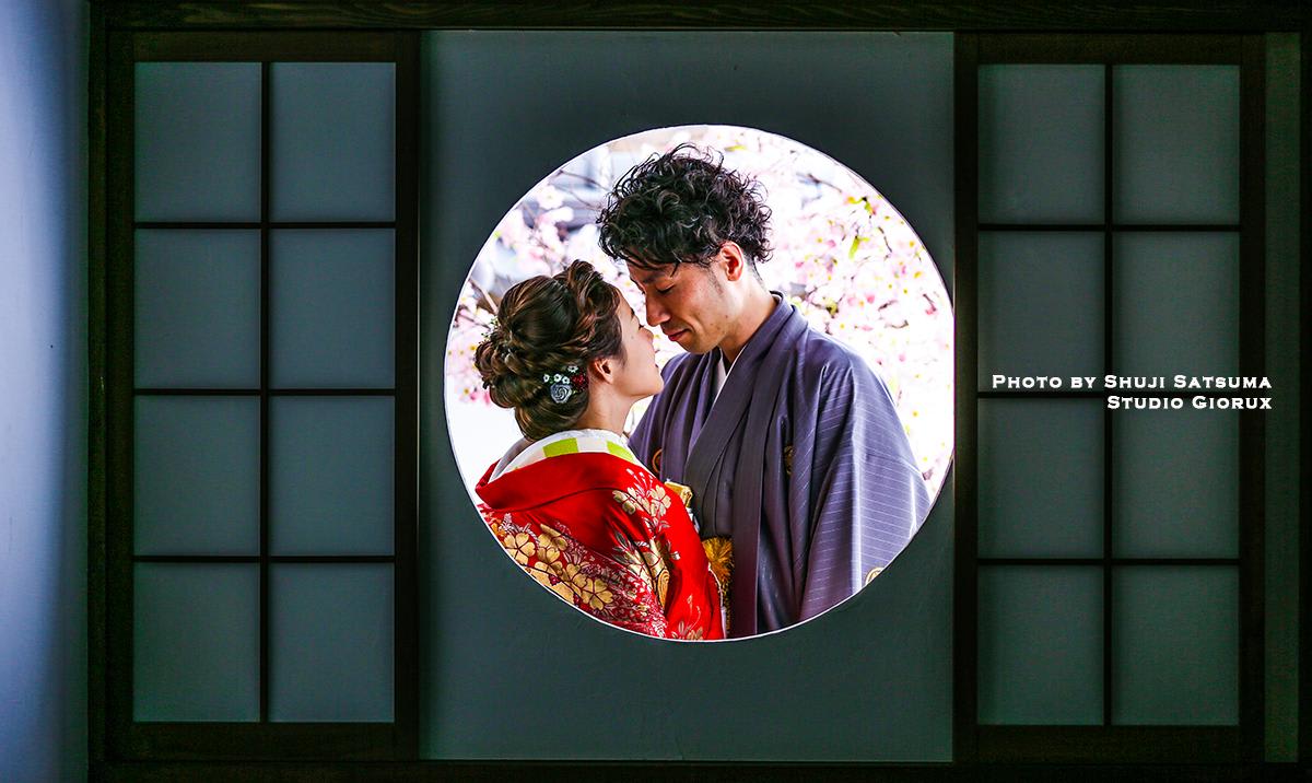 本格日本庭園を再現したスタジオで撮る 和装の結婚写真