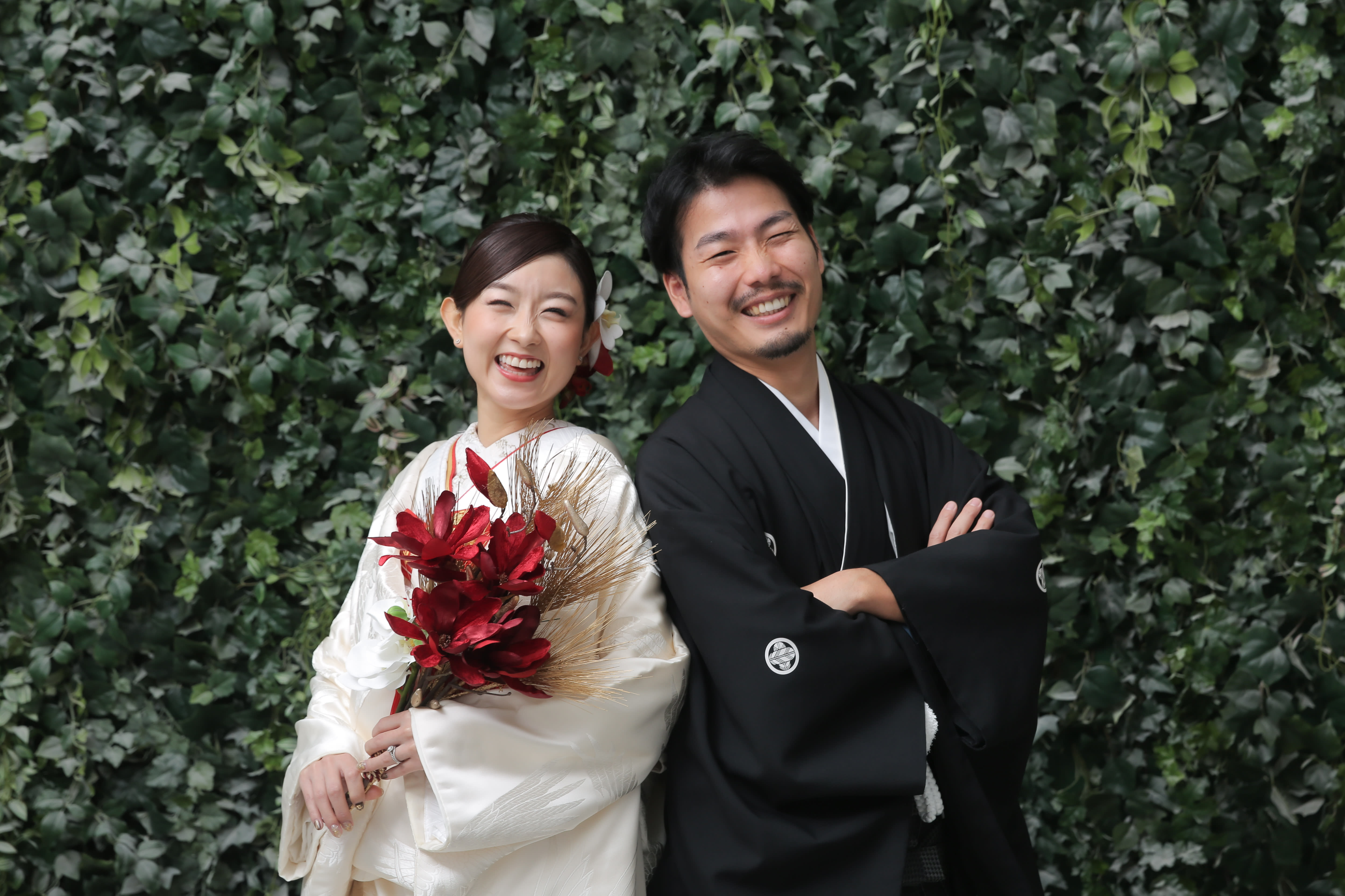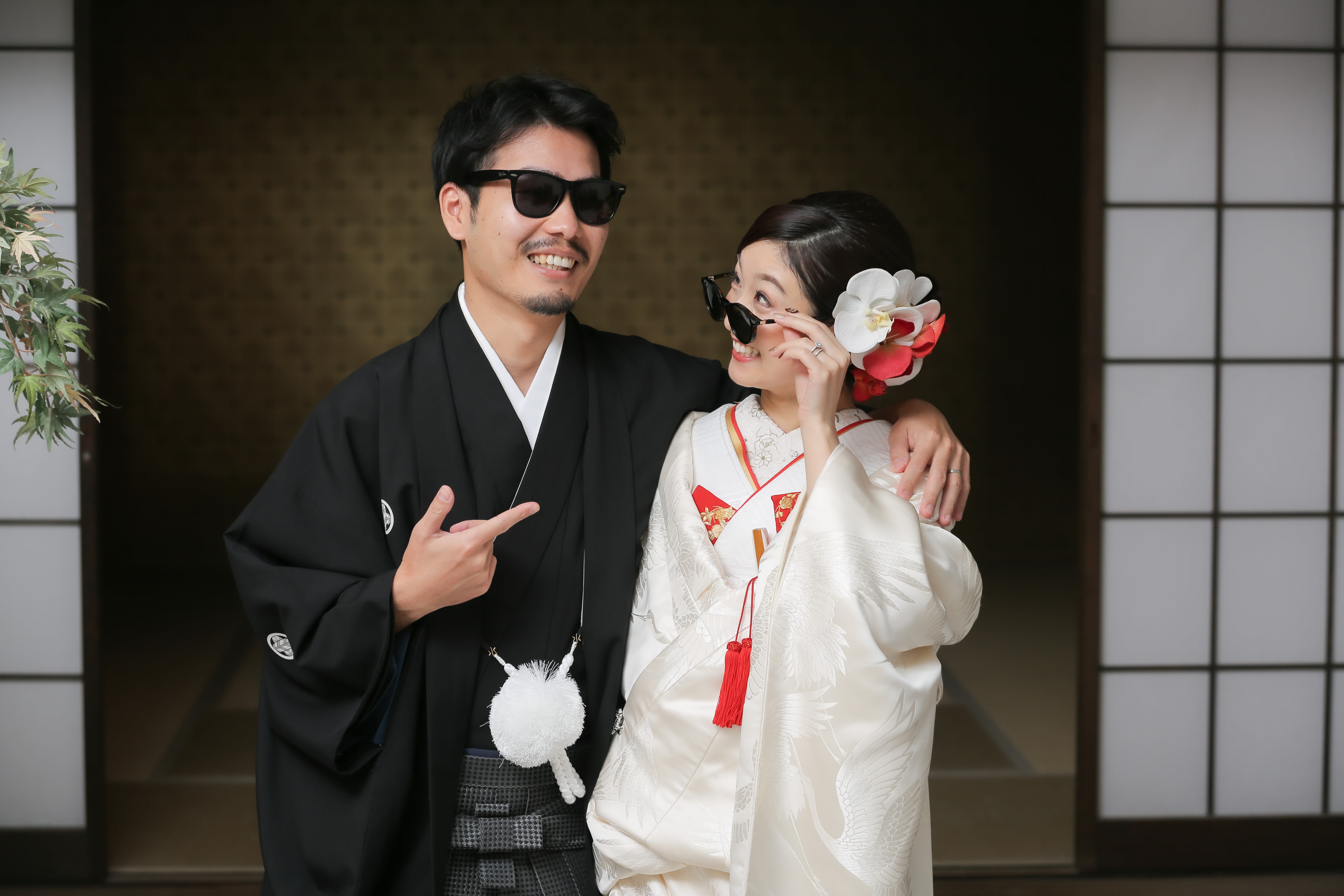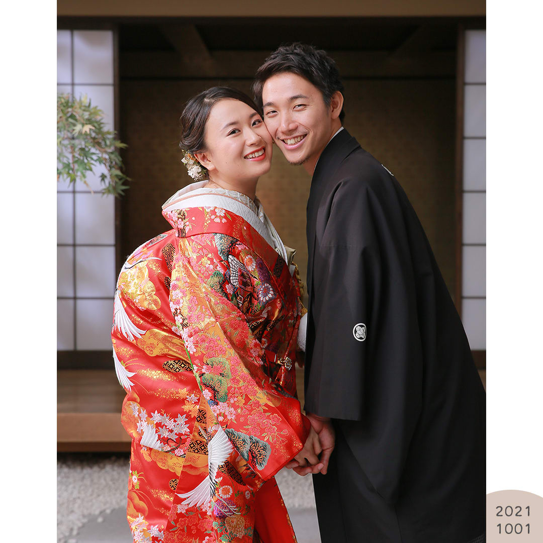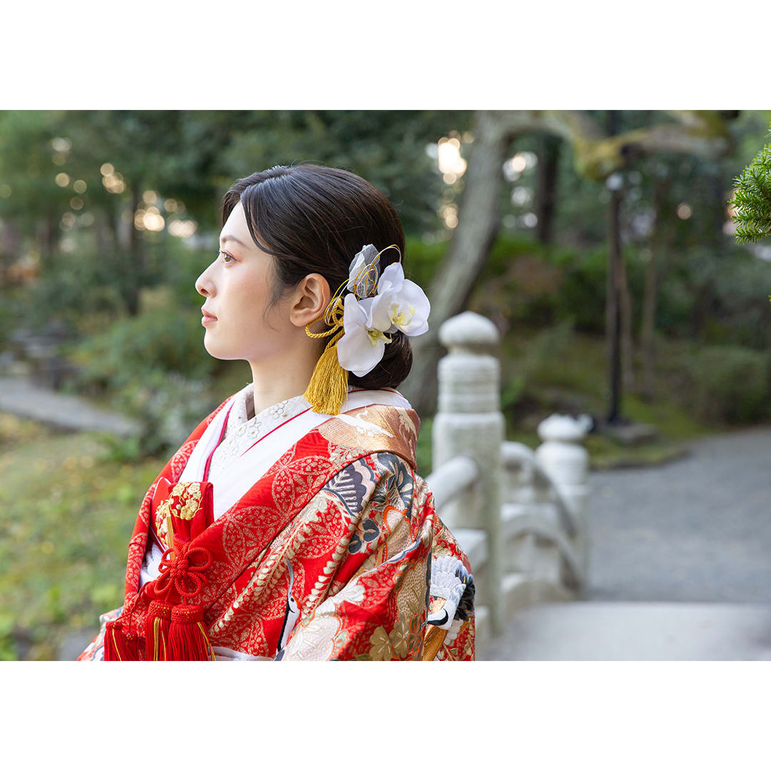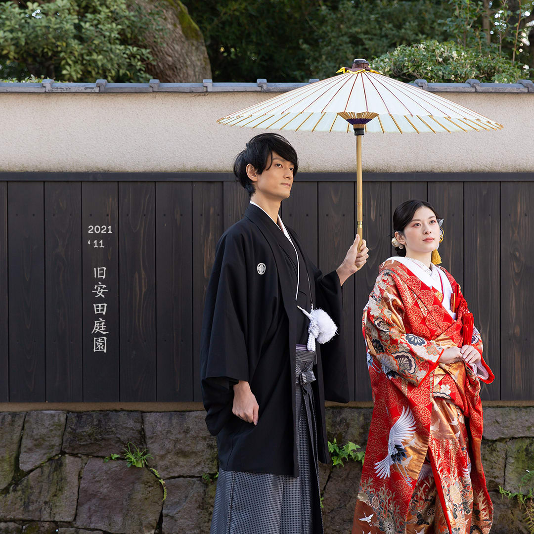 本格日本庭園を再現したスタジオで撮る 和装の結婚写真