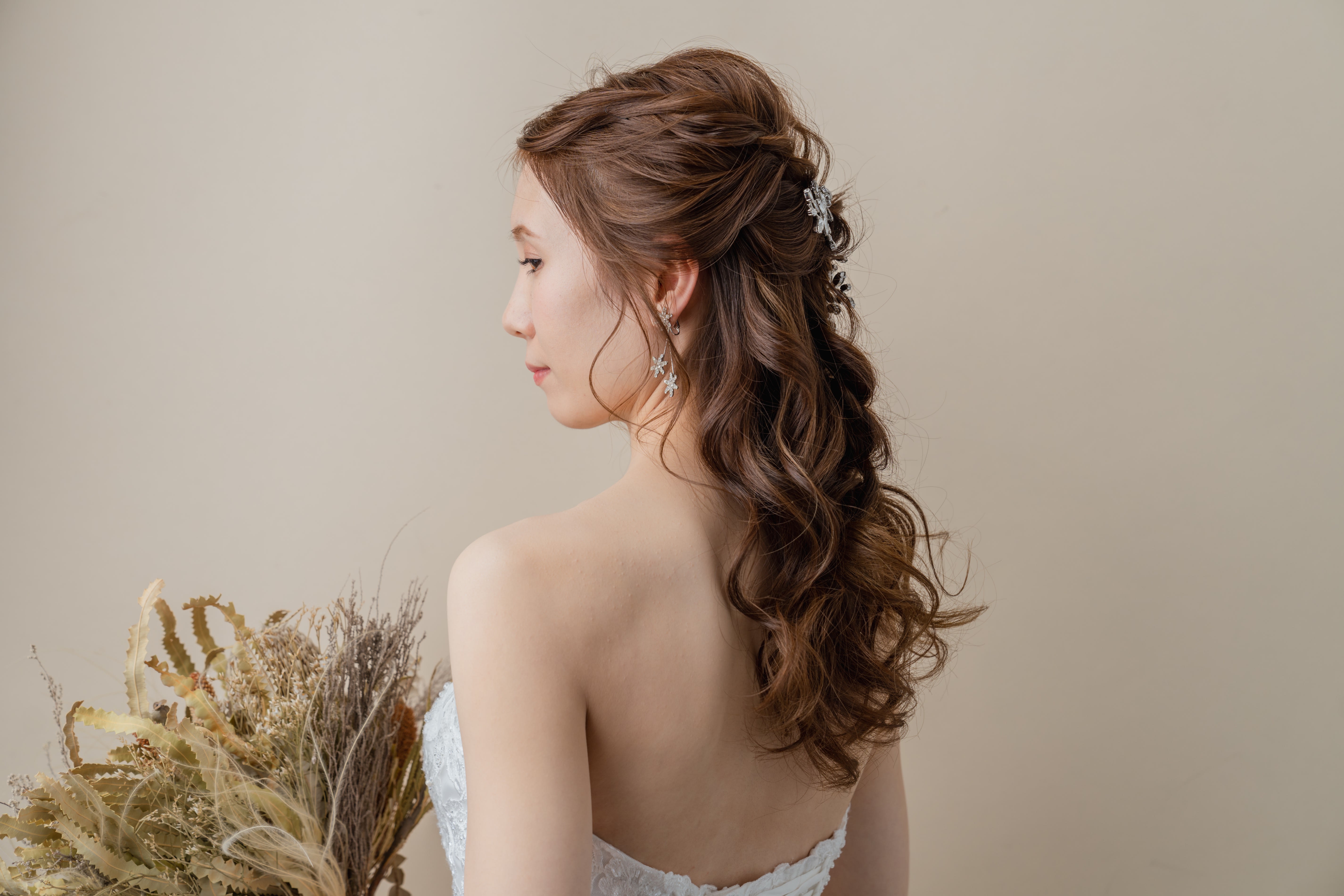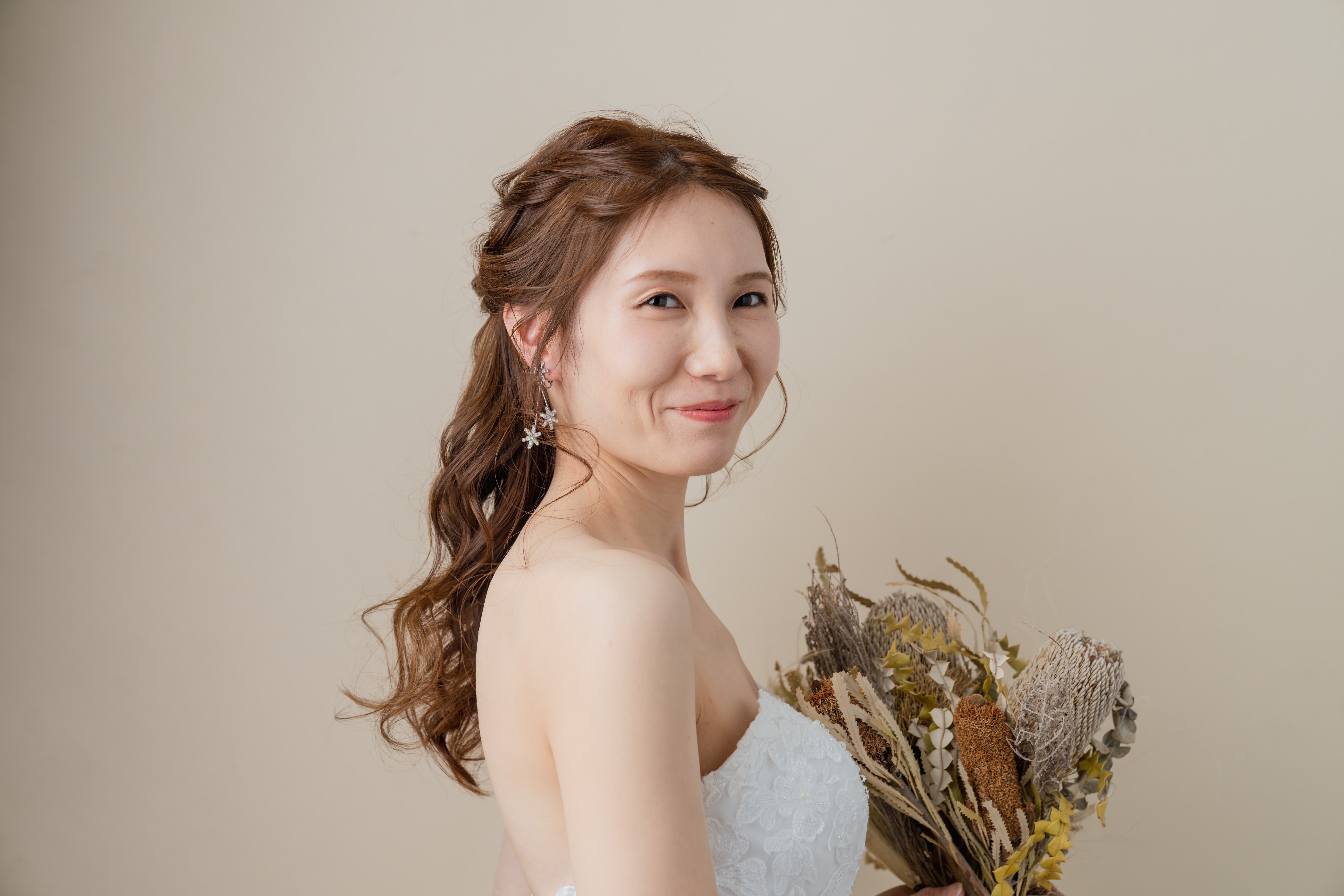 一面お花の壁が登場! 洋館風の立川店スタジオで撮影する洋装ウェディングフォトプラン