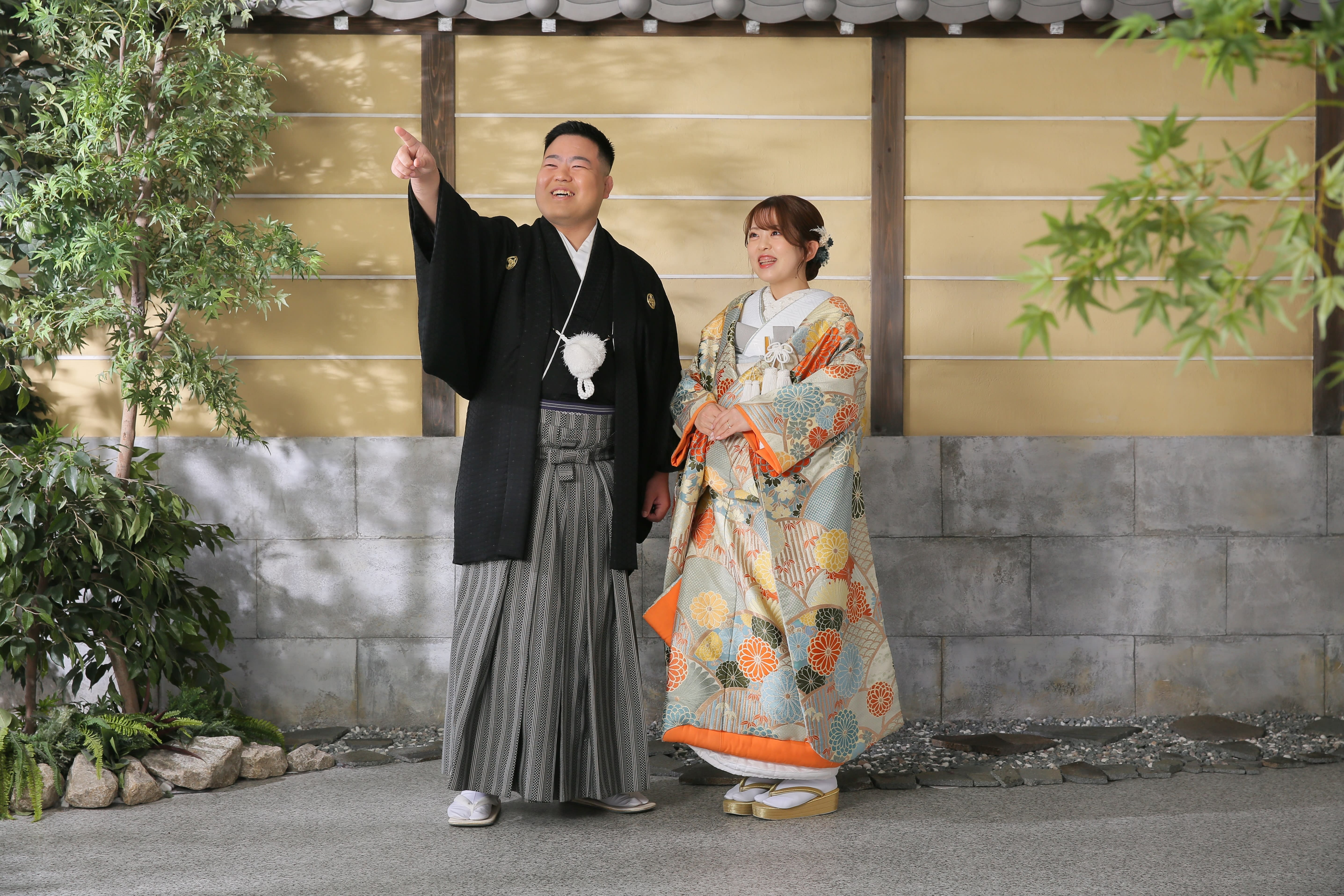 本格日本庭園を再現したスタジオで撮る 和装の結婚写真