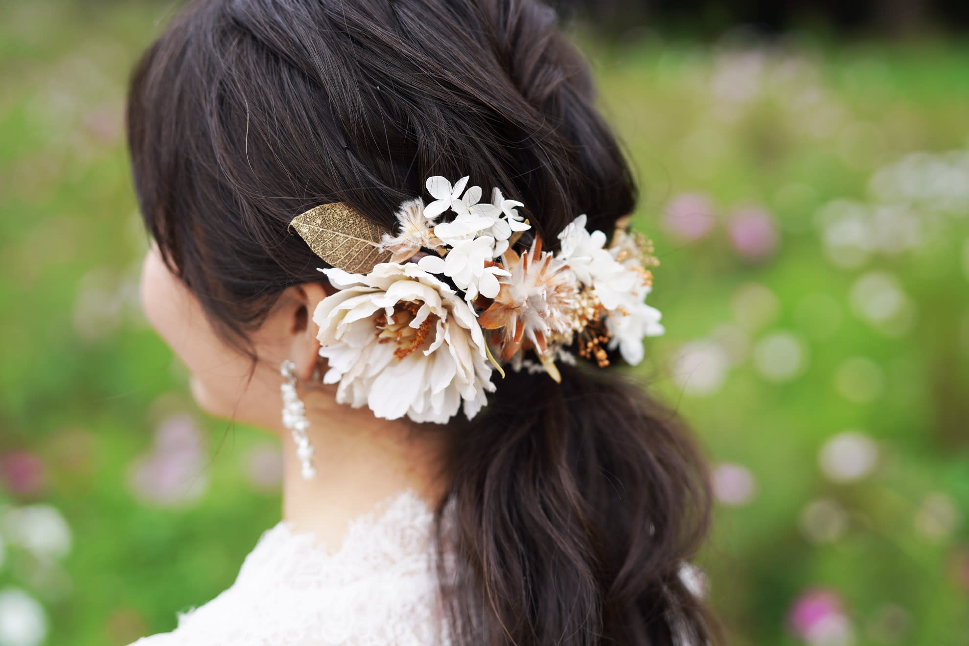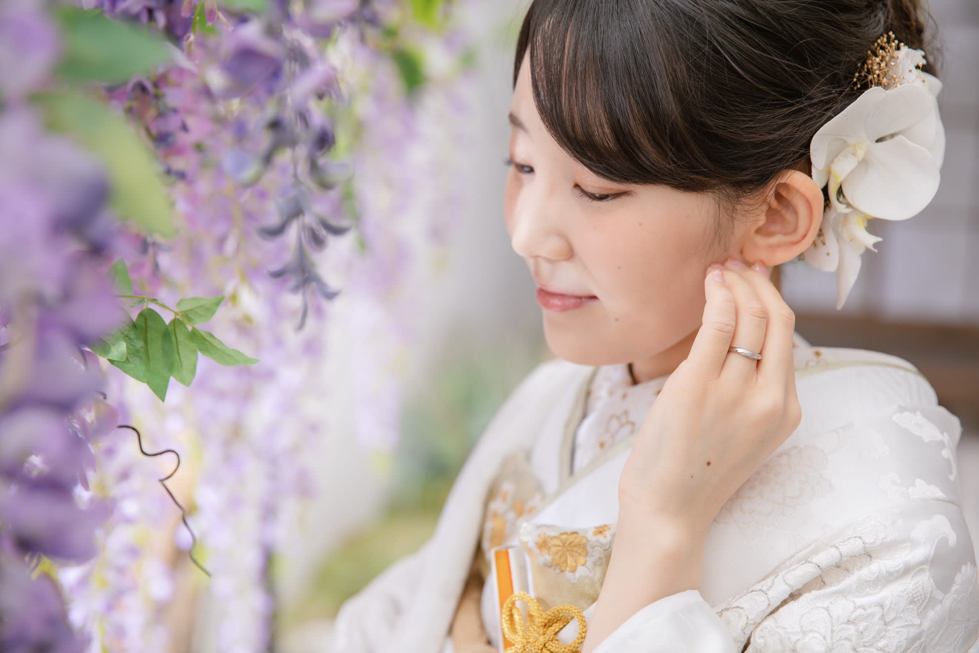 一面お花の壁が登場! 洋館風の立川店スタジオで撮影する洋装ウェディングフォトプラン