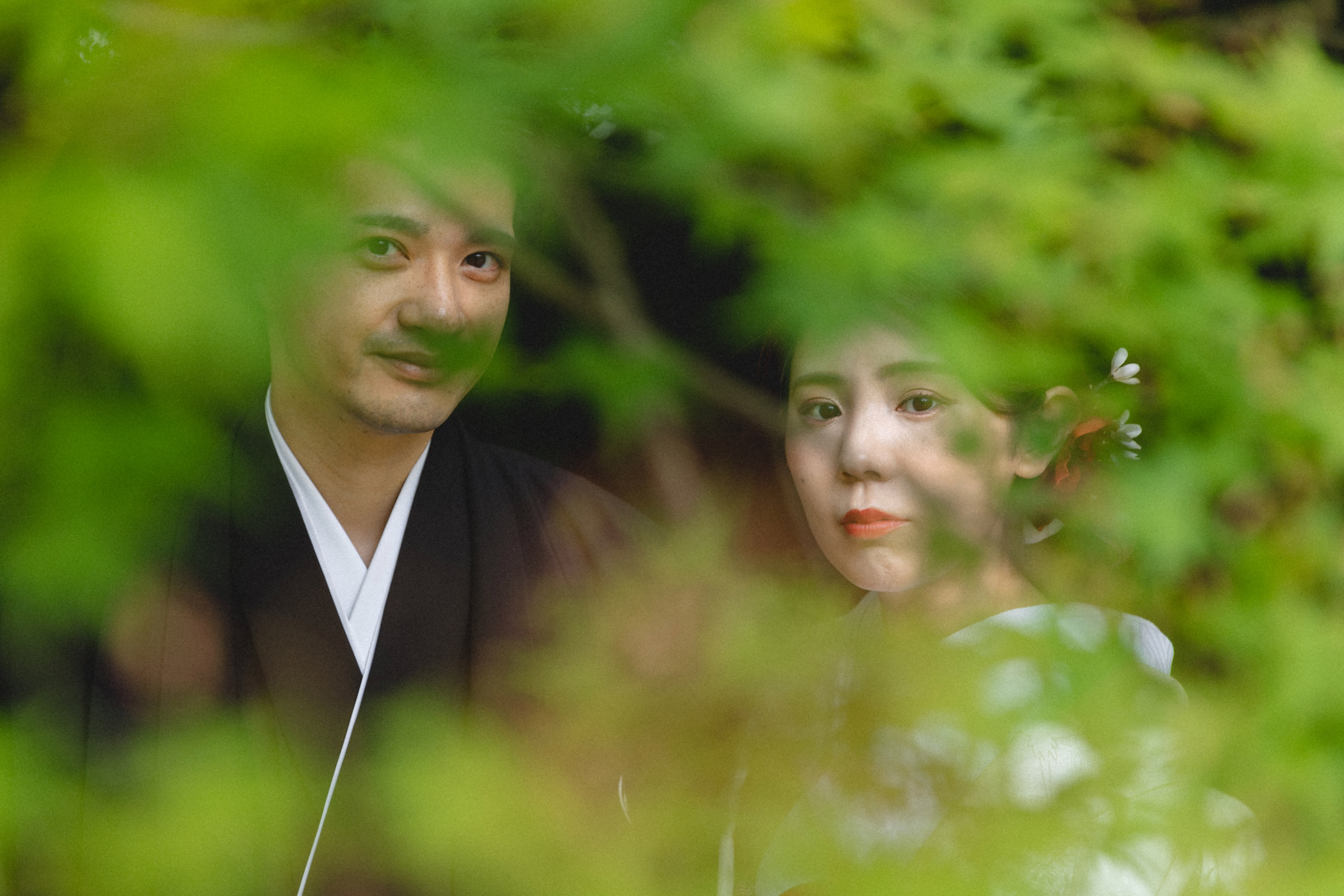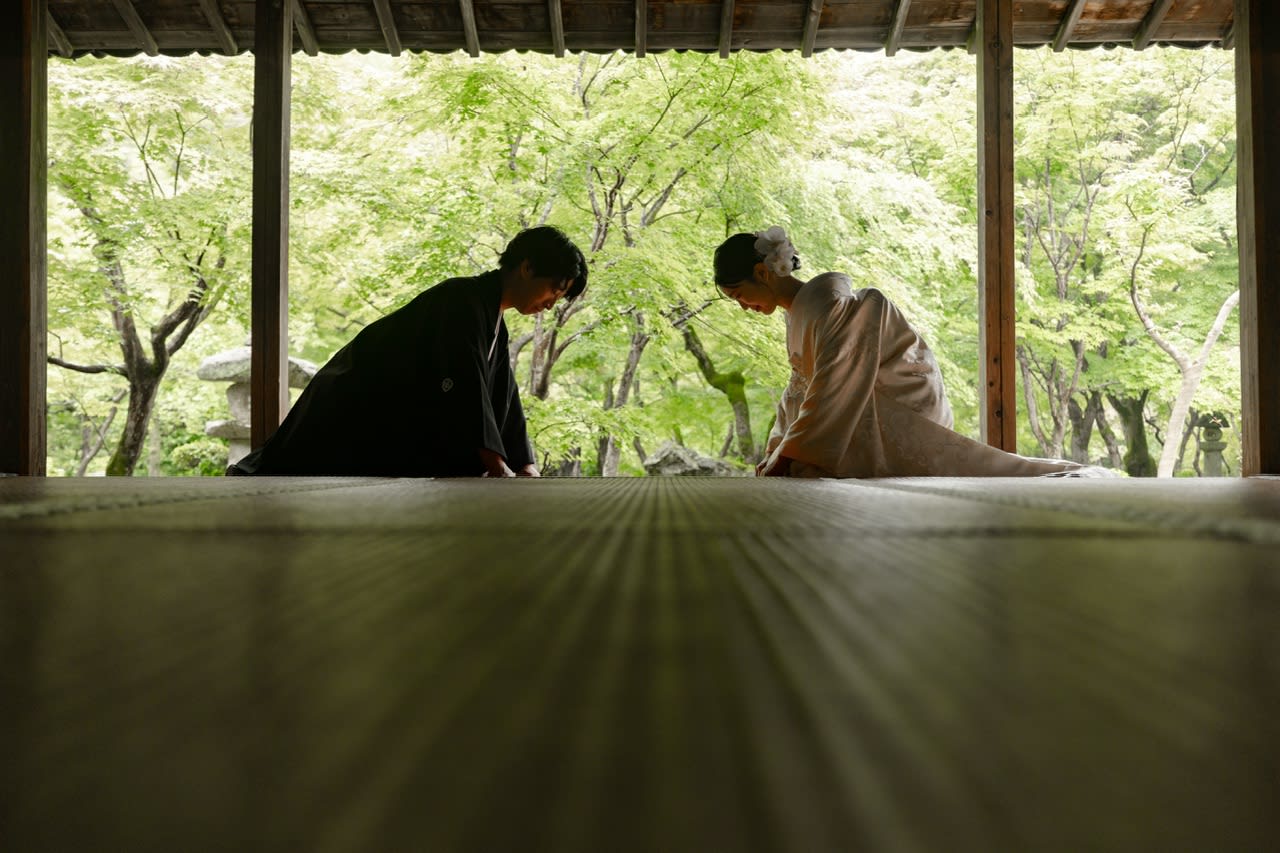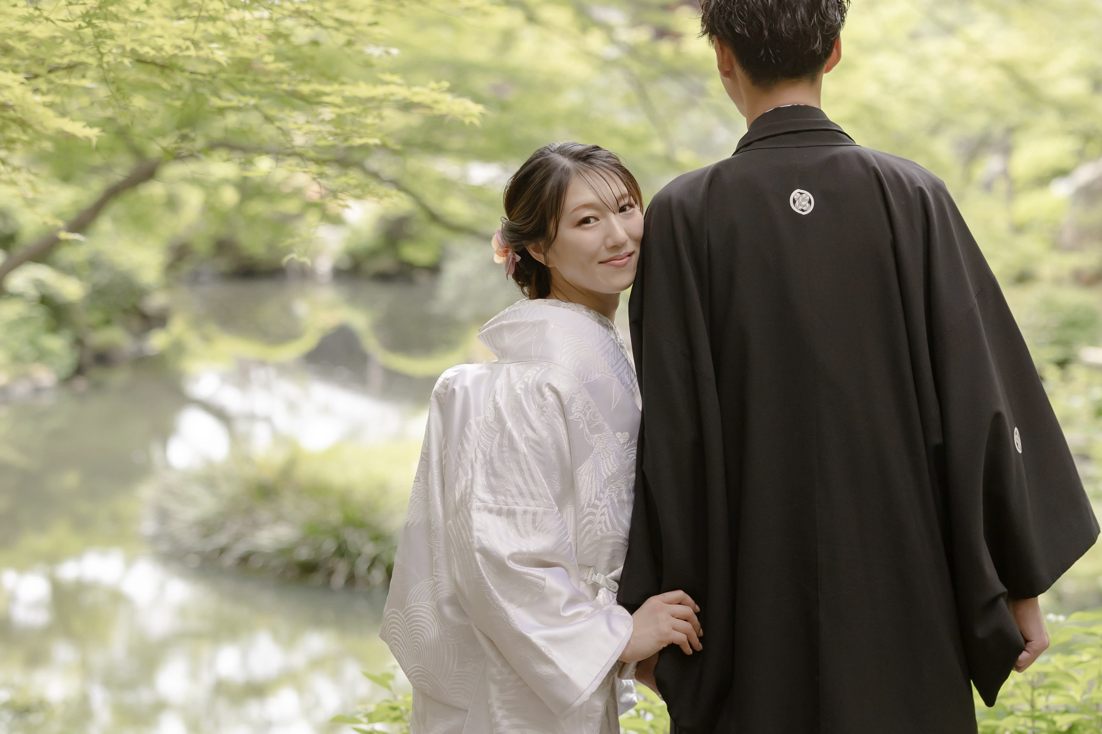 本格日本庭園を再現したスタジオで撮る 和装の結婚写真
