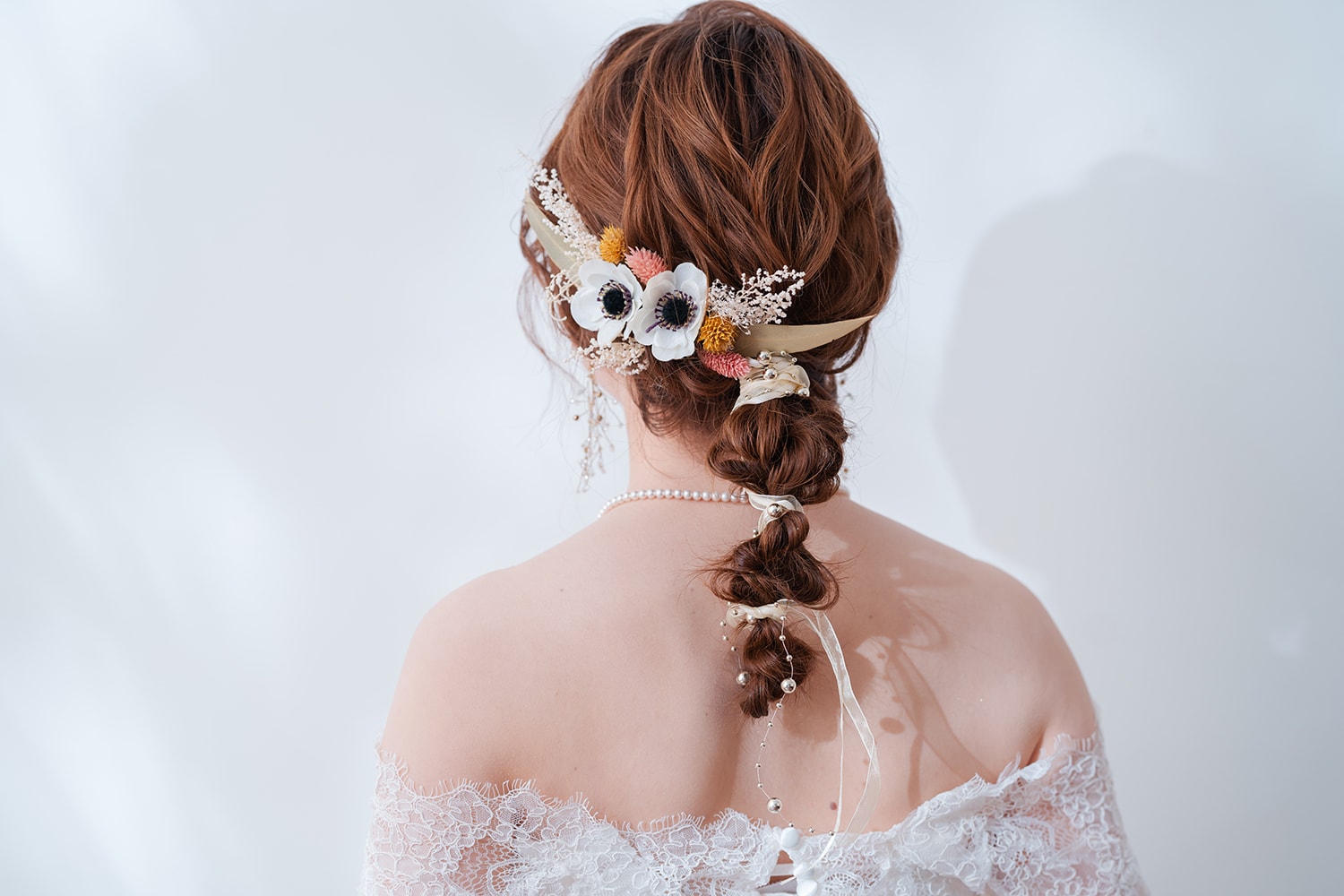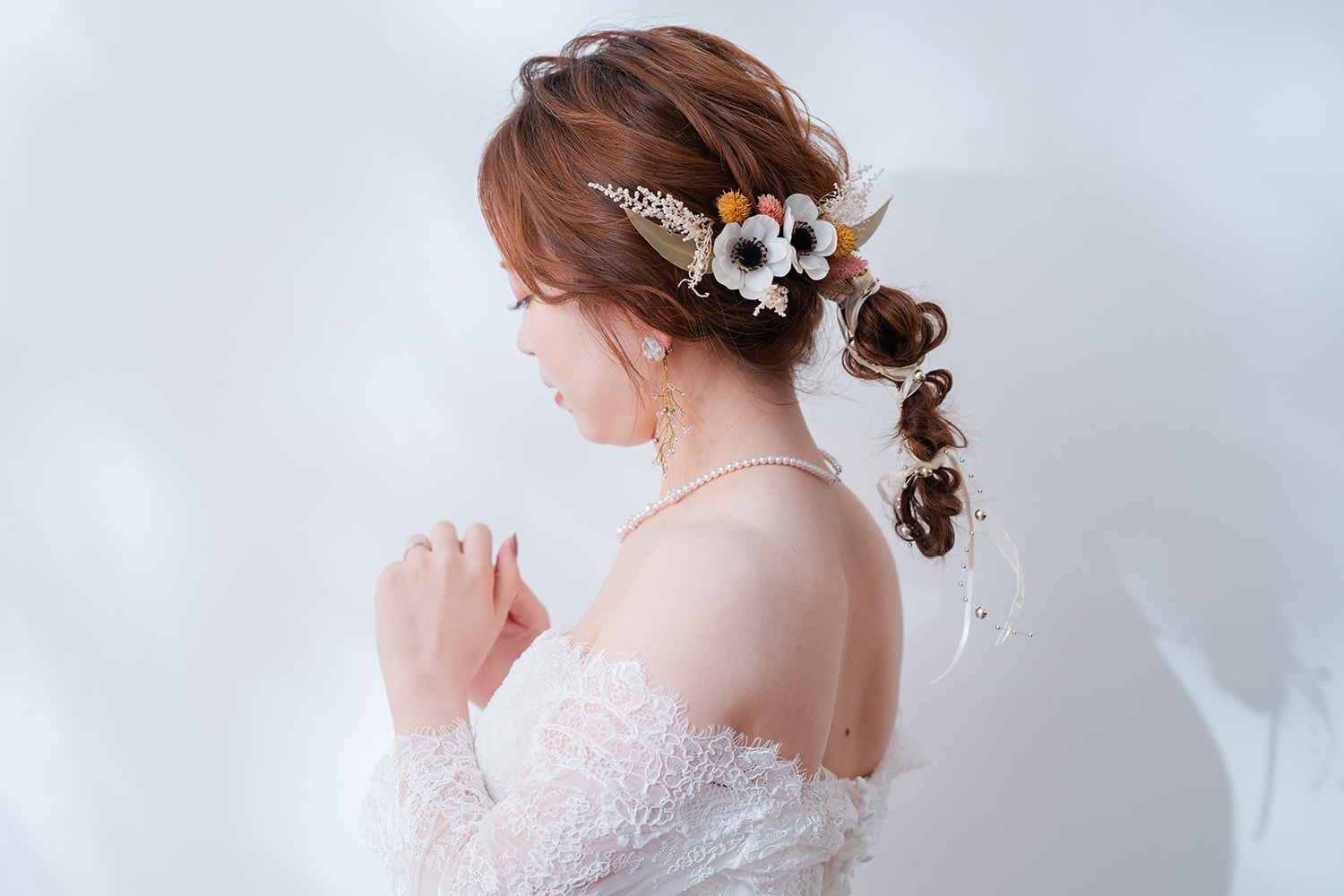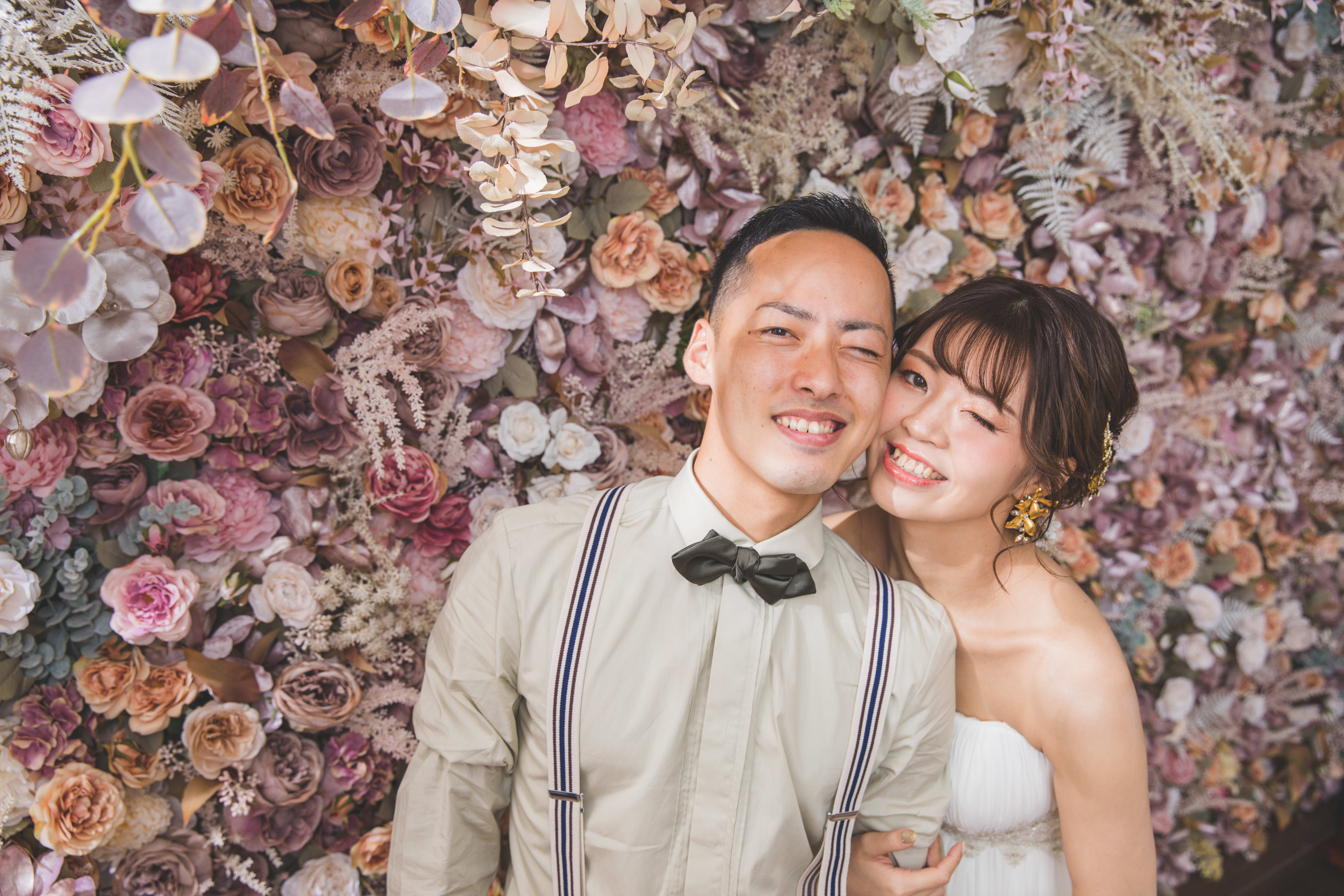 一面お花の壁が登場! 洋館風の立川店スタジオで撮影する洋装ウェディングフォトプラン