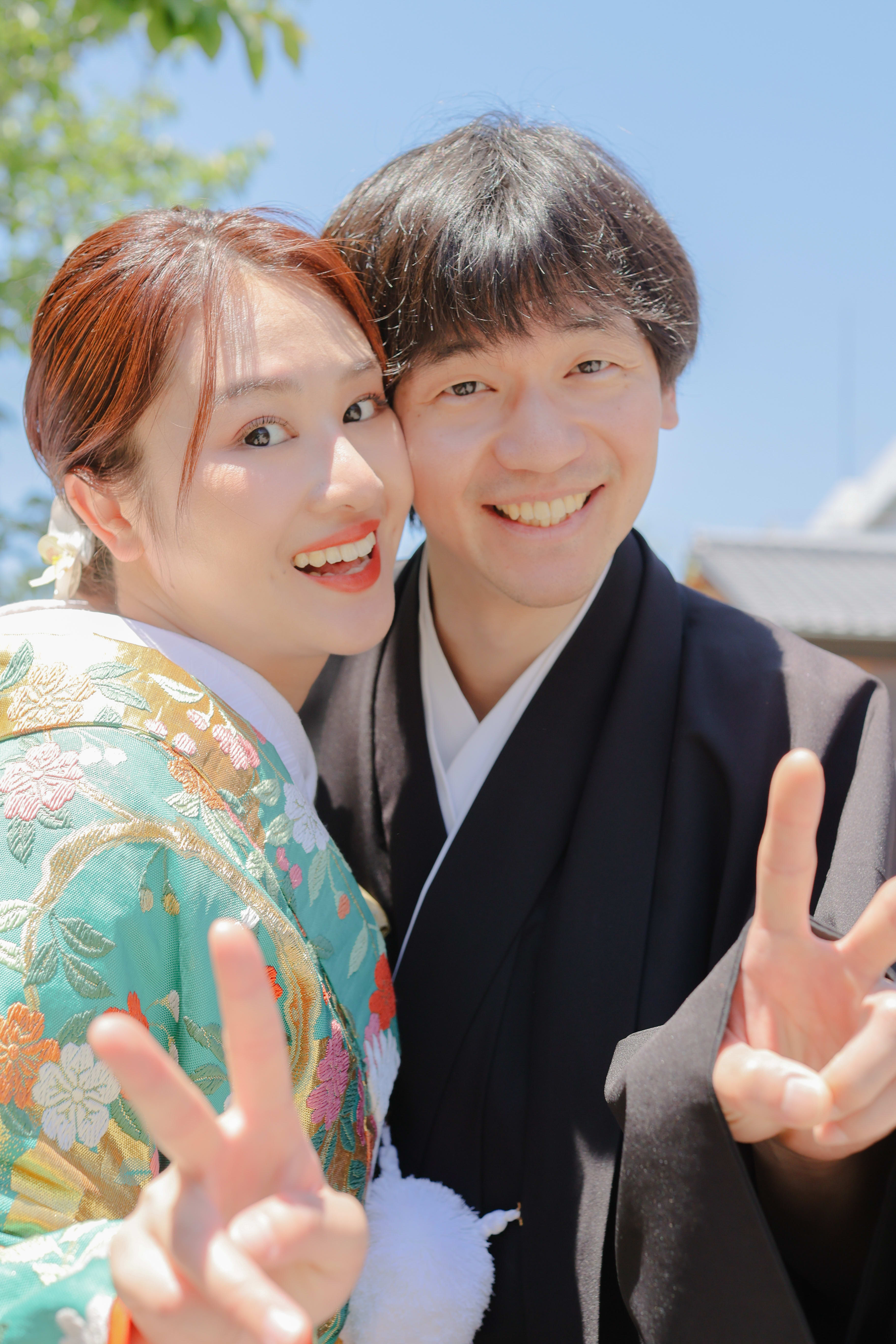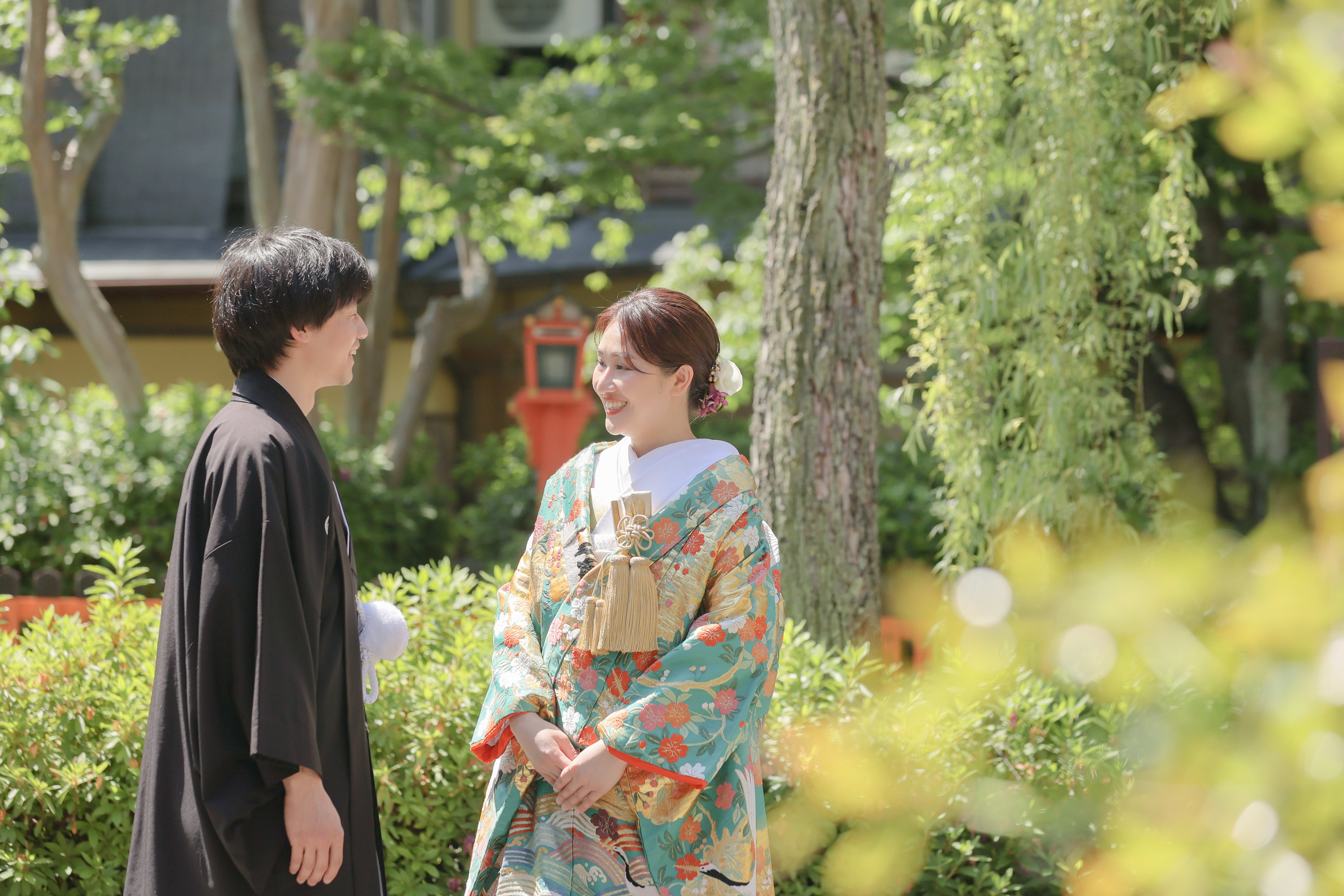 本格日本庭園を再現したスタジオで撮る 和装の結婚写真