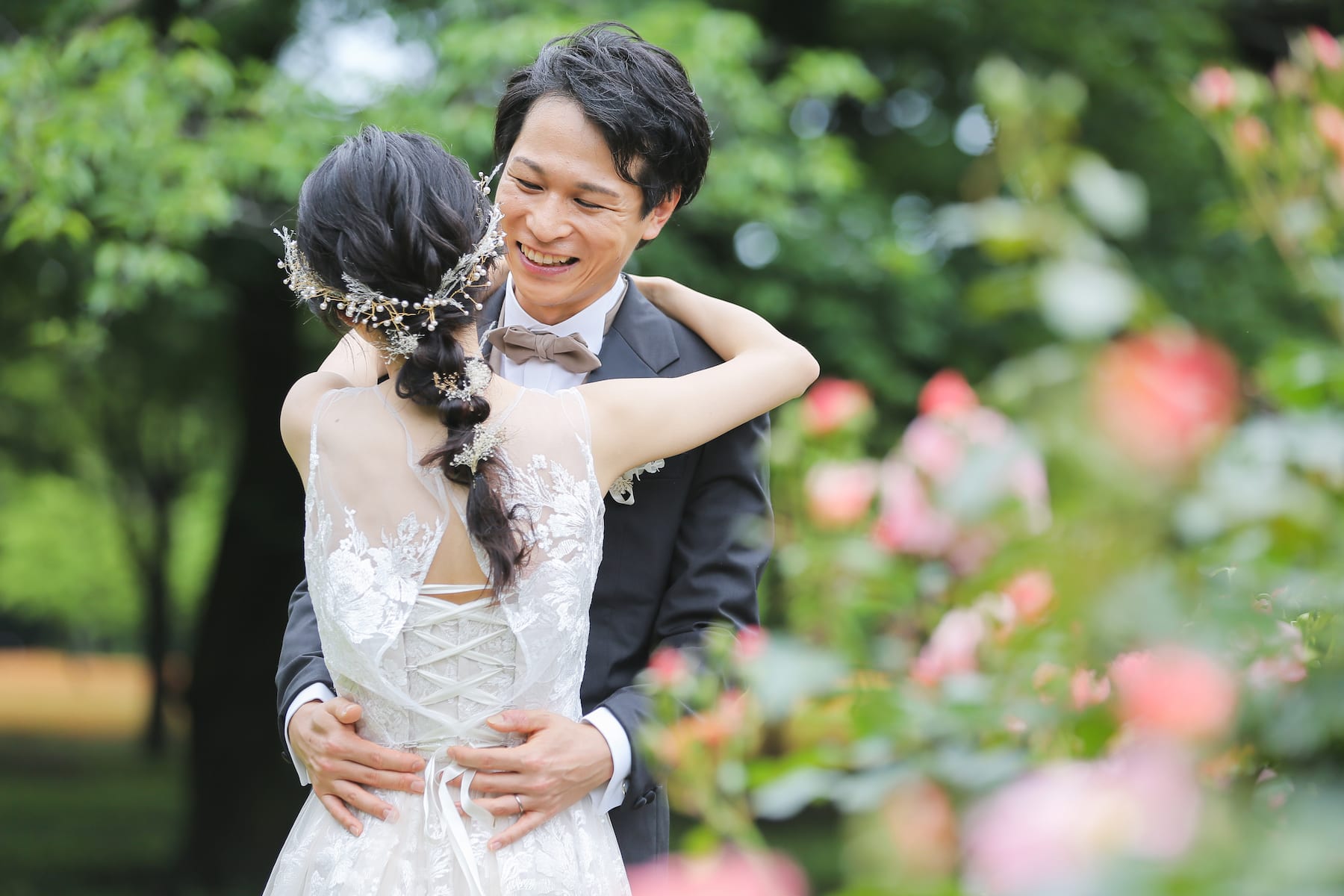 一面お花の壁が登場!新宿店ハウススタジオで撮影する洋装ウェディングフォトプラン