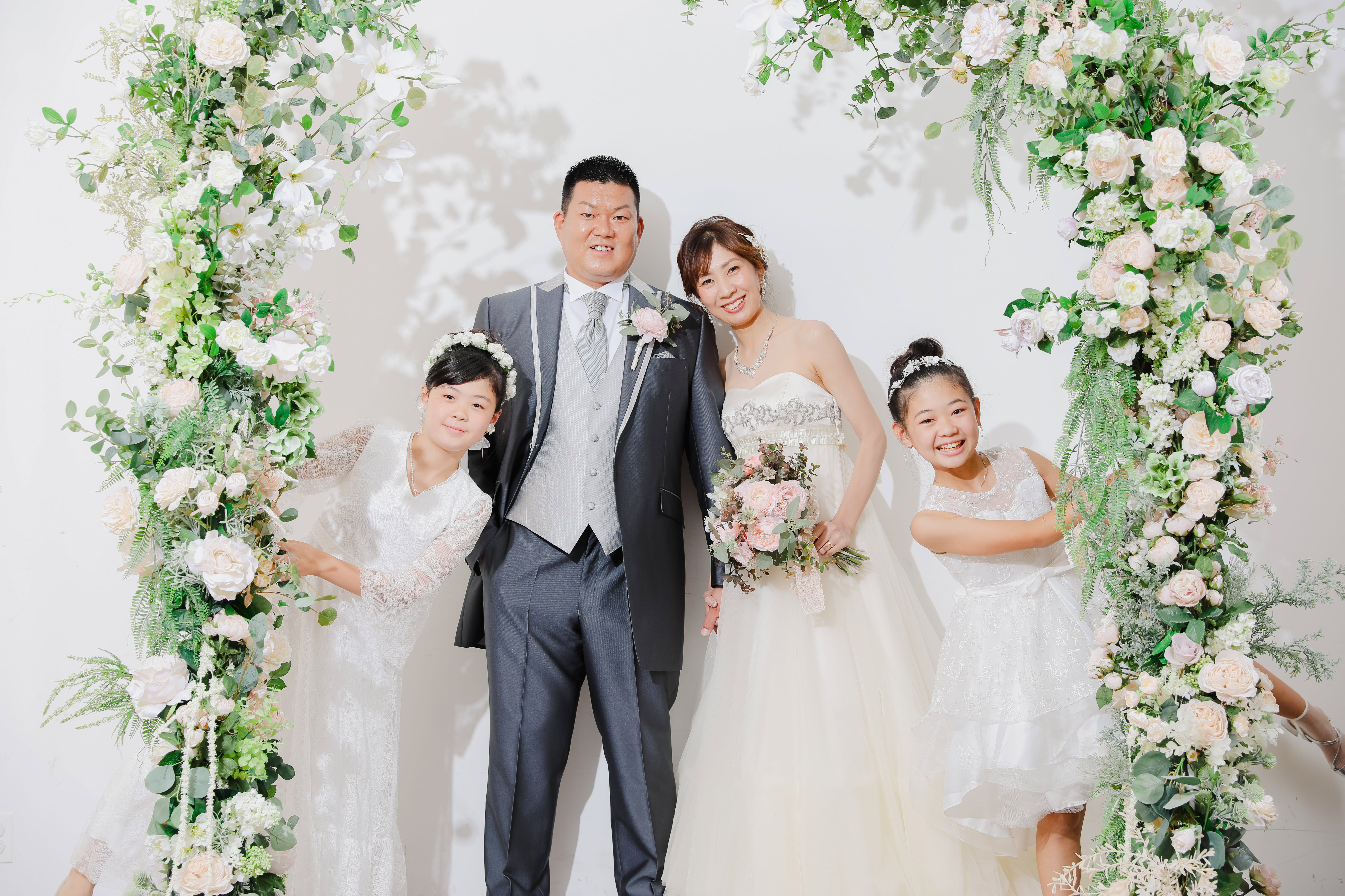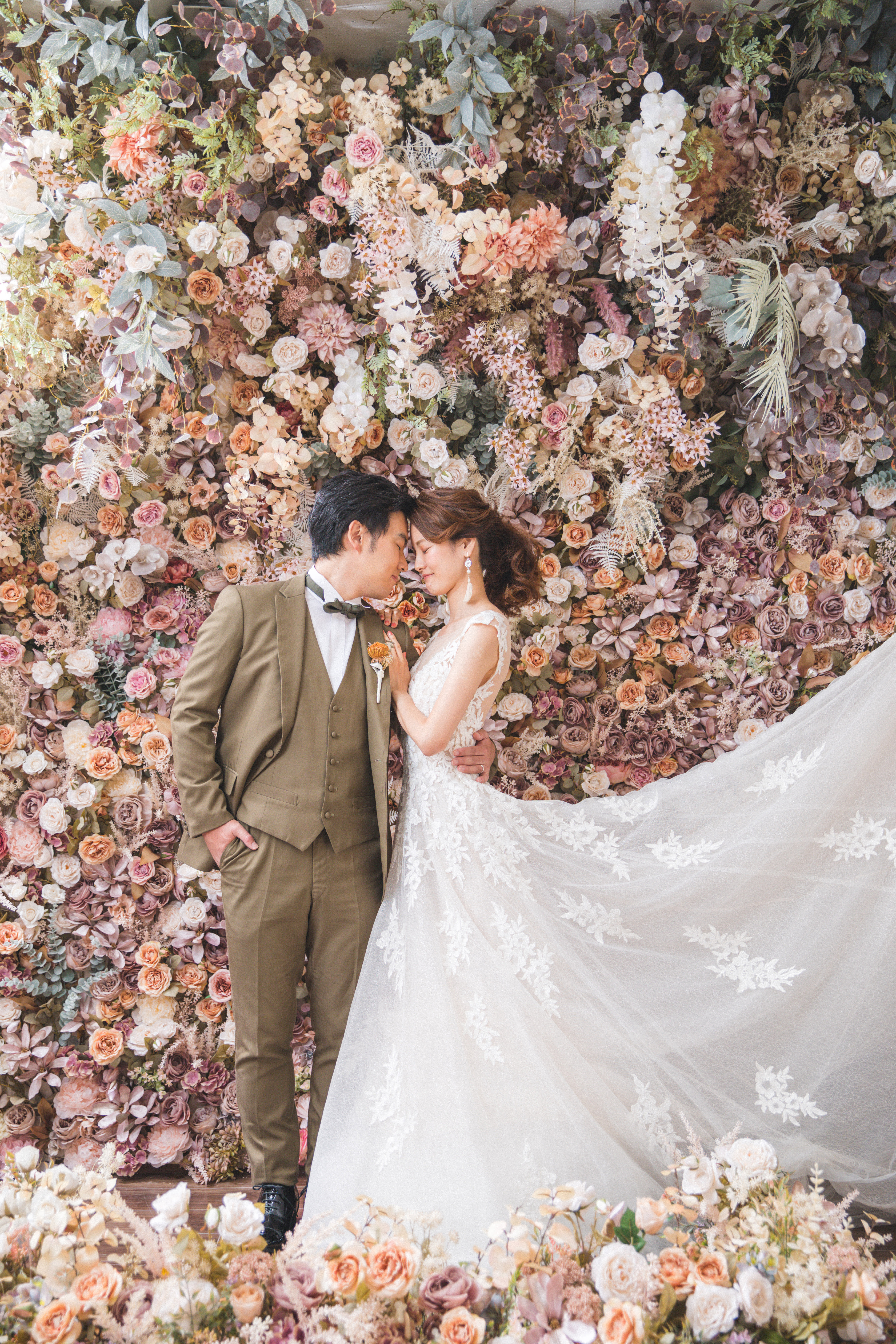 一面お花の壁が登場! 洋館風の立川店スタジオで撮影する洋装ウェディングフォトプラン